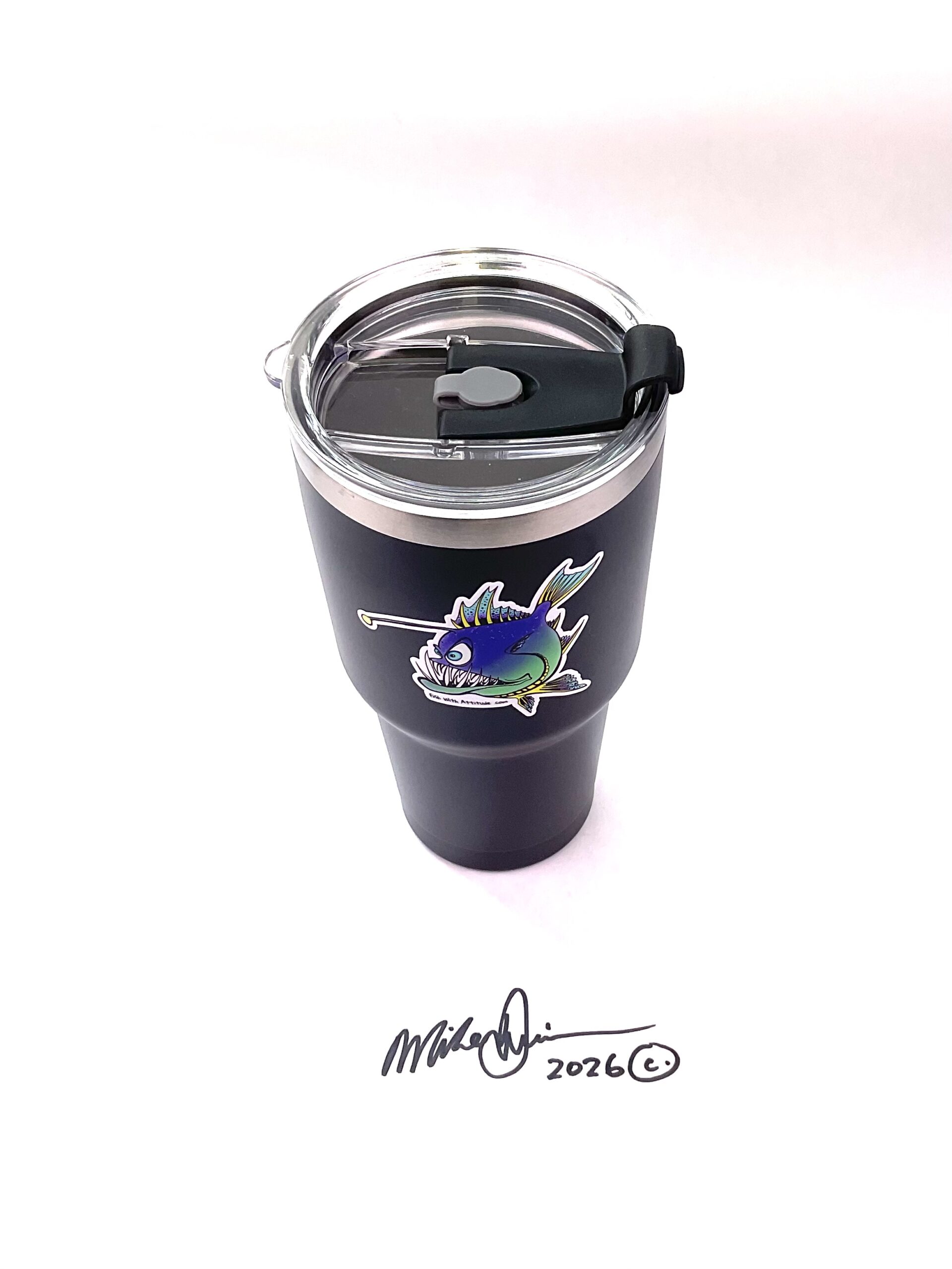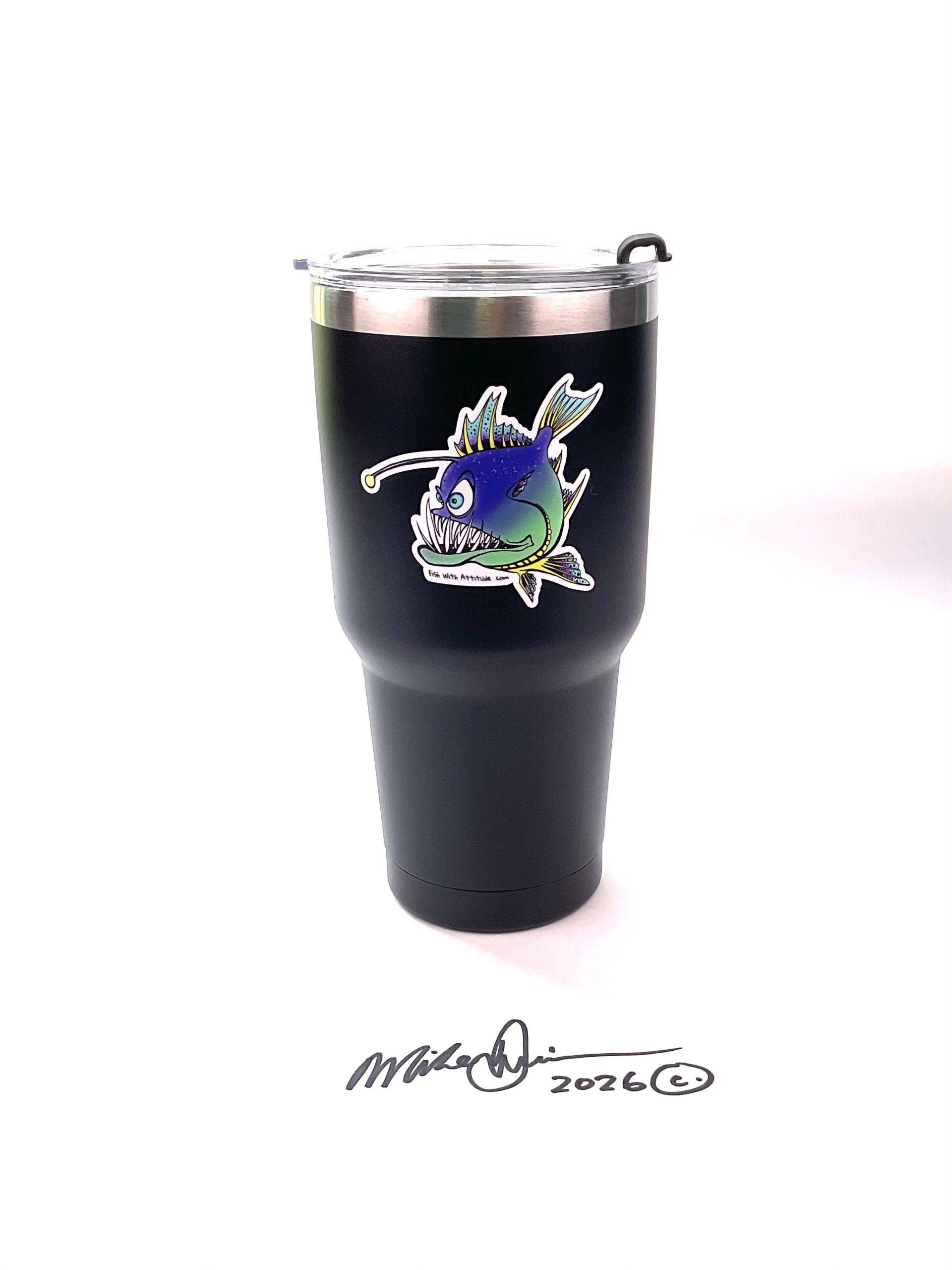 30oz Stainless Steel Travel Mug with Lid, 12 Pack Double Wall Vacuum Insulated Bulk Tumbler, Powder Coated Coffee Cup Suitable for Vehicle Cup Holders (Black) With Fish With Attitude Vinyl Sticker.