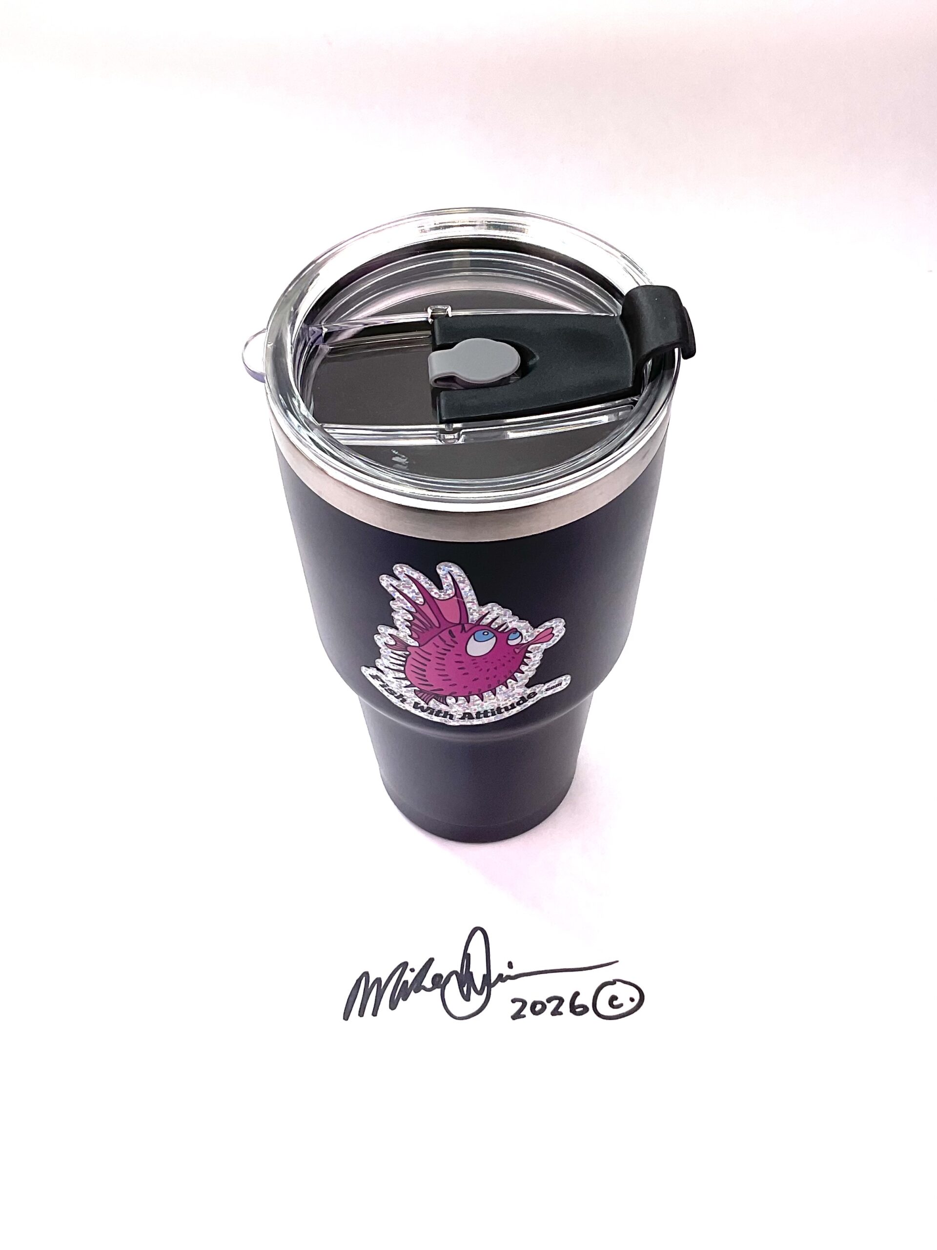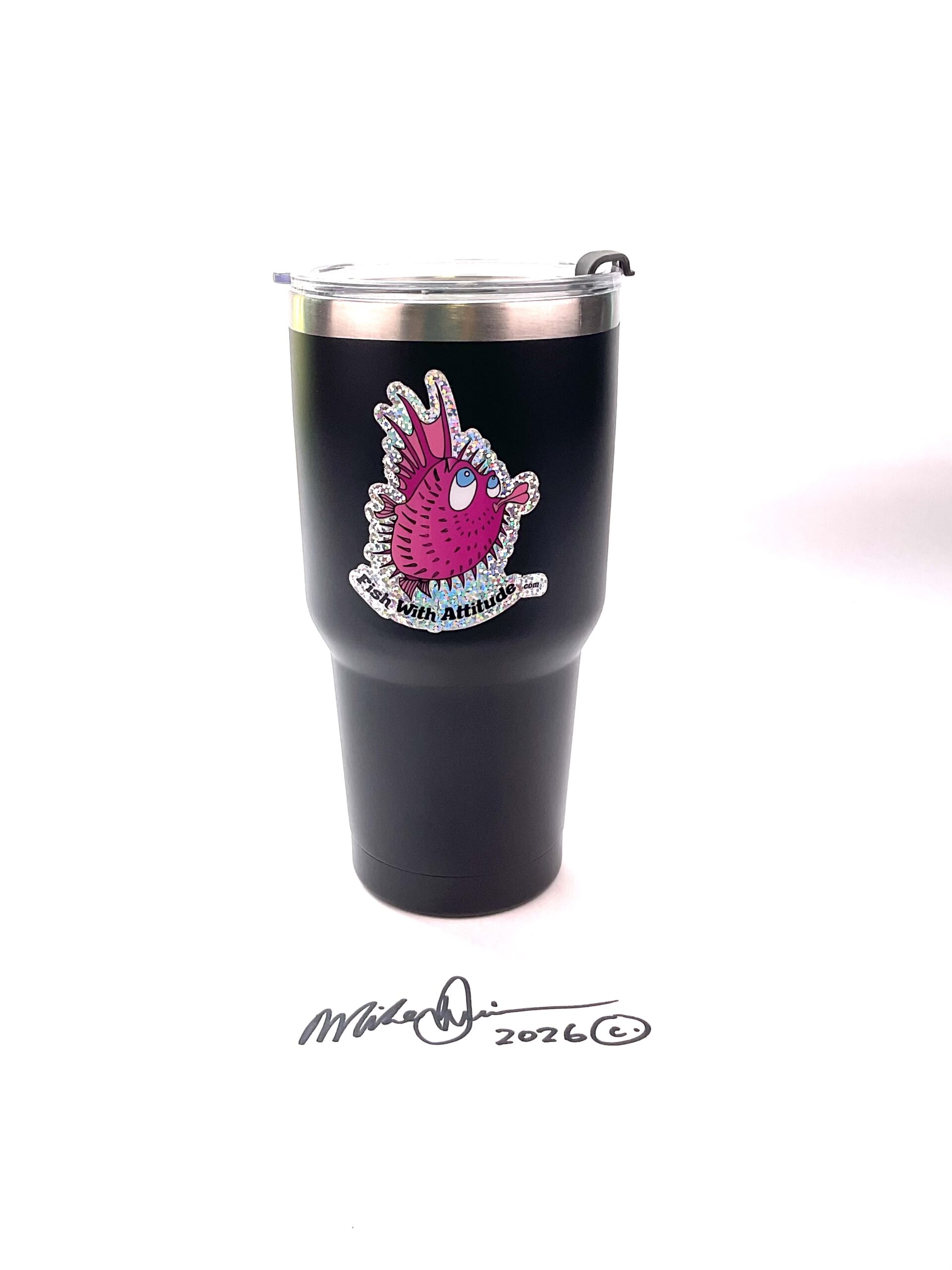 30oz Stainless Steel Travel Mug with Lid, 12 Pack Double Wall Vacuum Insulated Bulk Tumbler, Powder Coated Coffee Cup Suitable for Vehicle Cup Holders (Black) With Fish With Attitude Vinyl Sticker.