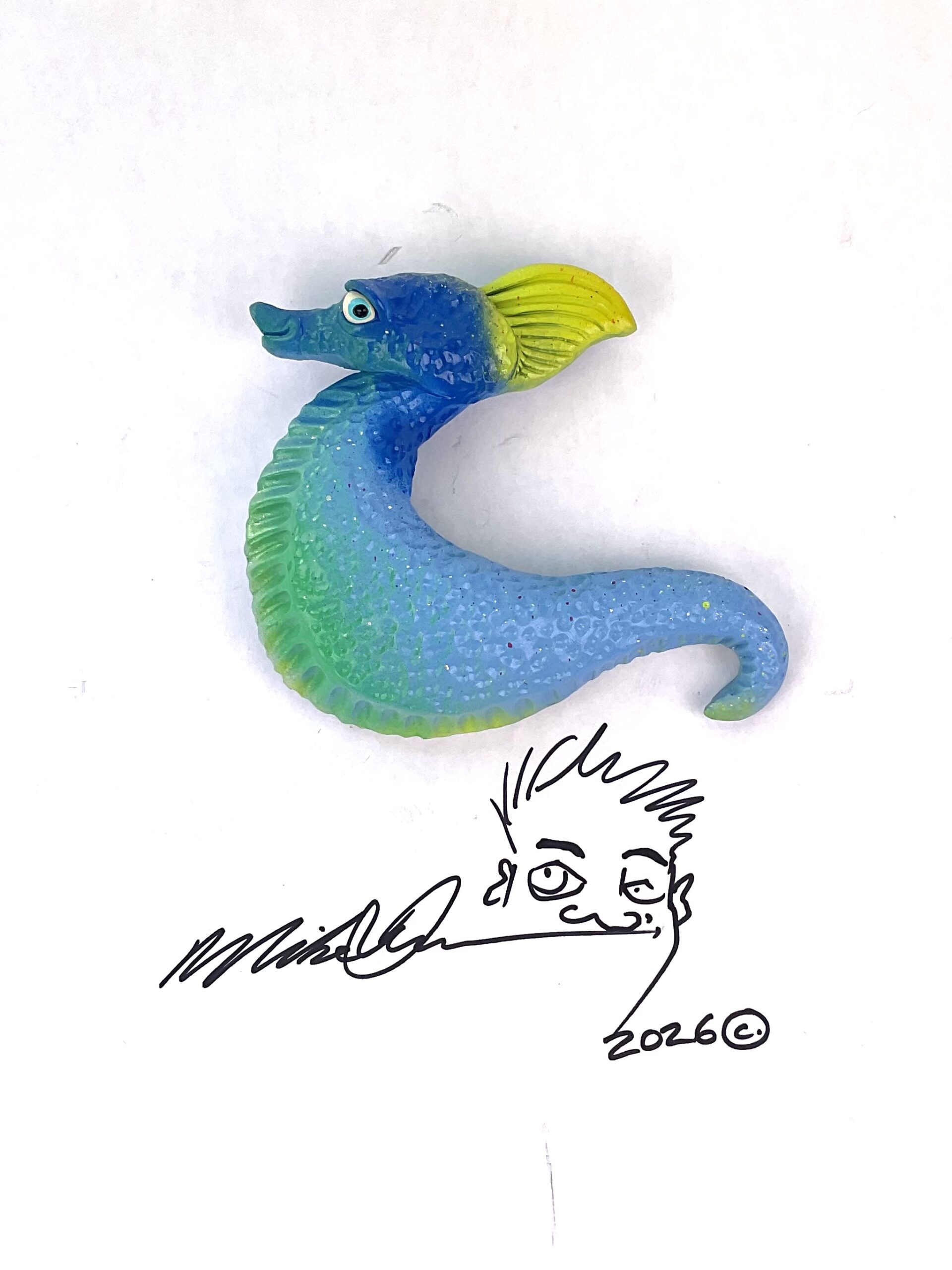 This piece is designed and created by artist Mike Quinn, it’s part of his Fish with Attitude collection. It’s one of a kind nature means it will have unique markings, design, spots, teeth, fur, claws or whatever is applicable to the creature posted.