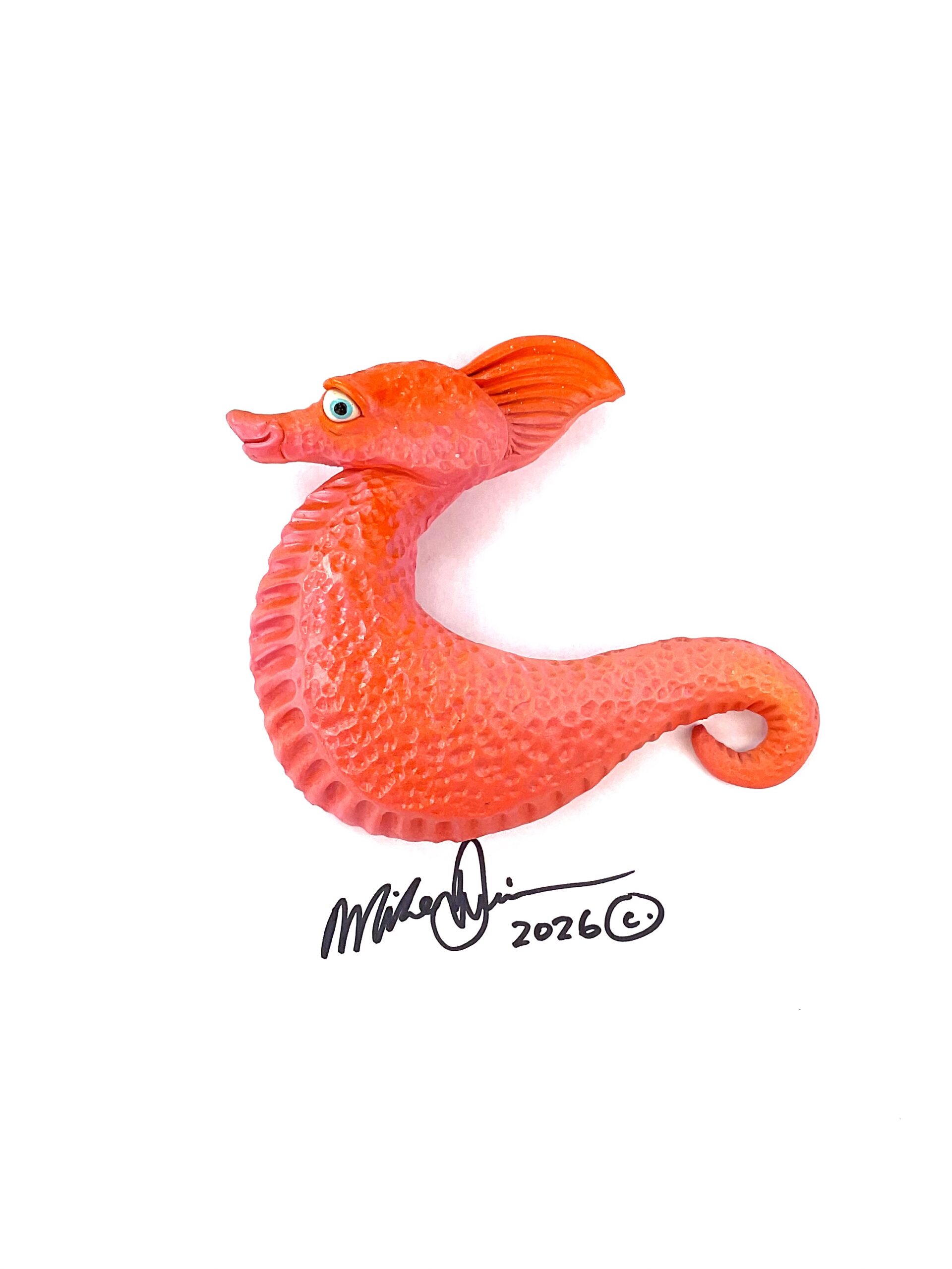 Amber Doodles is a bit of a worrier, you just can never be too careful on the reef after all. She’s known best for her fantastic Mohawk like fin. Amber Doodles measures 6.5″ x 5″ and hangs on the wall with a built-in hook. She’s sporting a hand-painted custom finish that is designed for indoor use or outside in a protected/covered area.