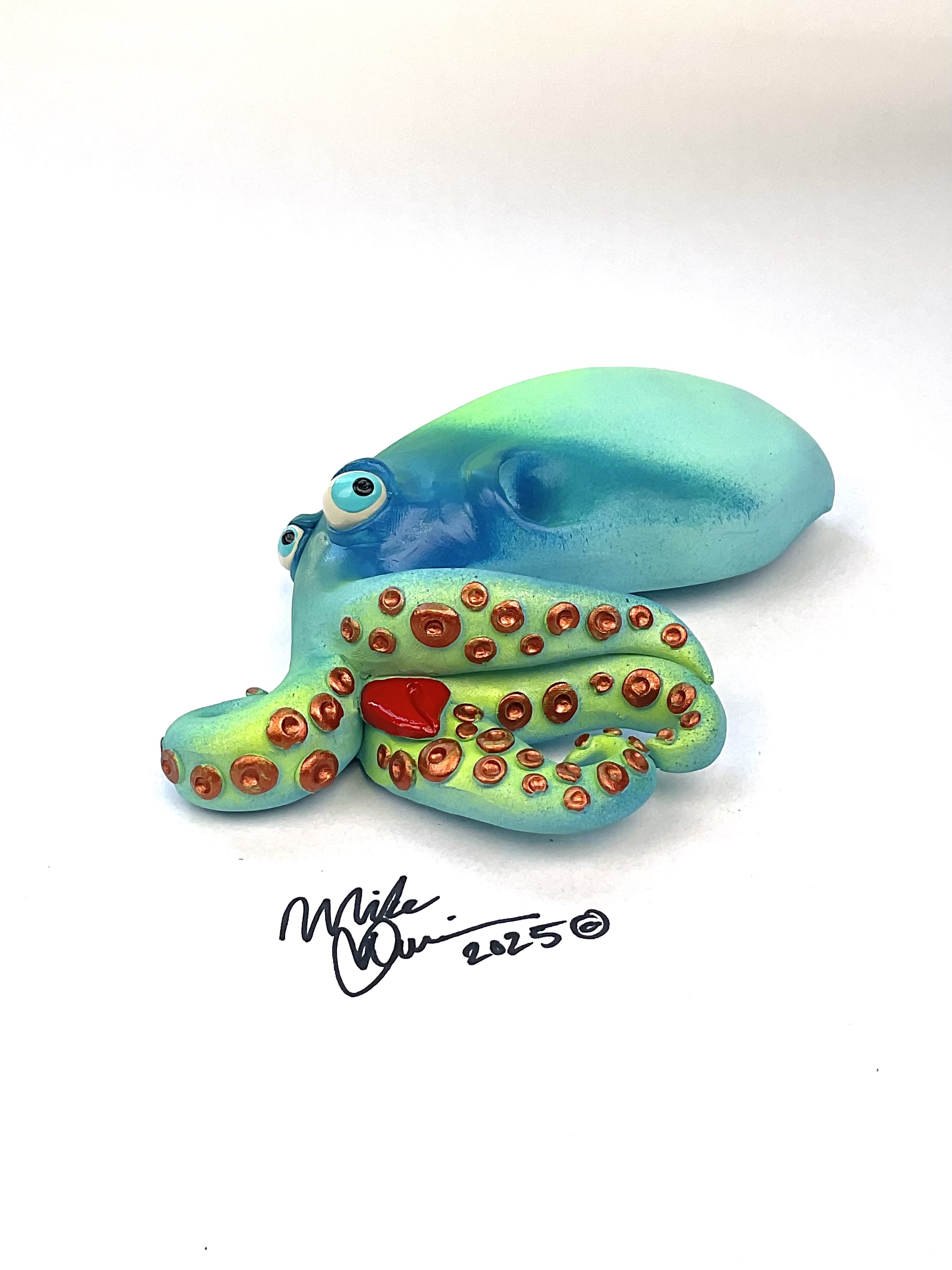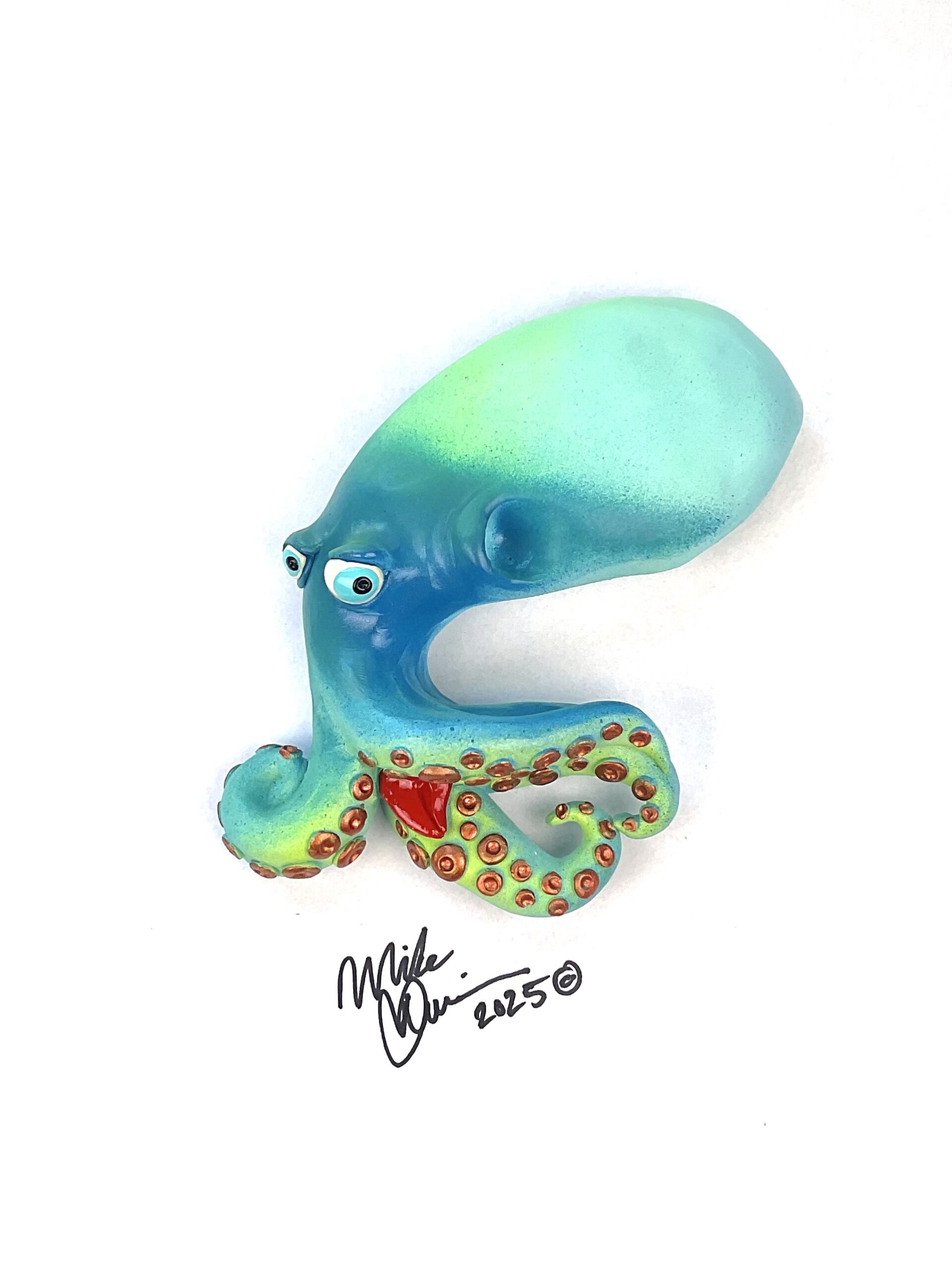 This obnoxious octopus is named “Bernie”, he features an oversized head, shifty eyes, and tenacious tentacles. He measures 6″ x 7″ and hangs on the wall with a built-in hook. He’s sporting a hand-painted custom finish that is designed for indoor use or outside in a protected/covered area.