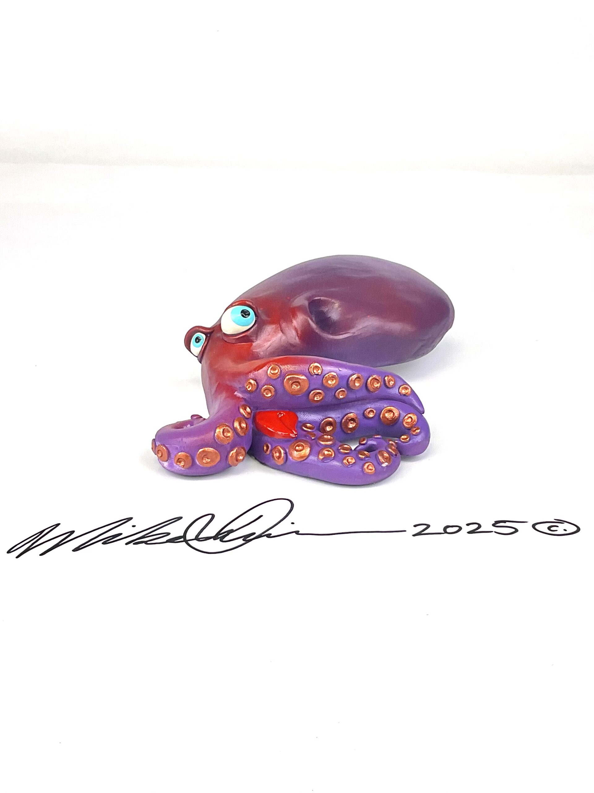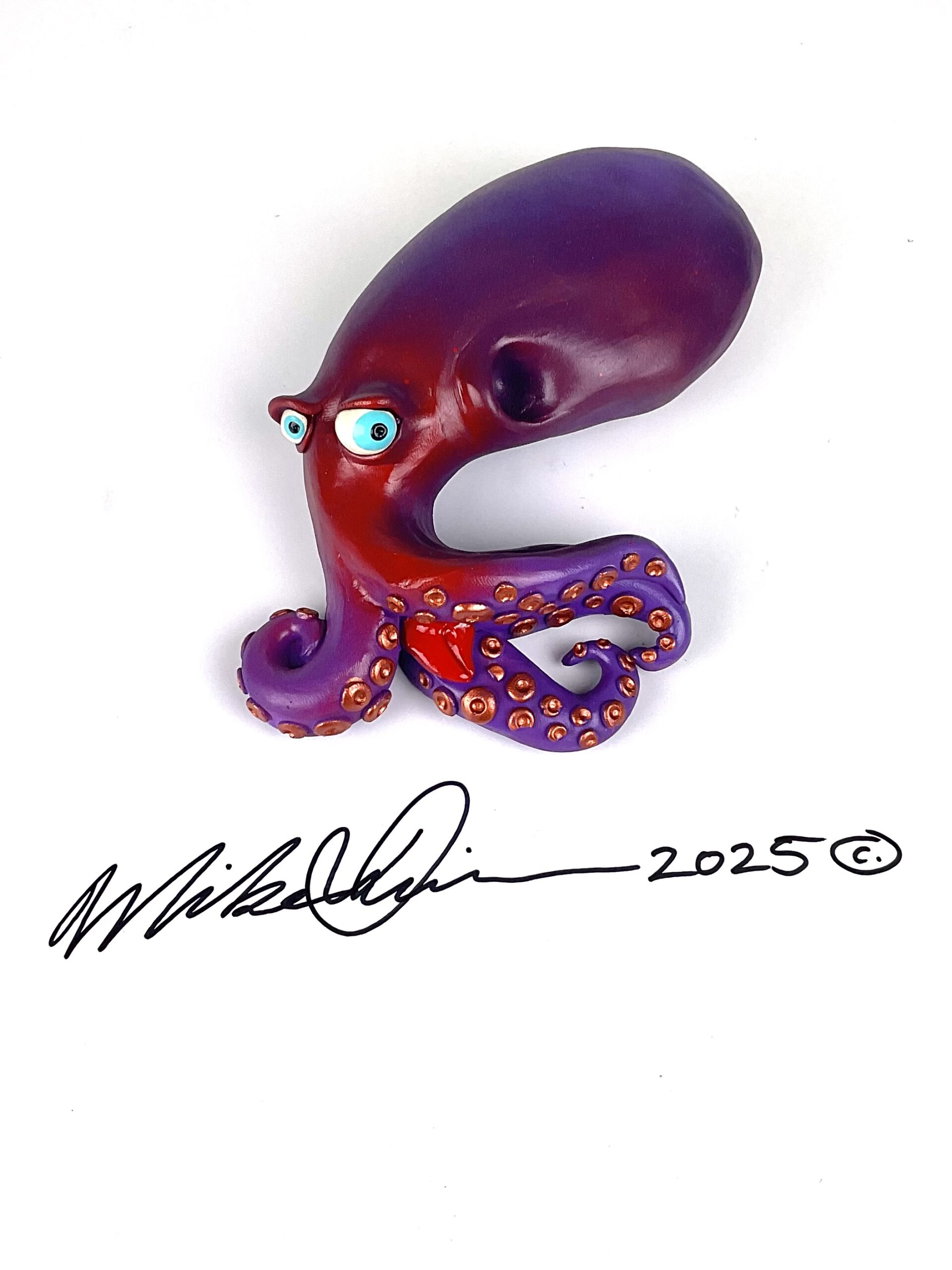 This obnoxious octopus is named “Bernie”, he features an oversized head, shifty eyes, and tenacious tentacles. He measures 6″ x 7″ and hangs on the wall with a built-in hook. He’s sporting a hand-painted custom finish that is designed for indoor use or outside in a protected/covered area.