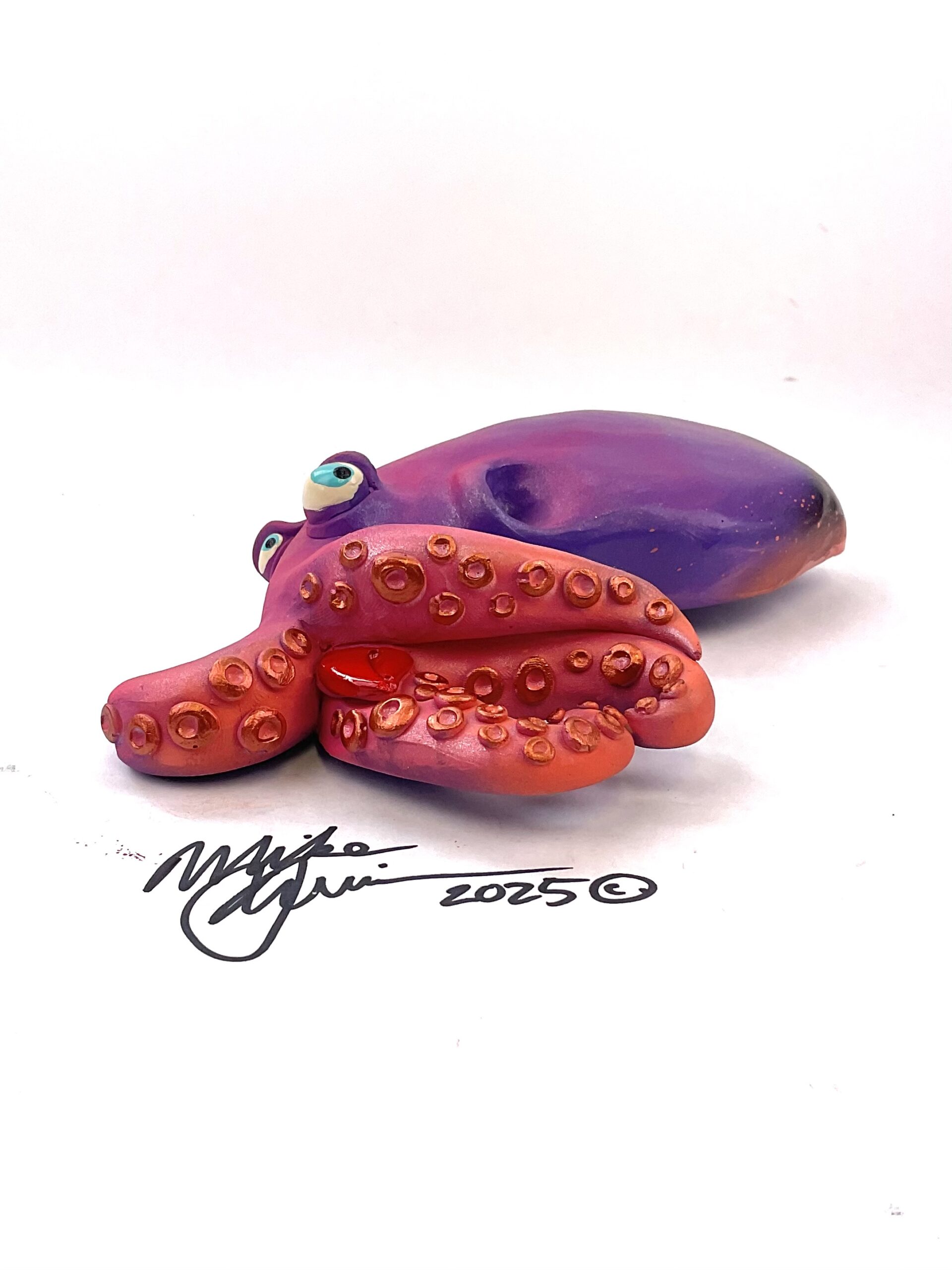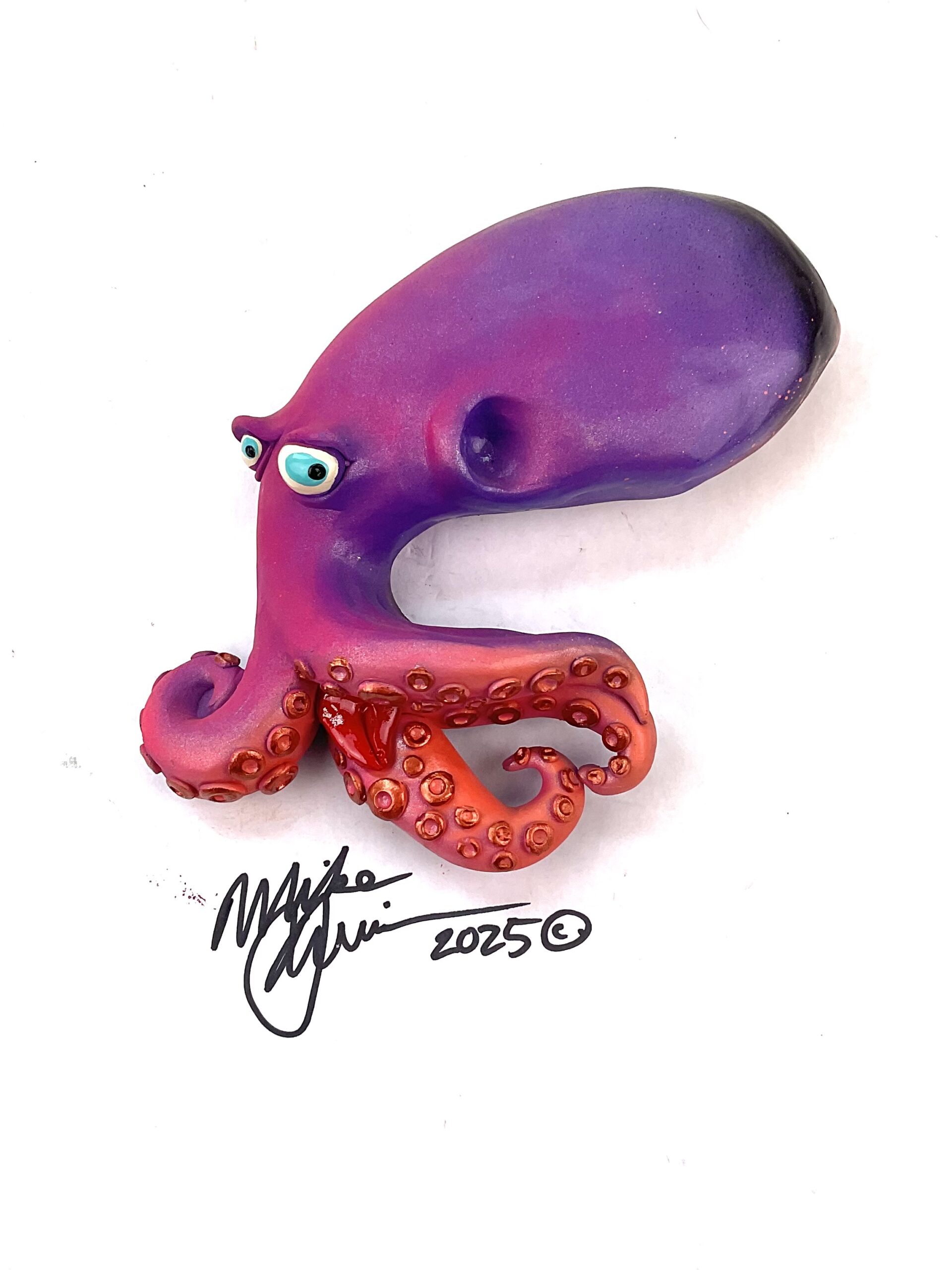 This obnoxious octopus is named “Bernie”, he features an oversized head, shifty eyes, and tenacious tentacles. He measures 6″ x 7″ and hangs on the wall with a built-in hook. He’s sporting a hand-painted custom finish that is designed for indoor use or outside in a protected/covered area.