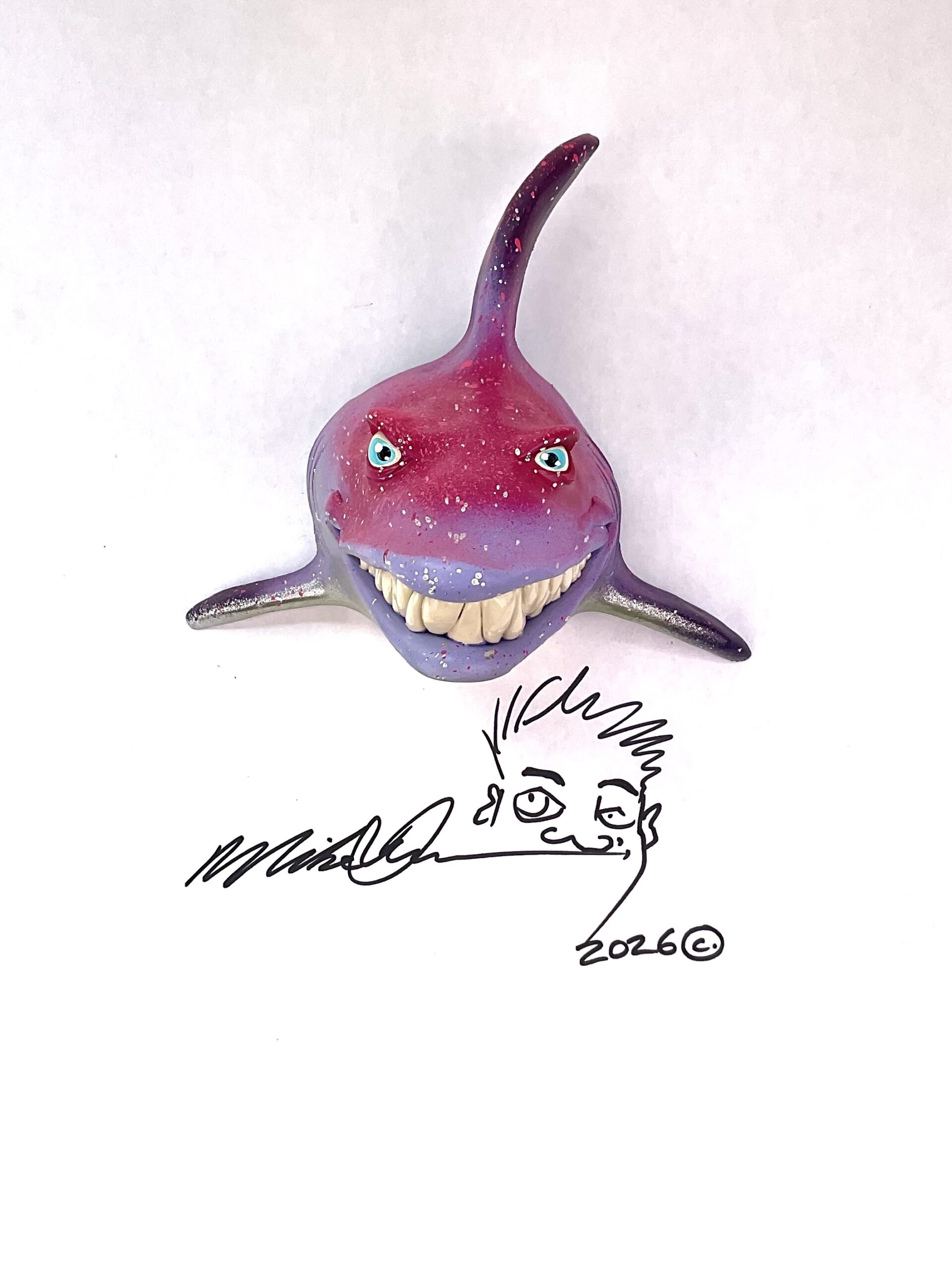 This piece is designed and created by artist Mike Quinn, it’s part of his Fish with Attitude collection. It’s one of a kind nature means it will have unique markings, design, spots, teeth, fur, claws or whatever is applicable to the creature posted.