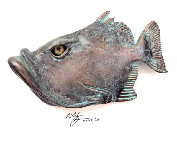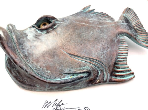 This piece is designed and created by artist Mike Quinn, it’s part of his Fish with Attitude collection. It’s one of a kind nature means it will have unique markings, design, spots, teeth, fur, claws or whatever is applicable to the creature posted.