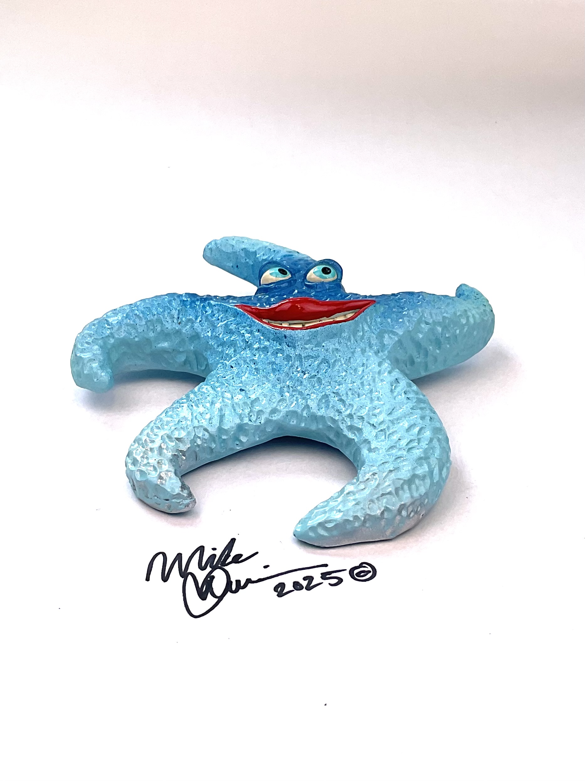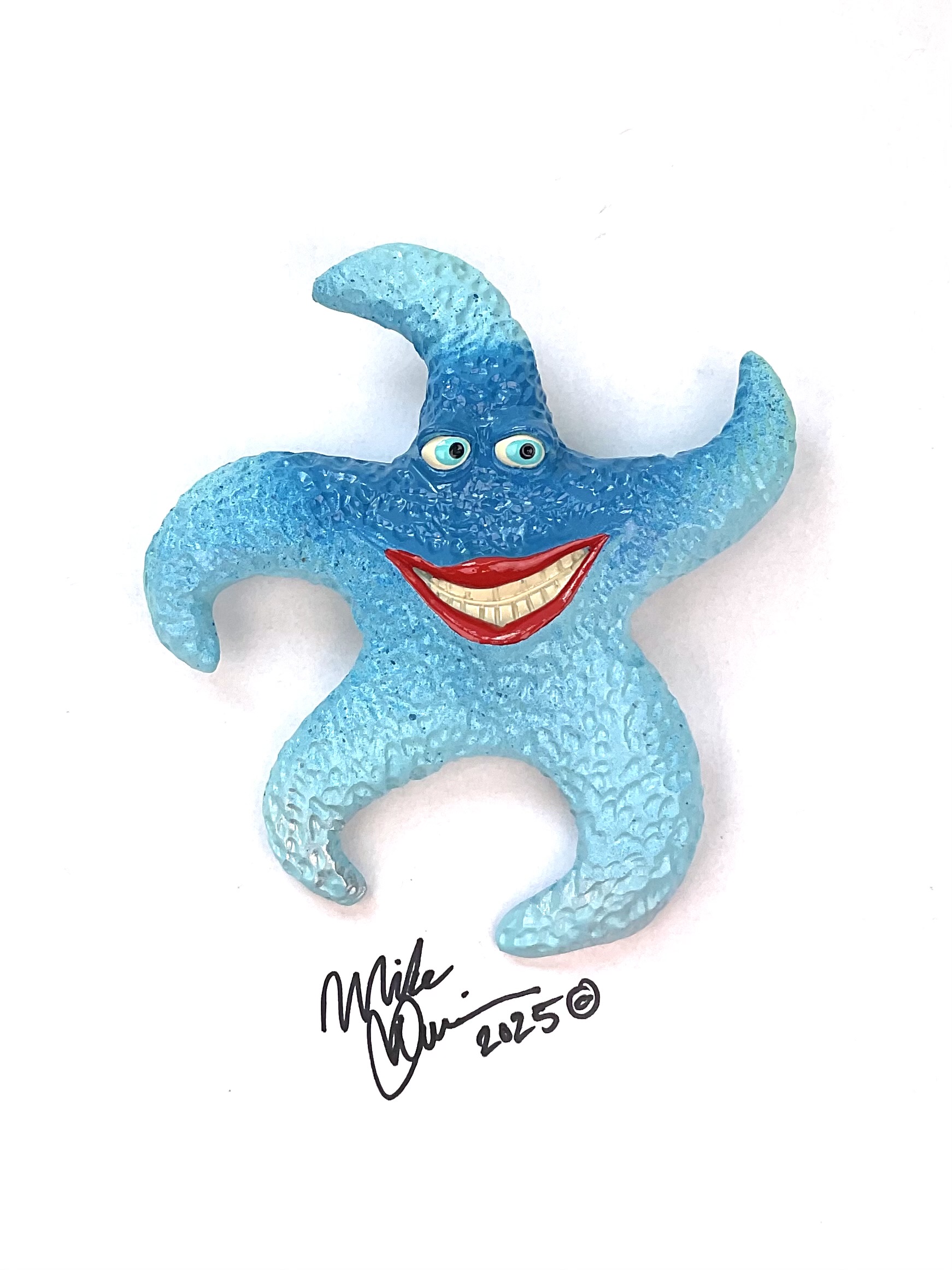 This snazzy starfish is named “Libery”, She likes to liberate oysters from their shells…against their will. She measures 6.5″ x 7″ and hangs on the wall with a built in eyelet. She’s sporting a hand painted custom finish that is designed for indoor use or outside in a protected/covered area.
