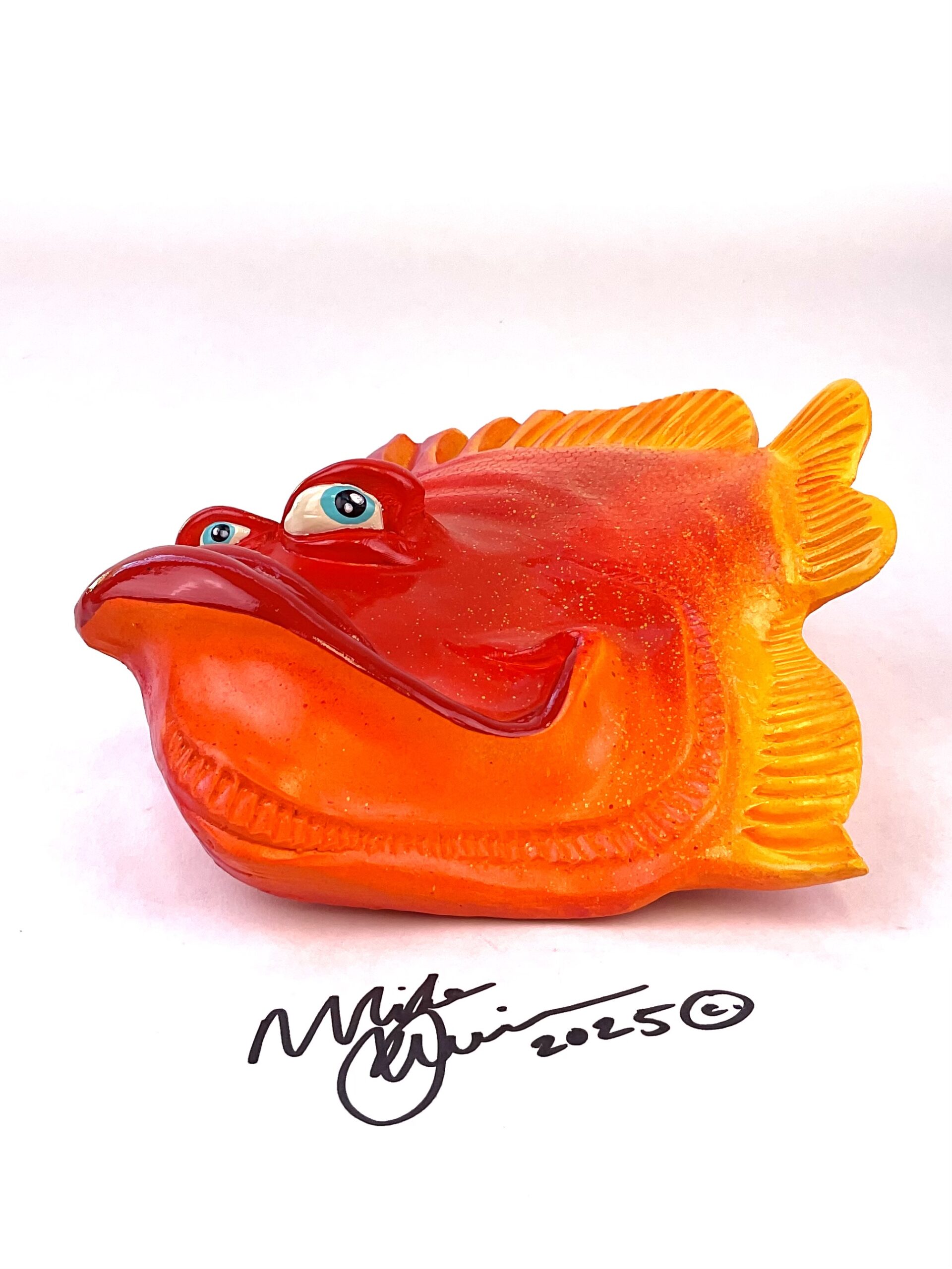 This piece is designed and created by artist Mike Quinn, it’s part of his Fish with Attitude collection. It’s one of a kind nature means it will have unique markings, design, spots, teeth, fur, claws or whatever is applicable to the creature posted.