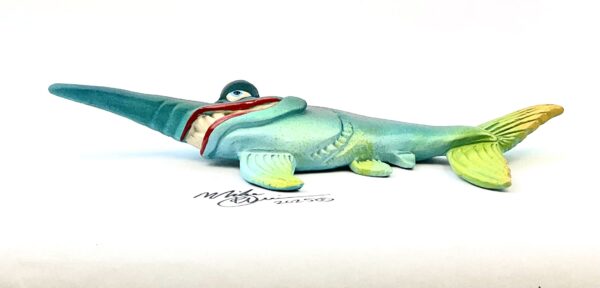 This piece is designed and created by artist Mike Quinn, it’s part of his Fish with Attitude collection. It’s one of a kind nature means it will have unique markings, design, spots, teeth, fur, claws or whatever is applicable to the creature posted.