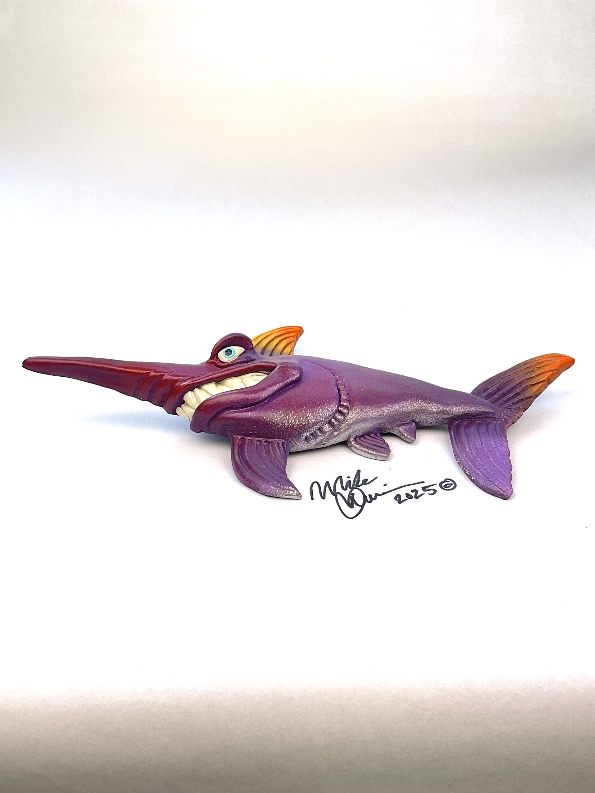 This piece is designed and created by artist Mike Quinn, it’s part of his Fish with Attitude collection. It’s one of a kind nature means it will have unique markings, design, spots, teeth, fur, claws or whatever is applicable to the creature posted.