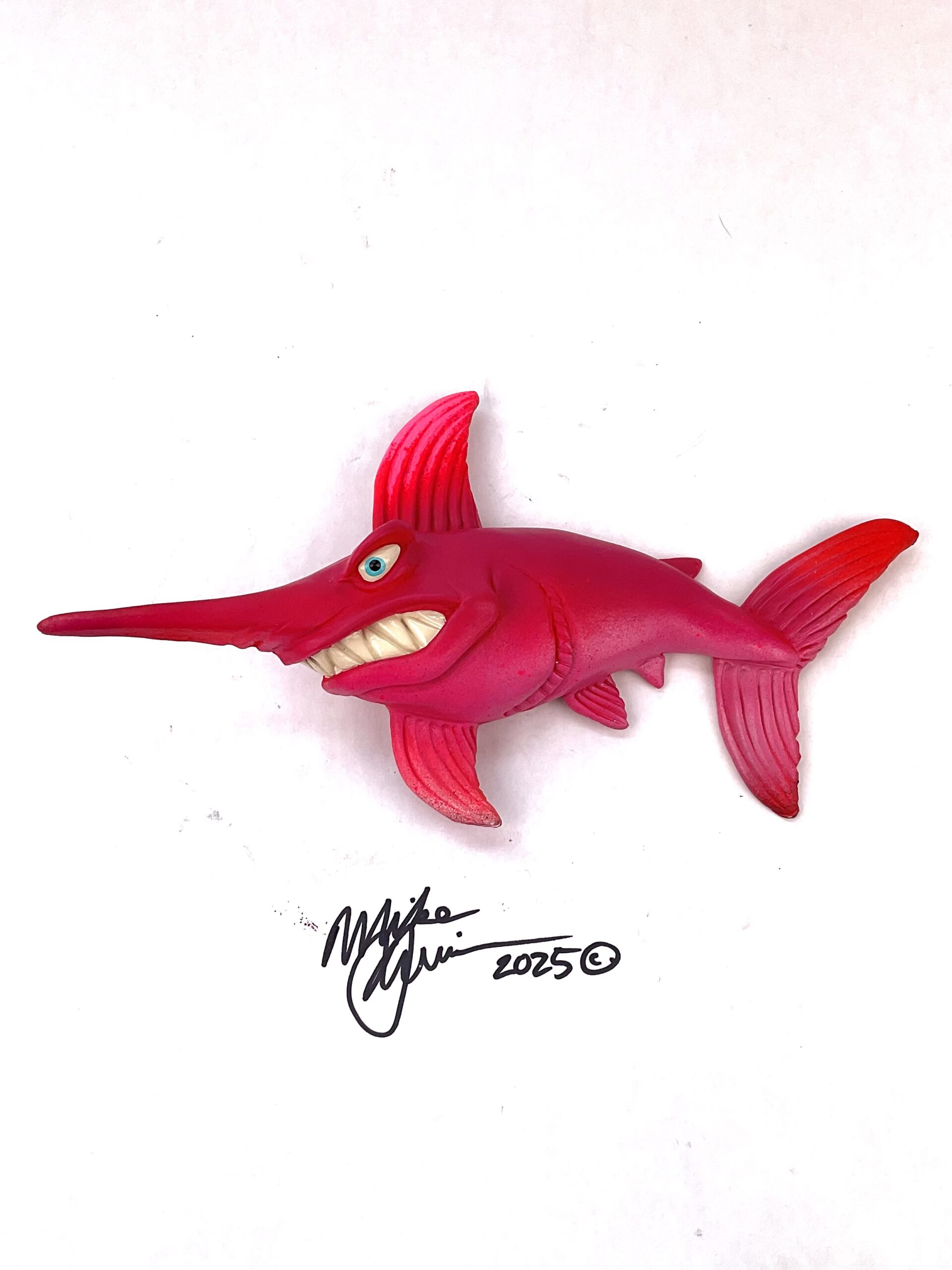 This piece is designed and created by artist Mike Quinn, it’s part of his Fish with Attitude collection. It’s one of a kind nature means it will have unique markings, design, spots, teeth, fur, claws or whatever is applicable to the creature posted.