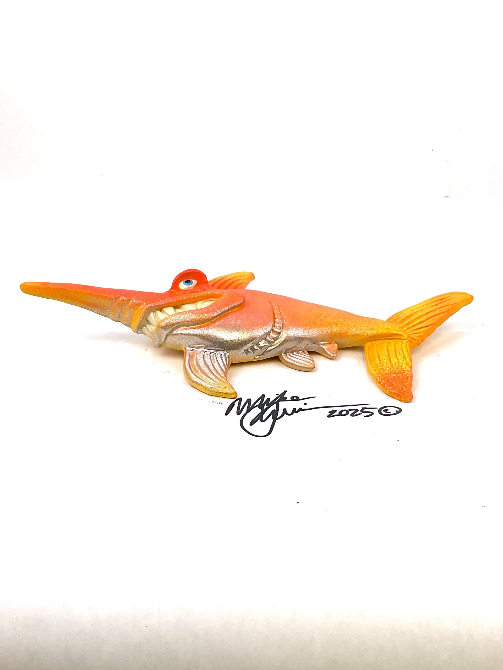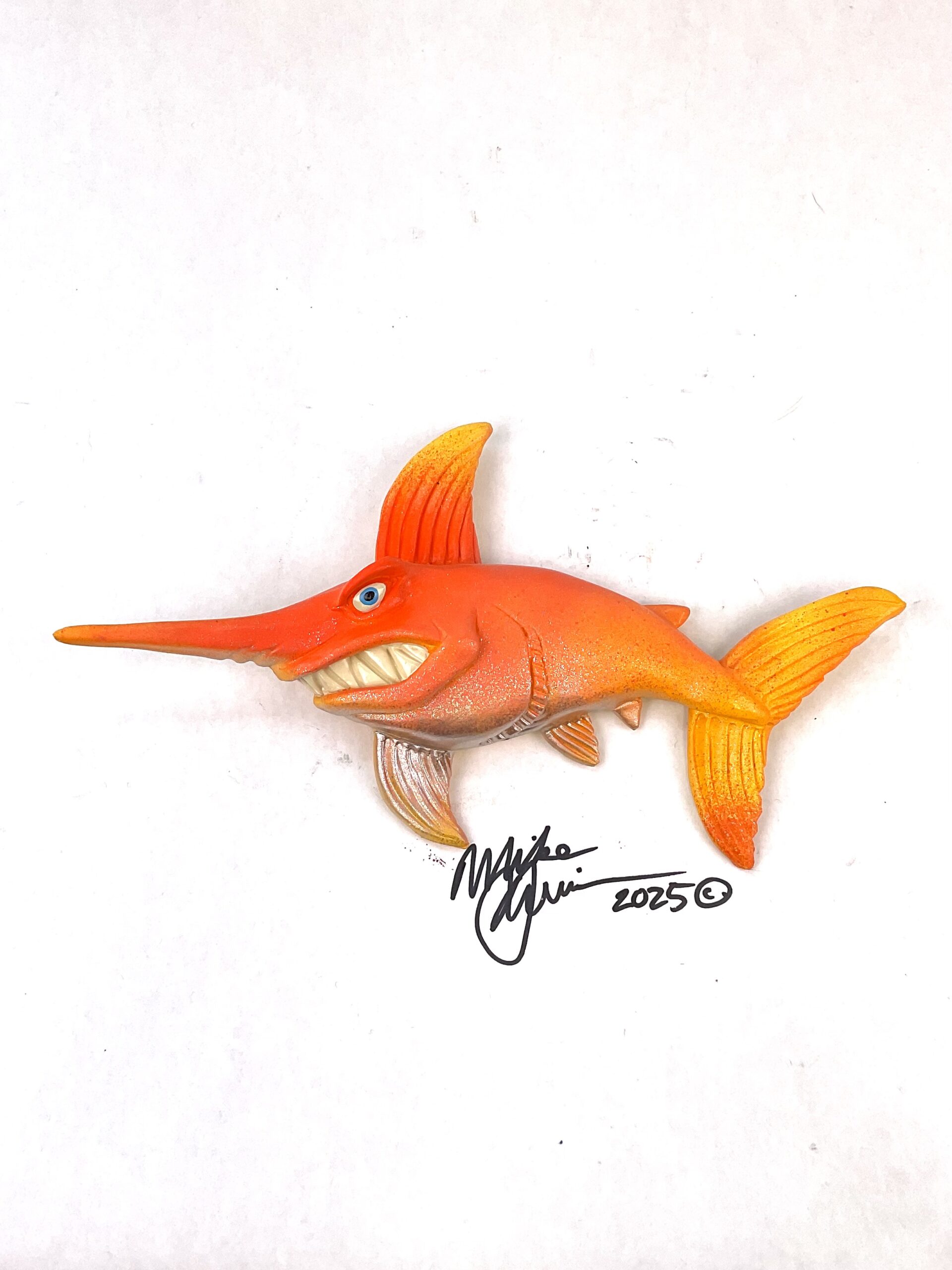 This piece is designed and created by artist Mike Quinn, it’s part of his Fish with Attitude collection. It’s one of a kind nature means it will have unique markings, design, spots, teeth, fur, claws or whatever is applicable to the creature posted.