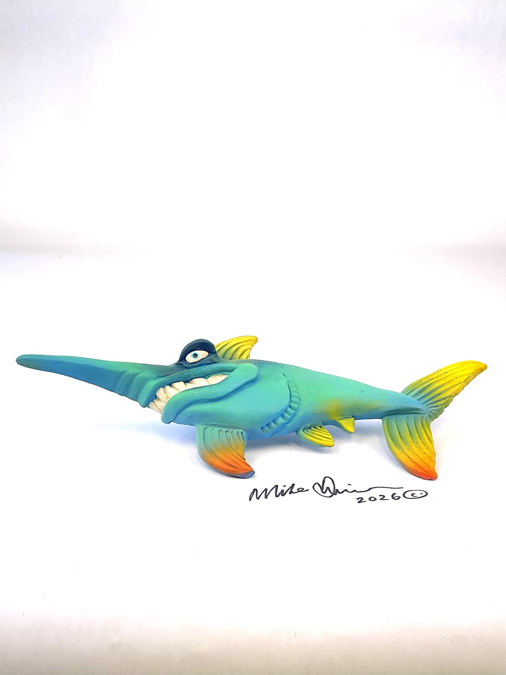 This piece is designed and created by artist Mike Quinn, it’s part of his Fish with Attitude collection. It’s one of a kind nature means it will have unique markings, design, spots, teeth, fur, claws or whatever is applicable to the creature posted.