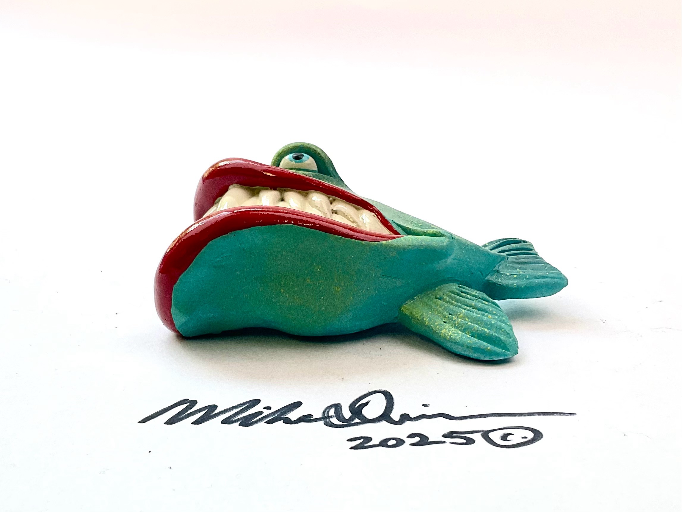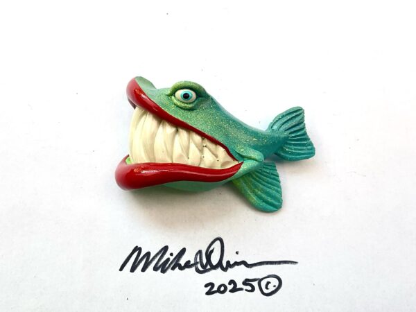 This piece is designed and created by artist Mike Quinn, it’s part of his Fish with Attitude collection. It’s one of a kind nature means it will have unique markings, design, spots, teeth, fur, claws or whatever is applicable to the creature posted.