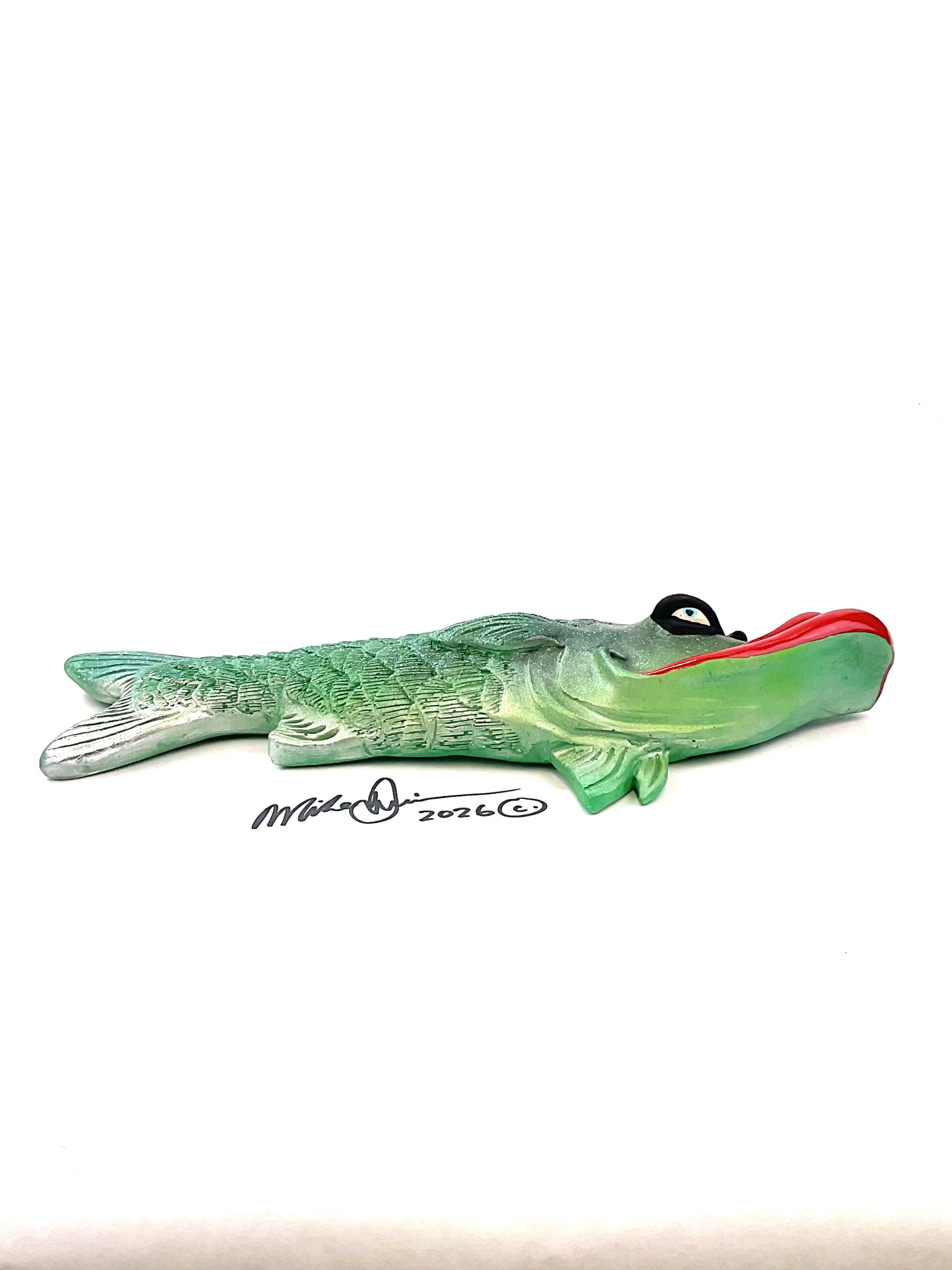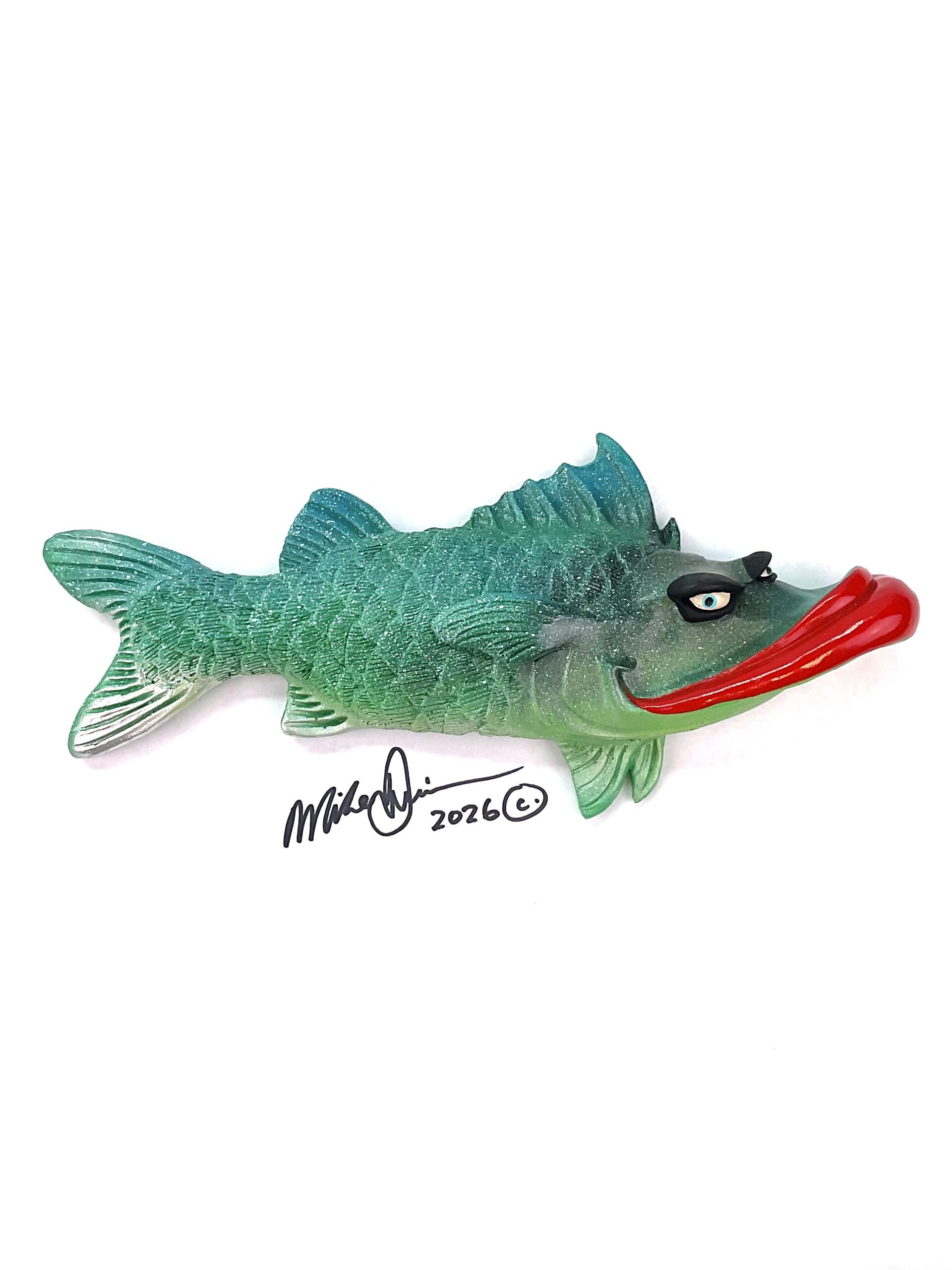 This piece is designed and created by artist Mike Quinn, it’s part of his Fish with Attitude collection. It’s one of a kind nature means it will have unique markings, design, spots, teeth, fur, claws or whatever is applicable to the creature posted.