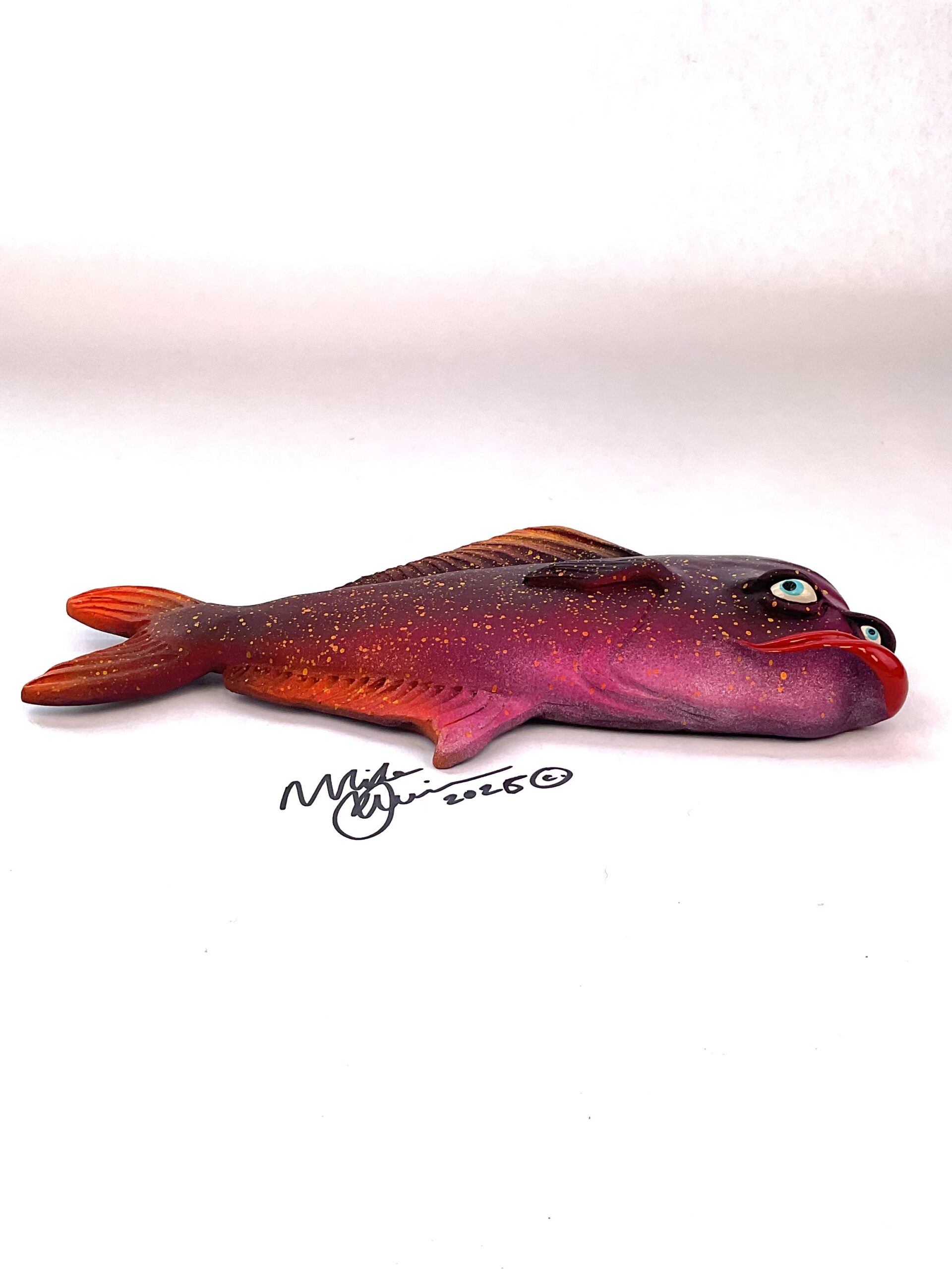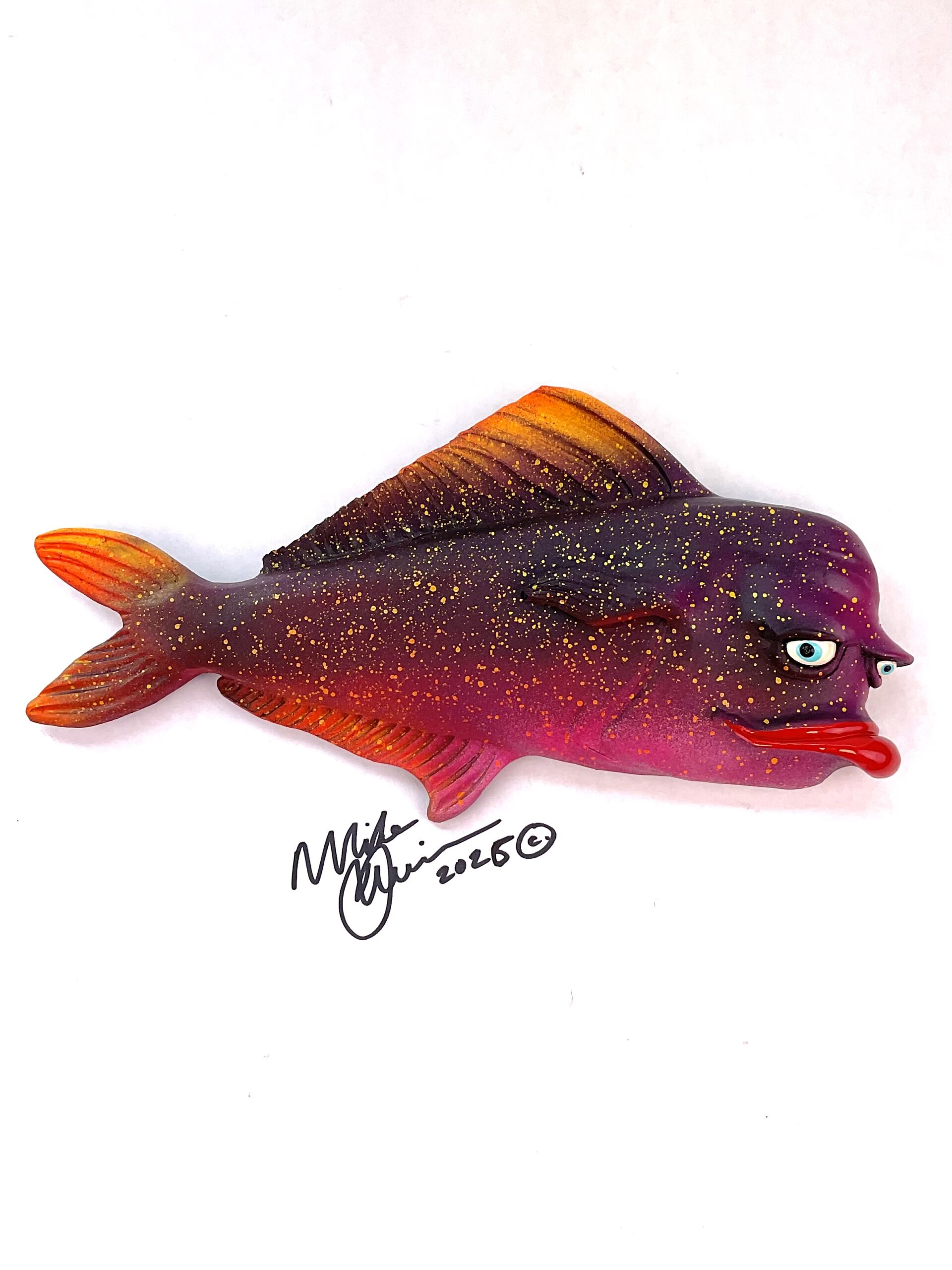 This piece is designed and created by artist Mike Quinn, it’s part of his Fish with Attitude collection. It’s one of a kind nature means it will have unique markings, design, spots, teeth, fur, claws or whatever is applicable to the creature posted.
