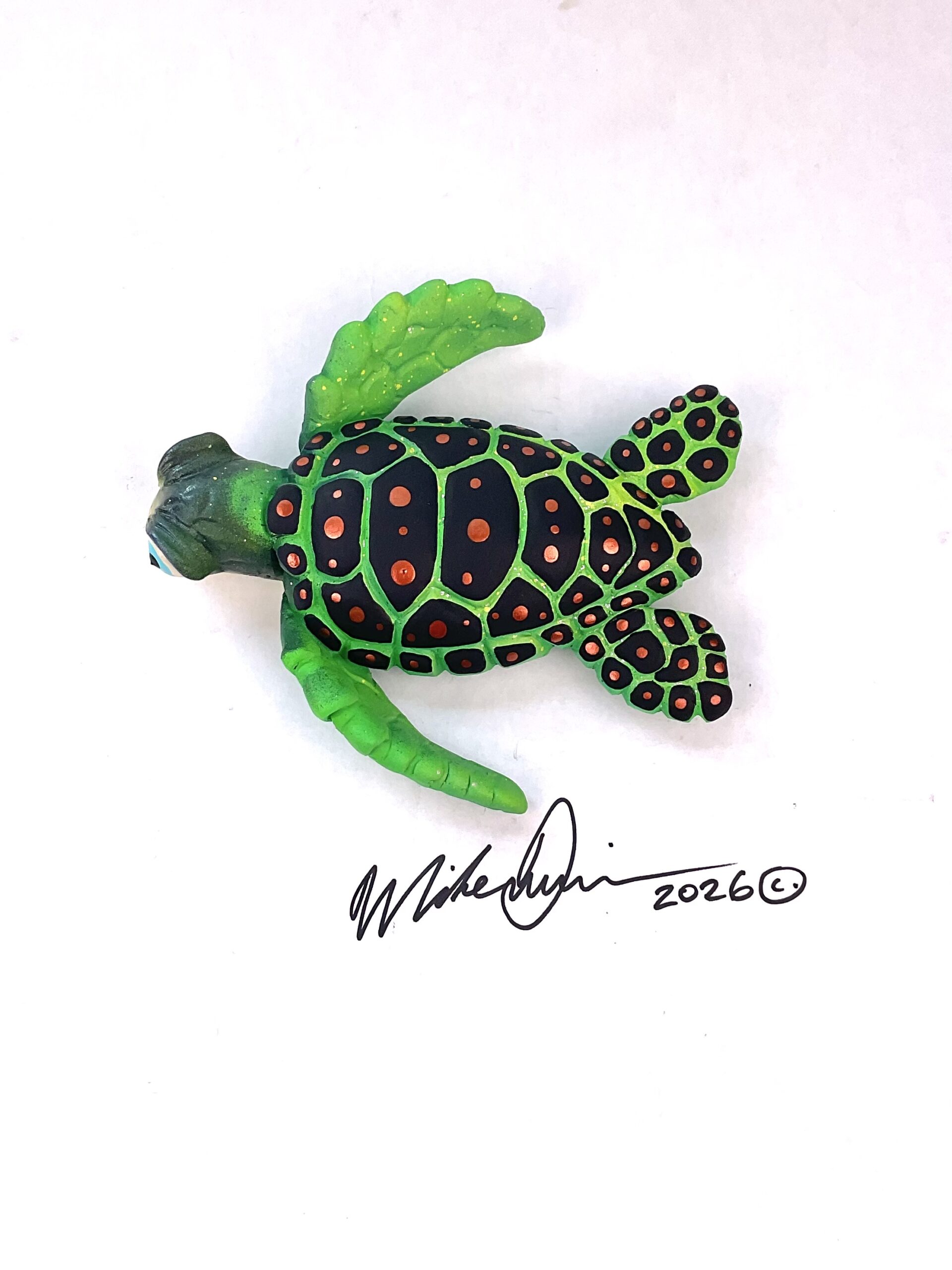 This piece is designed and created by artist Mike Quinn, it’s part of his Fish with Attitude collection. It’s one of a kind nature means it will have unique markings, design, spots, teeth, fur, claws or whatever is applicable to the creature posted.