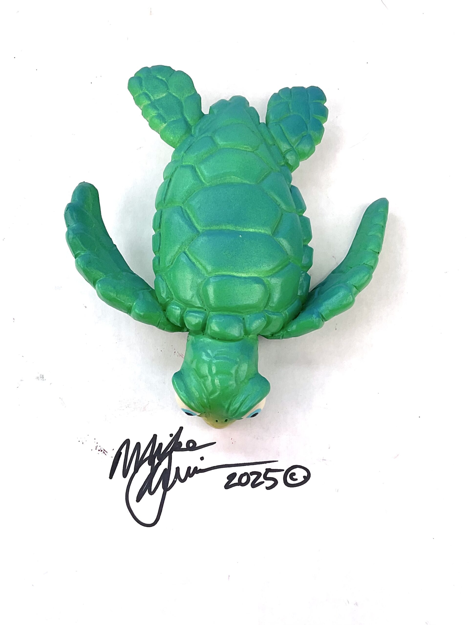 Dr. Honu is best known for being the “Doctor to the stars”…He specializes in orthopedic surgery, starfish ward.  He measures 7”x 6” and hangs on the wall with a built-in hook. He’s sporting a hand-painted custom finish that is designed for indoor use or outside in a protected/covered area. Unlike most of Mike’s fish this one can go left or right depending on how the hook is inserted. Once made it’s locked in…but feel free to request a special order if you need a certain style.