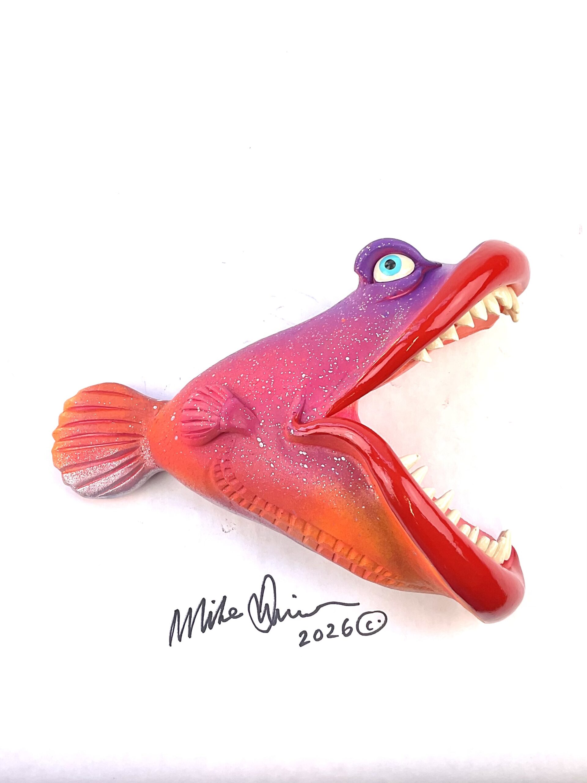 This piece is designed and created by artist Mike Quinn, it’s part of his Fish with Attitude collection. It’s one of a kind nature means it will have unique markings, design, spots, teeth, fur, claws or whatever is applicable to the creature posted.