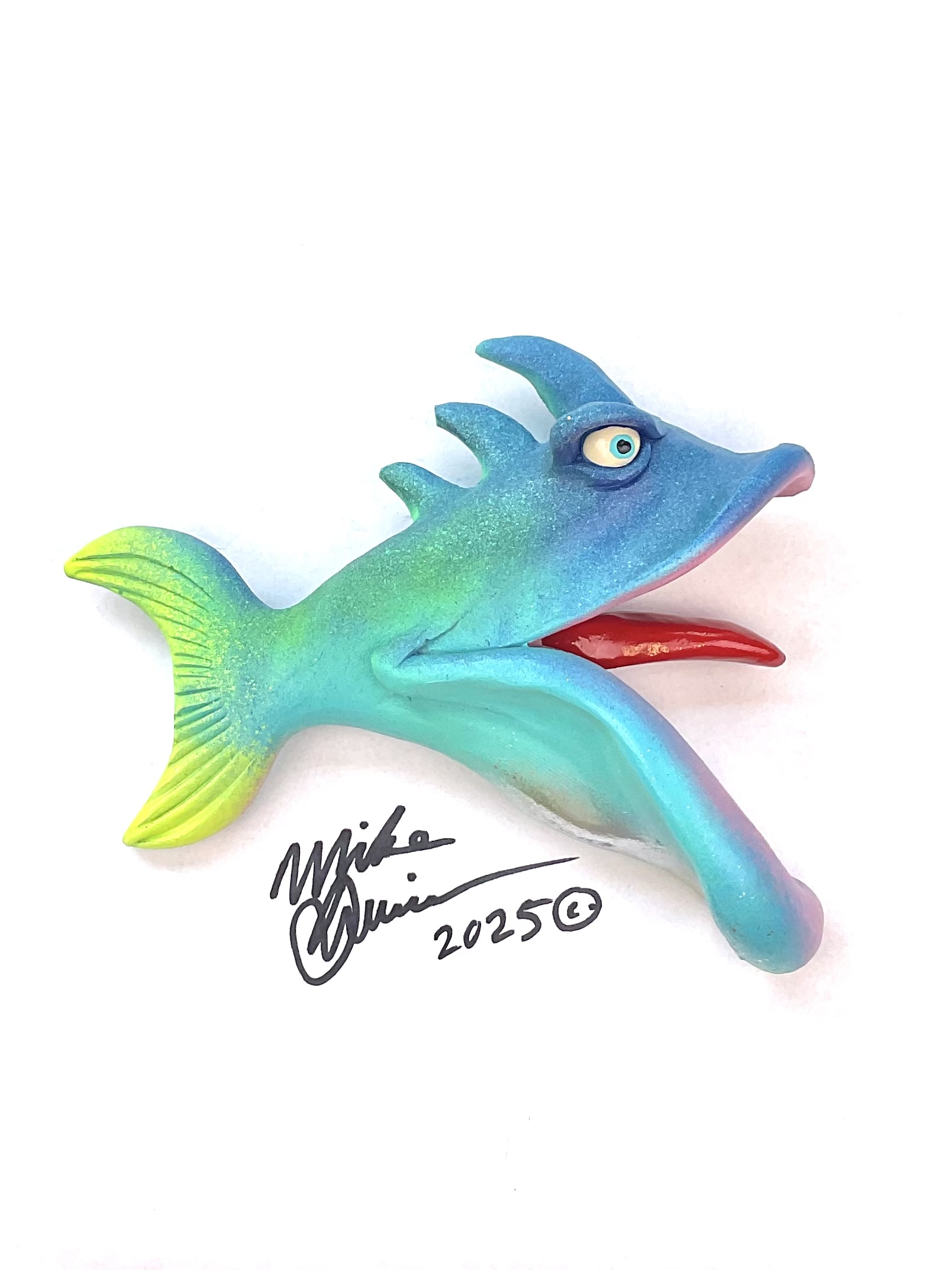 This piece is designed and created by artist Mike Quinn, it’s part of his Fish with Attitude collection. It’s one of a kind nature means it will have unique markings, design, spots, teeth, fur, claws or whatever is applicable to the creature posted.