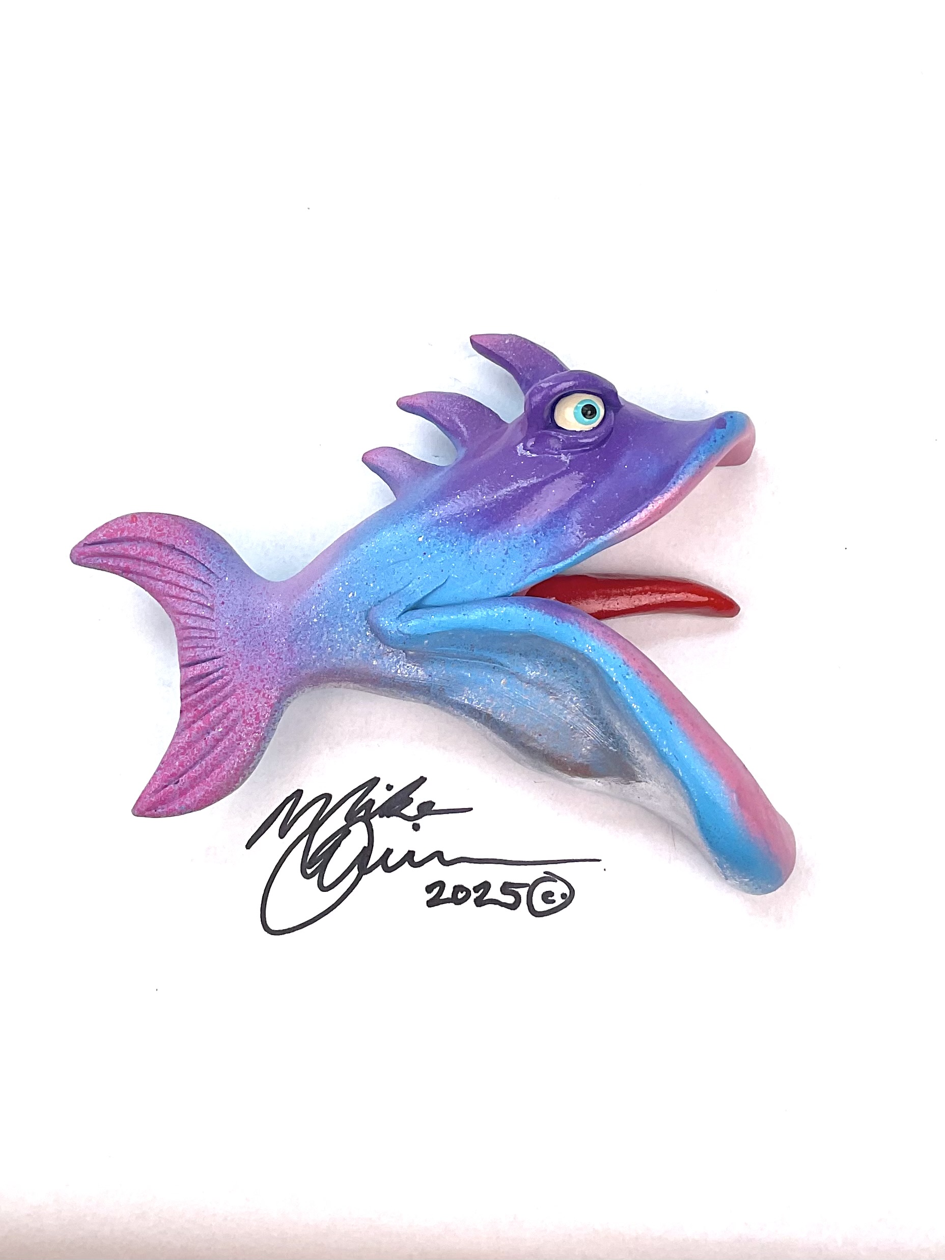This piece is designed and created by artist Mike Quinn, it’s part of his Fish with Attitude collection. It’s one of a kind nature means it will have unique markings, design, spots, teeth, fur, claws or whatever is applicable to the creature posted.