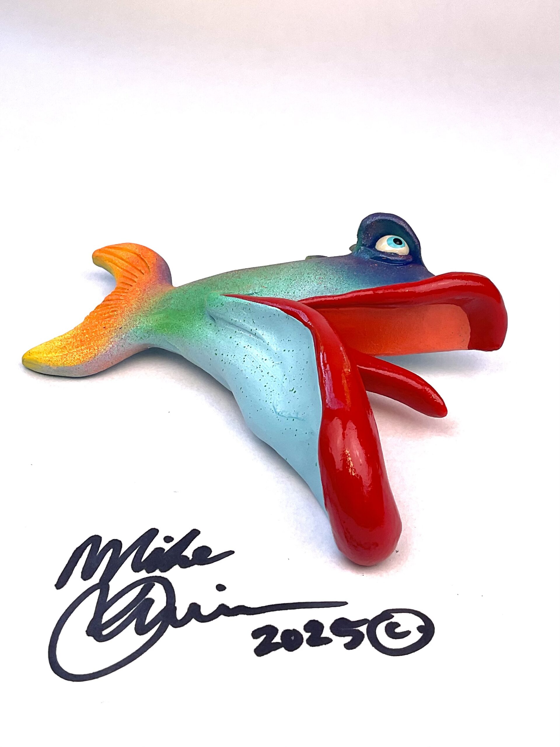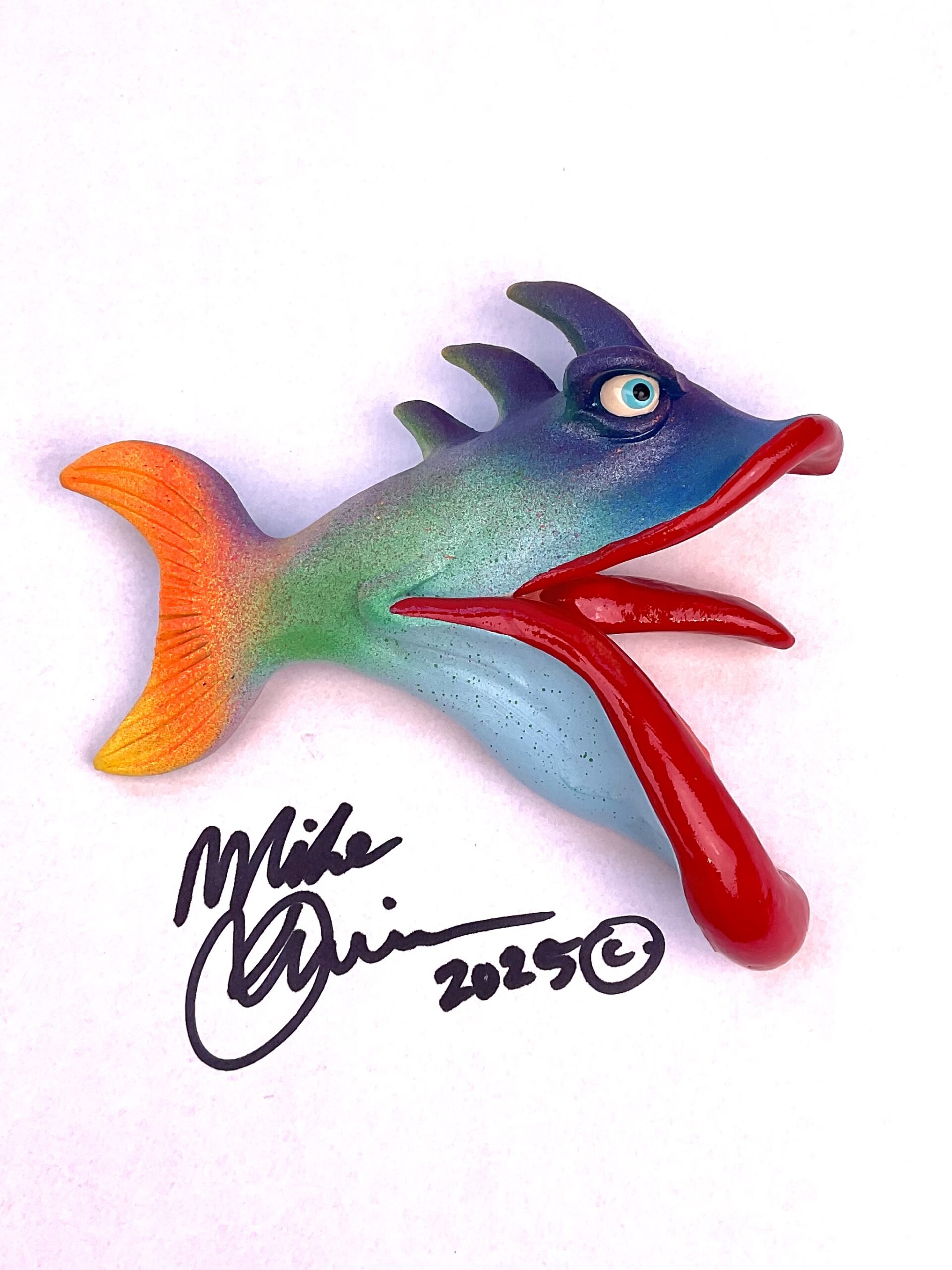 This piece is designed and created by artist Mike Quinn, it’s part of his Fish with Attitude collection. It’s one of a kind nature means it will have unique markings, design, spots, teeth, fur, claws or whatever is applicable to the creature posted.