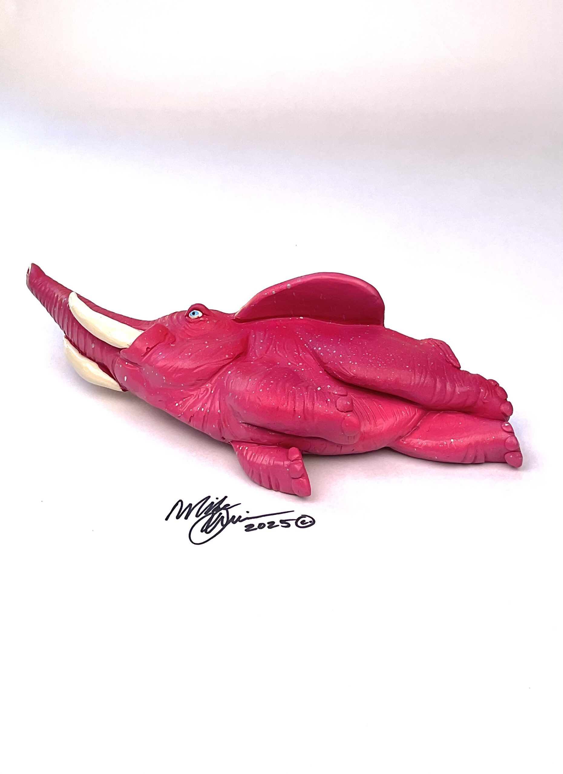 “Elwood” retired from the circus he started a garage band. They call themselves the “Pachyderms”. He measures 12.5″x 5″x 3″ and hangs on the wall with a built-in hook. He’s sporting a hand painted custom finish that is designed for indoor use or outside in a protected/covered area.