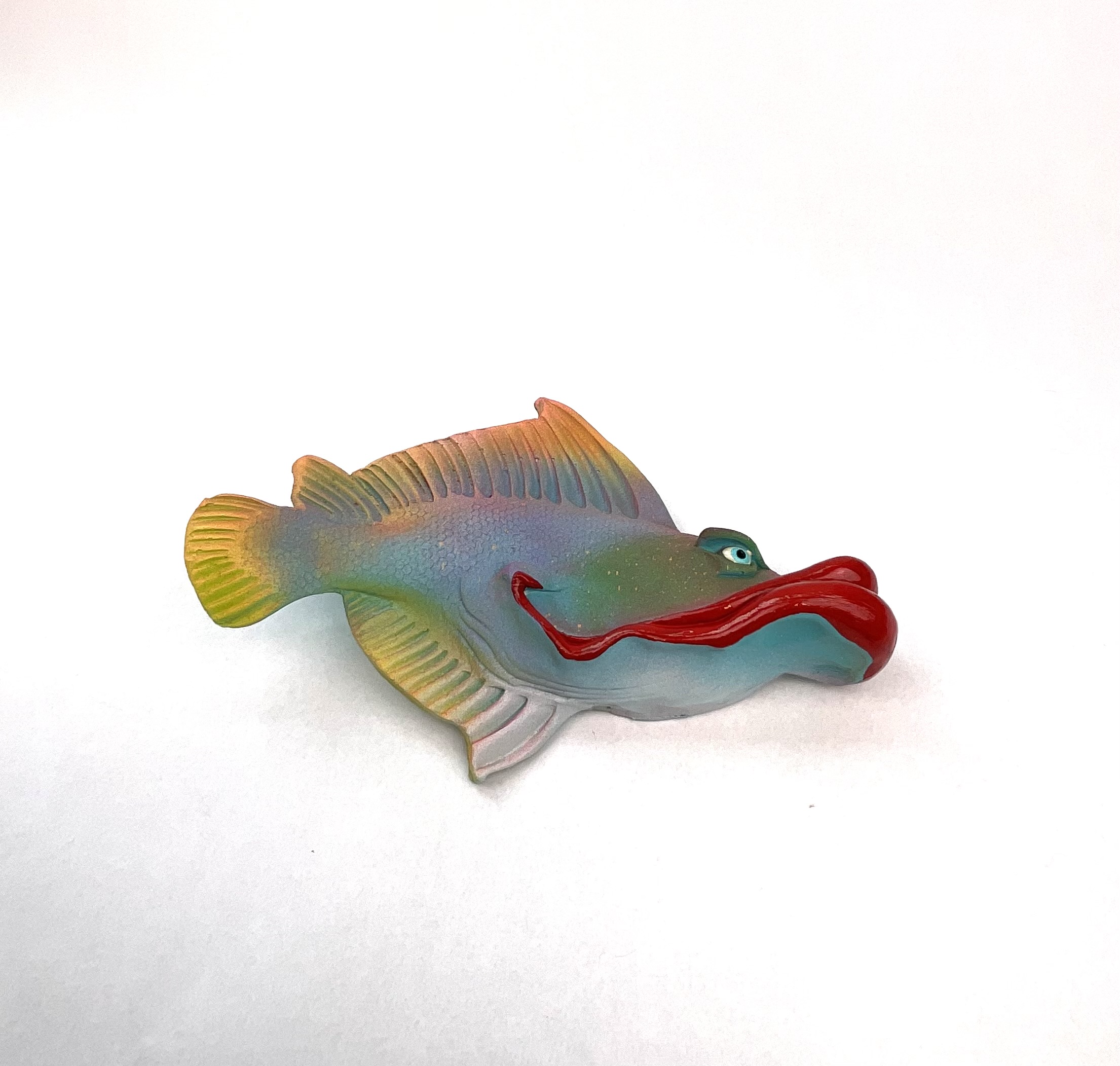 This piece is designed and created by artist Mike Quinn, it’s part of his Fish with Attitude collection. It’s one of a kind nature means it will have unique markings, design, spots, teeth, fur, claws or whatever is applicable to the creature posted.