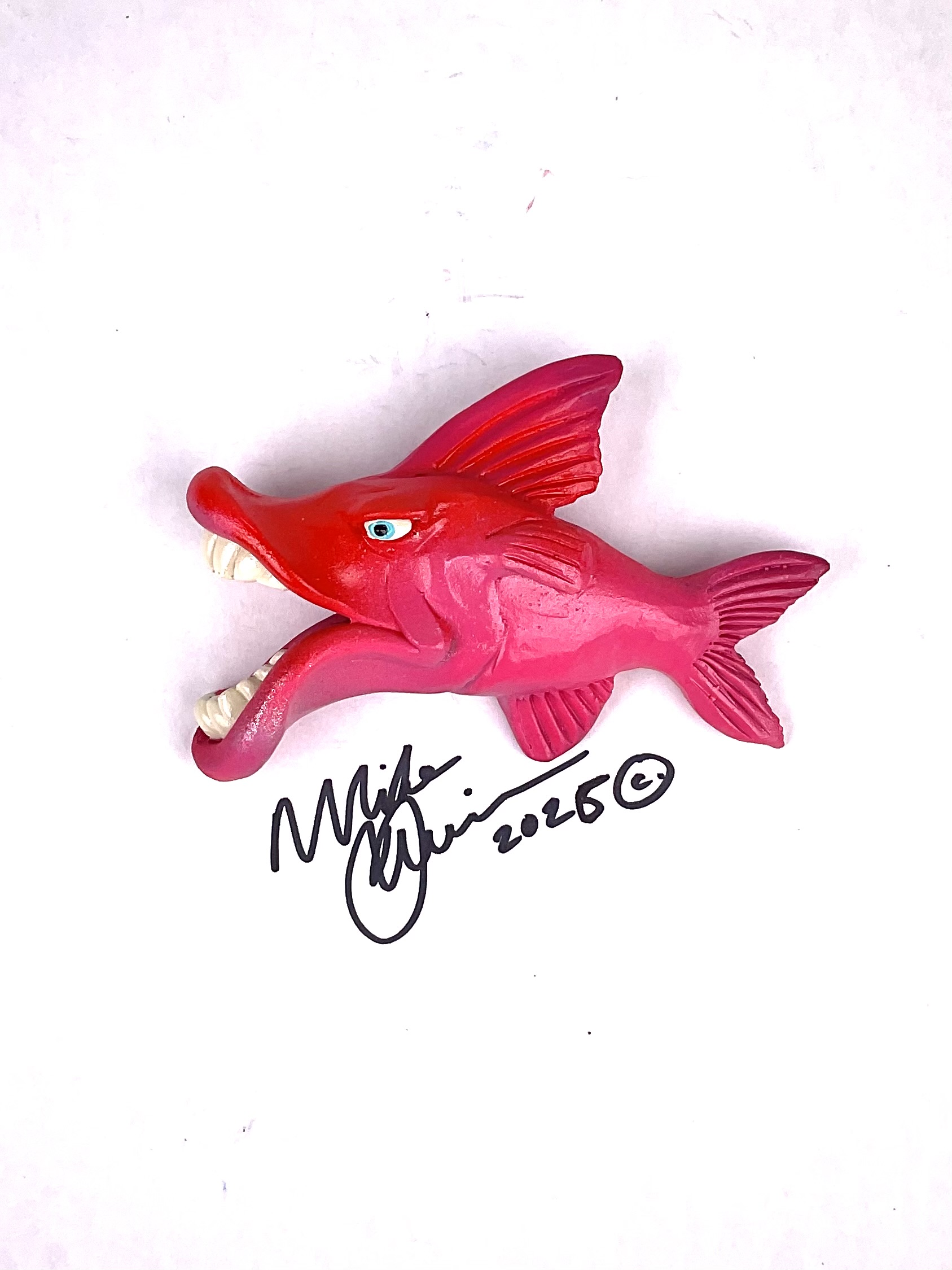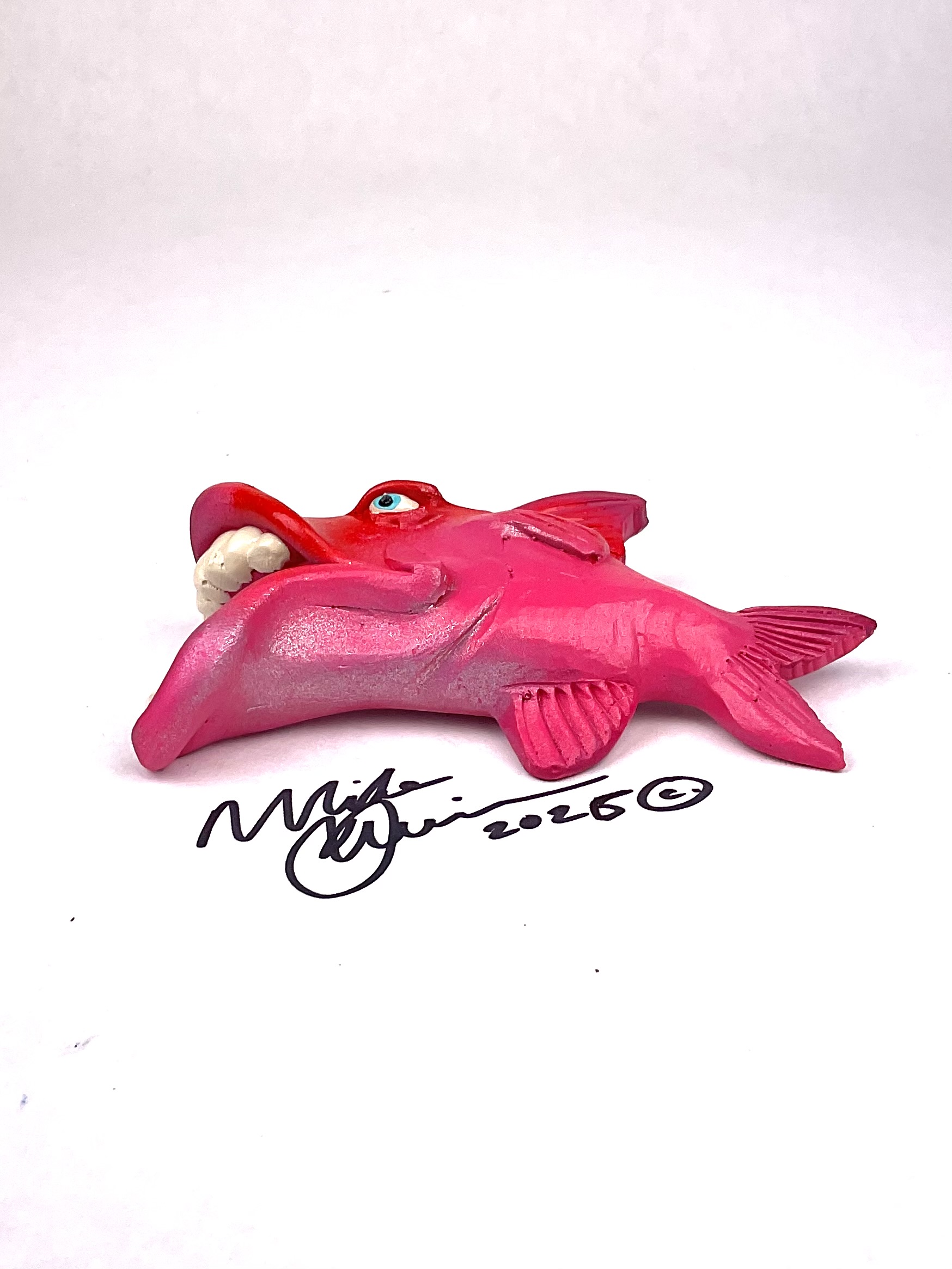 This piece is designed and created by artist Mike Quinn, it’s part of his Fish with Attitude collection. It’s one of a kind nature means it will have unique markings, design, spots, teeth, fur, claws or whatever is applicable to the creature posted.