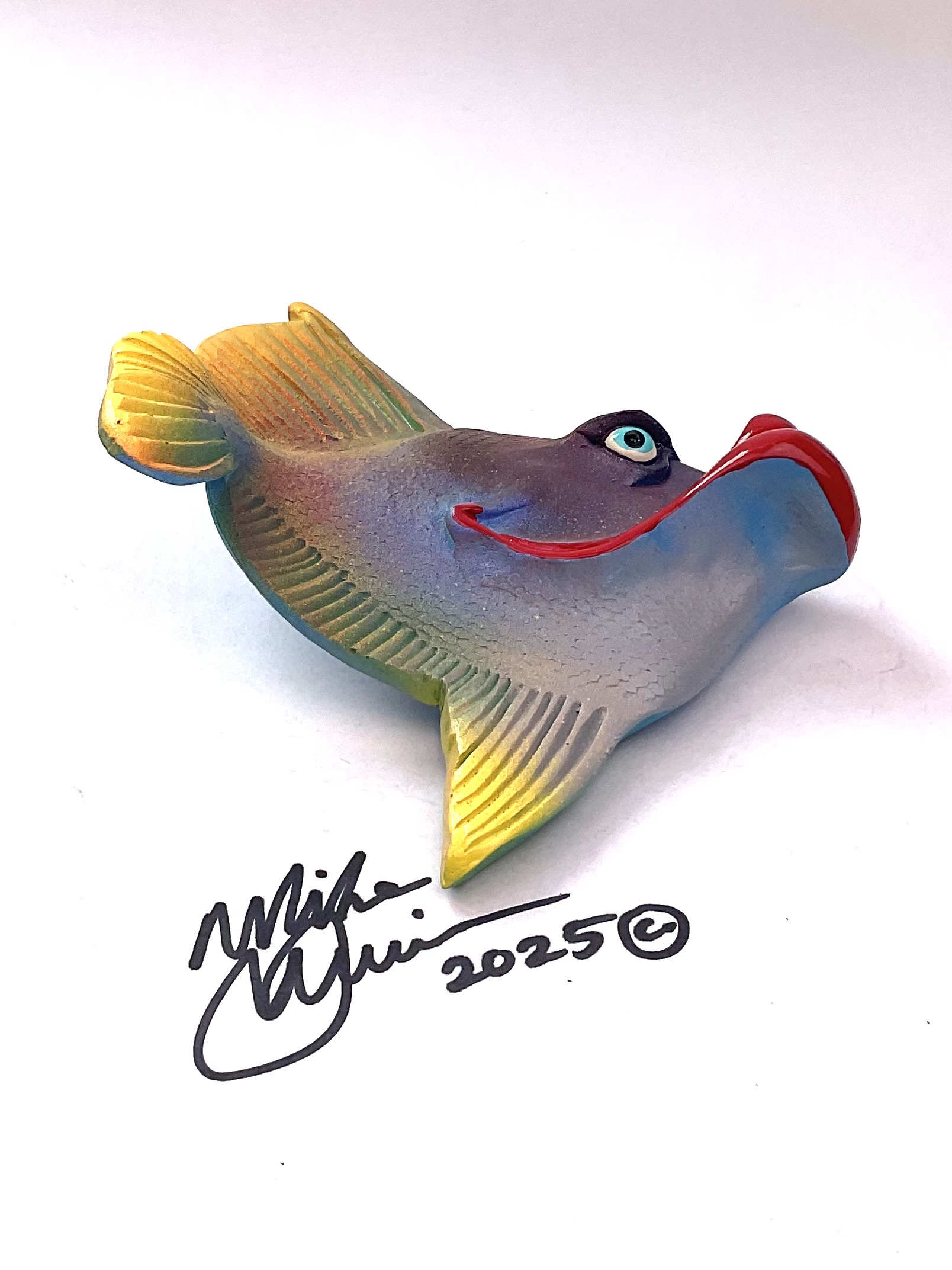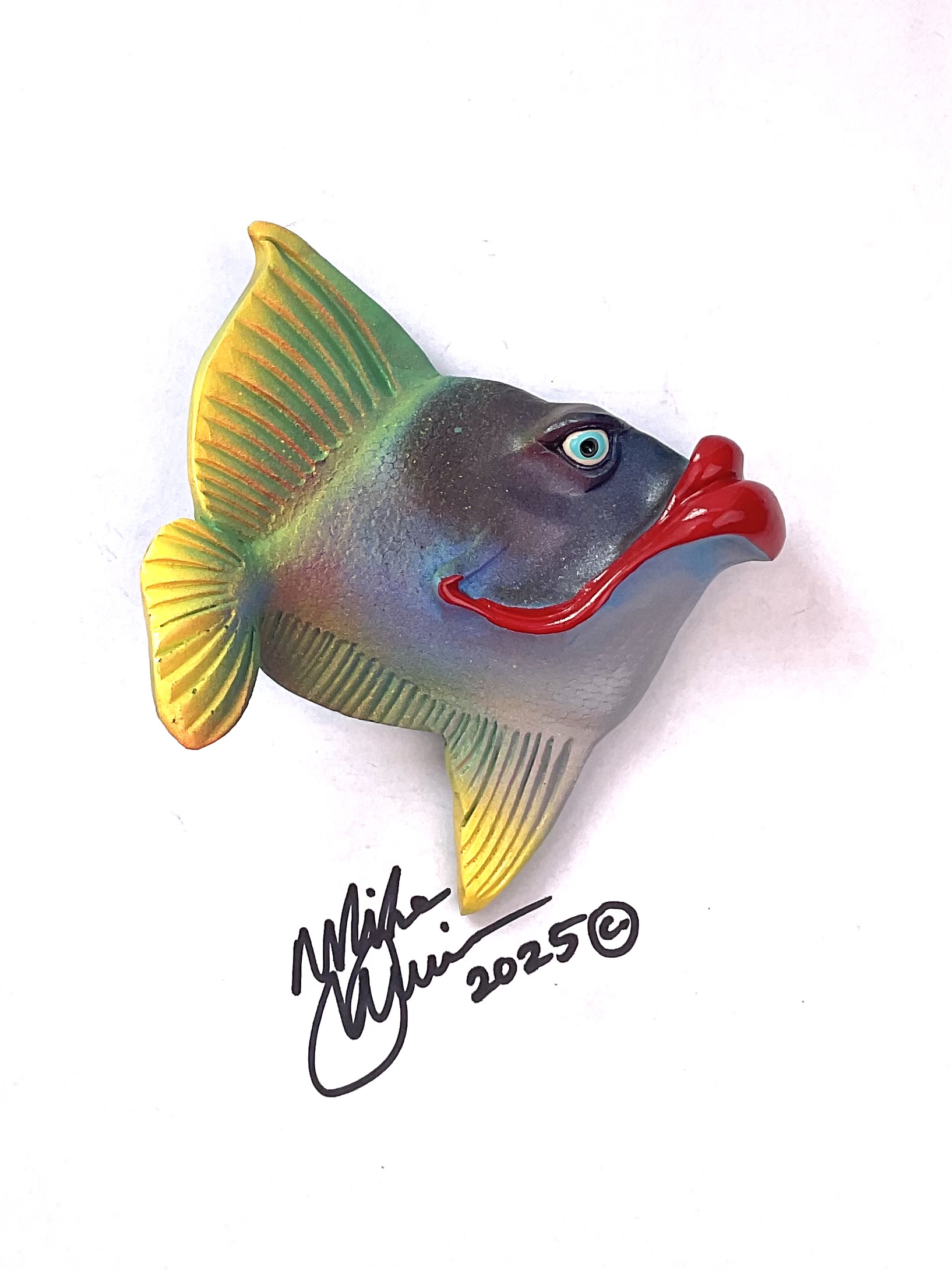 This piece is designed and created by artist Mike Quinn, it’s part of his Fish with Attitude collection. It’s one of a kind nature means it will have unique markings, design, spots, teeth, fur, claws or whatever is applicable to the creature posted.