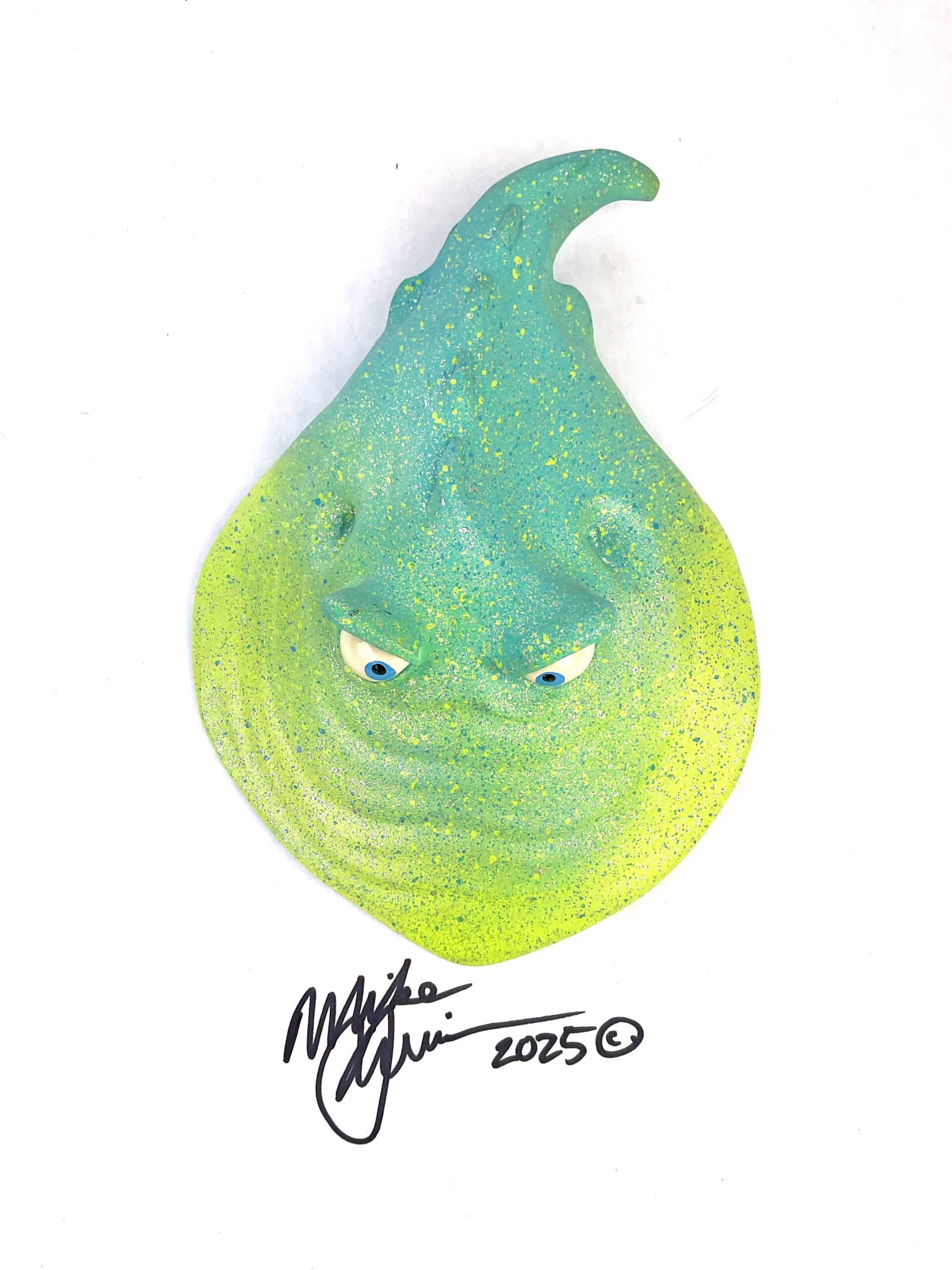 This fish with attitude is named Grumpy Bill. Not much for social affairs, this lovable can usually be found doing clean-up. When he isn’t working his reef sanitation job you can can find him yelling at the neighborhood kids to “Quiet Down”. He measures 9″ x 6″ and hangs on the wall with a built-in hook. He’s sporting a hand-painted custom finish that is designed for indoor use or outside in a protected/covered area.