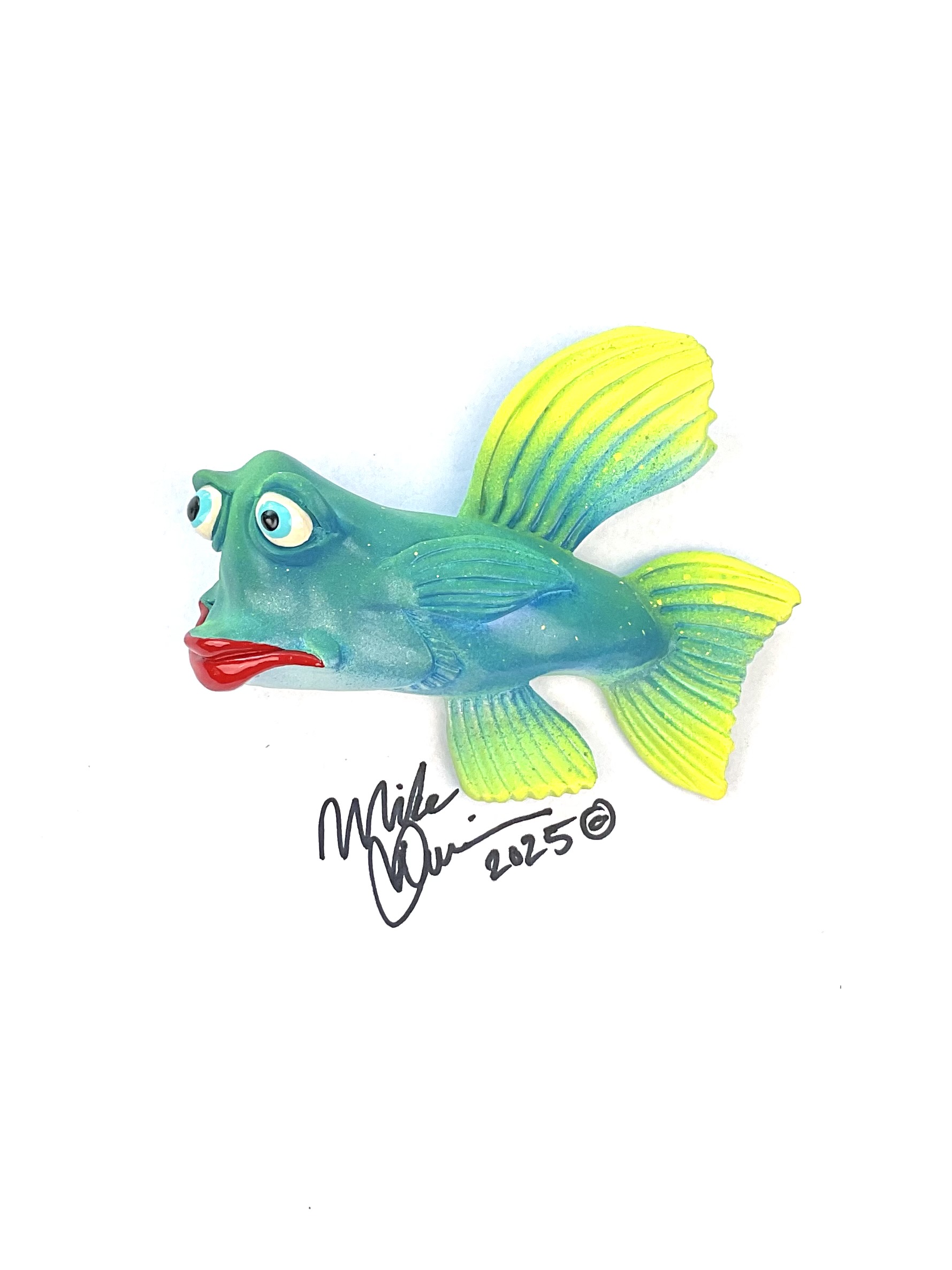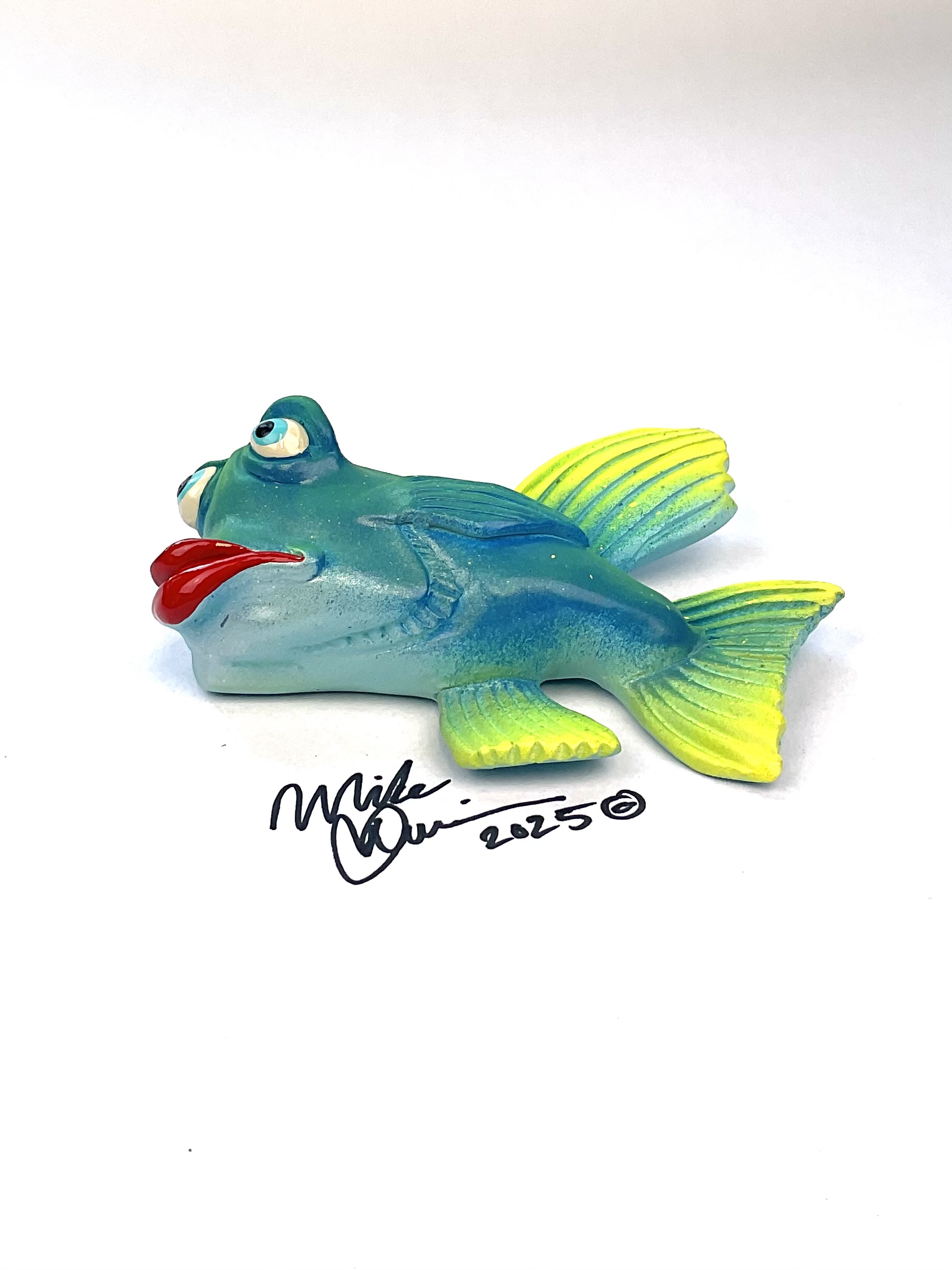 This piece is designed and created by artist Mike Quinn, it’s part of his Fish with Attitude collection. It’s one of a kind nature means it will have unique markings, design, spots, teeth, fur, claws or whatever is applicable to the creature posted.