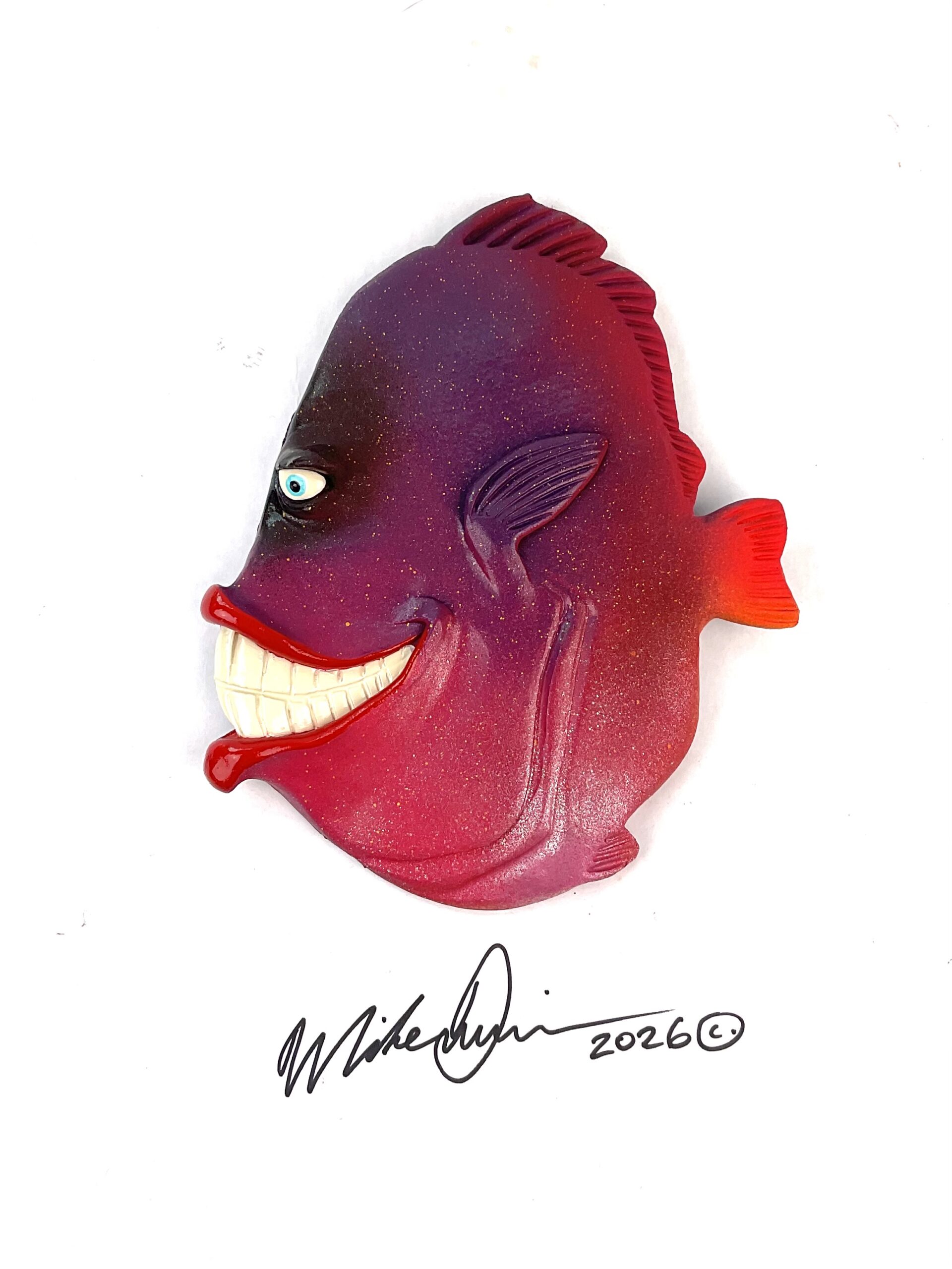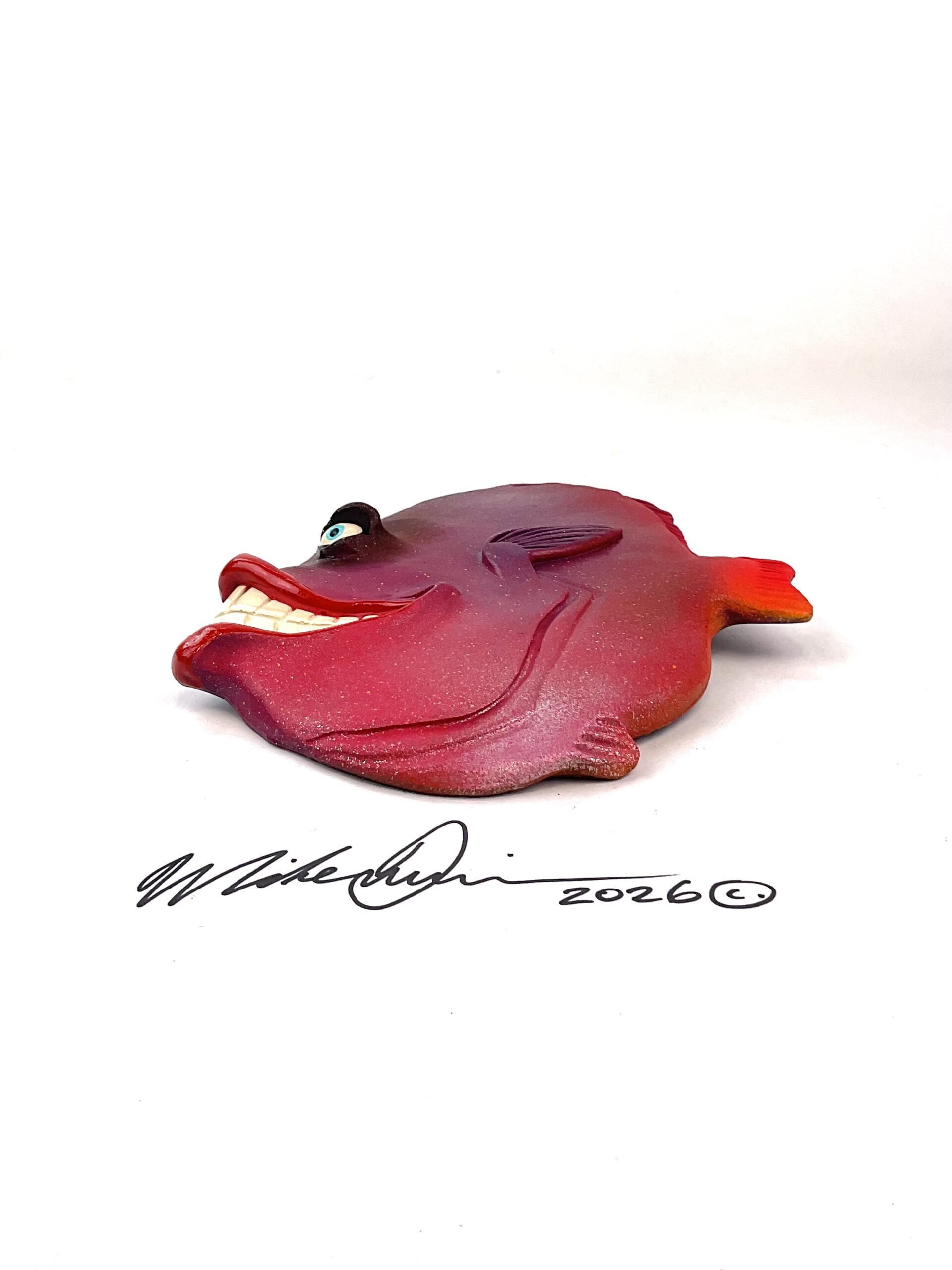 This piece is designed and created by artist Mike Quinn, it’s part of his Fish with Attitude collection. It’s one of a kind nature means it will have unique markings, design, spots, teeth, fur, claws or whatever is applicable to the creature posted.