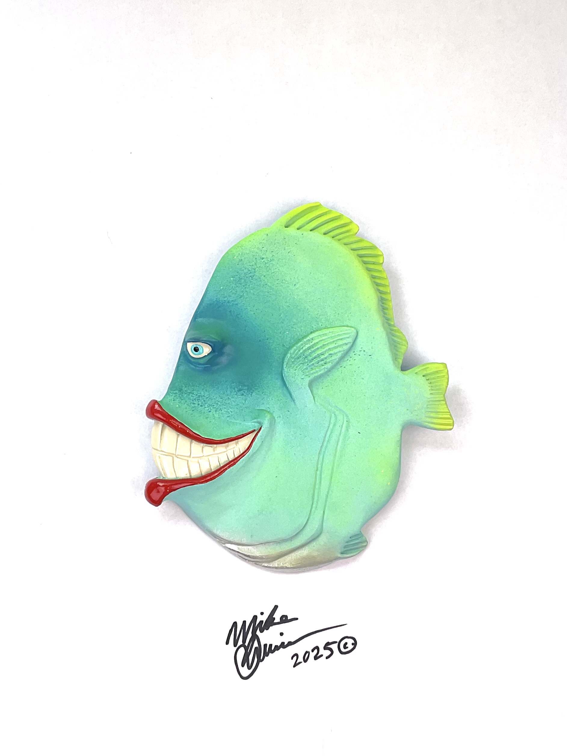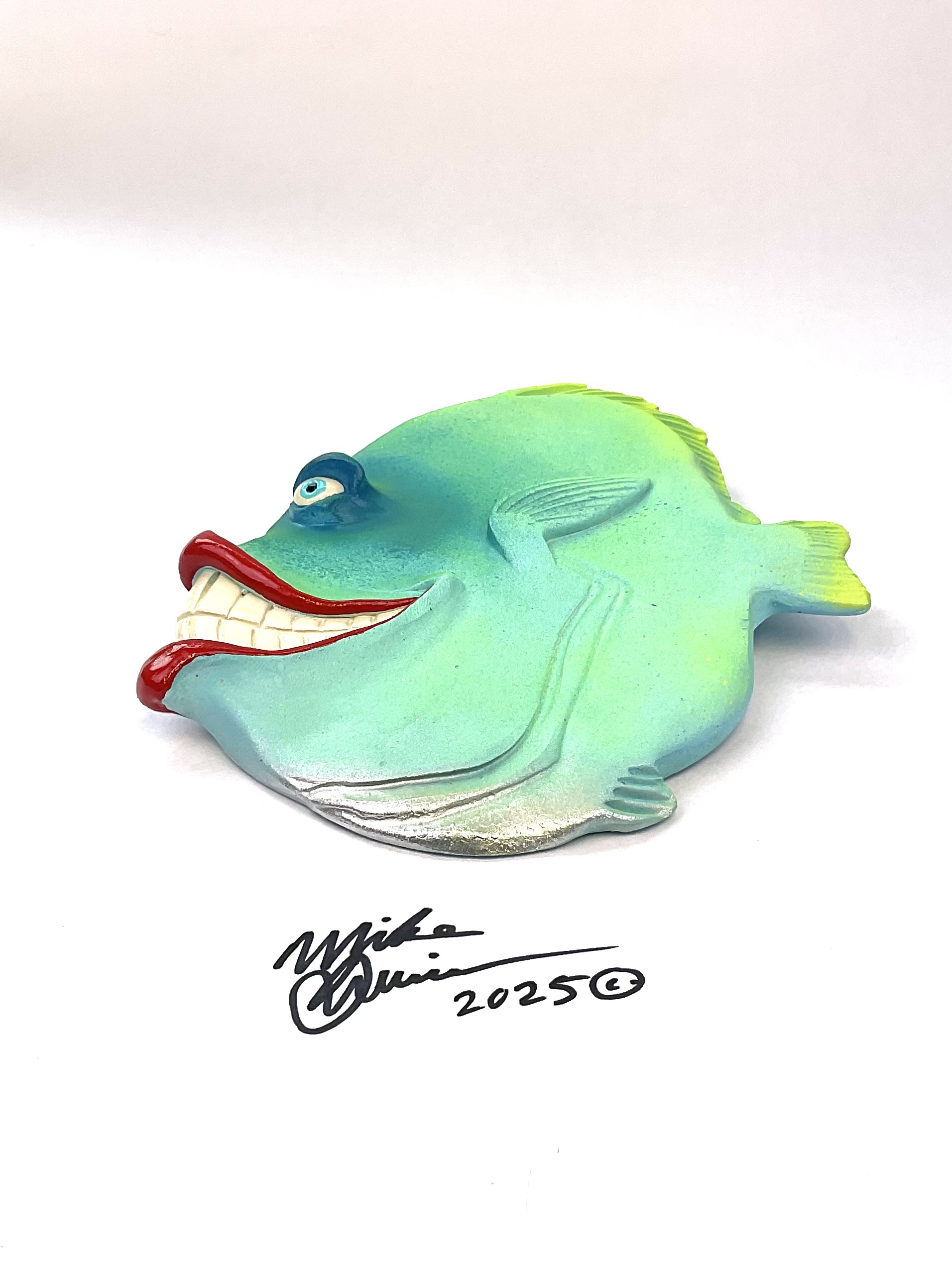 This piece is designed and created by artist Mike Quinn, it’s part of his Fish with Attitude collection. It’s one of a kind nature means it will have unique markings, design, spots, teeth, fur, claws or whatever is applicable to the creature posted.