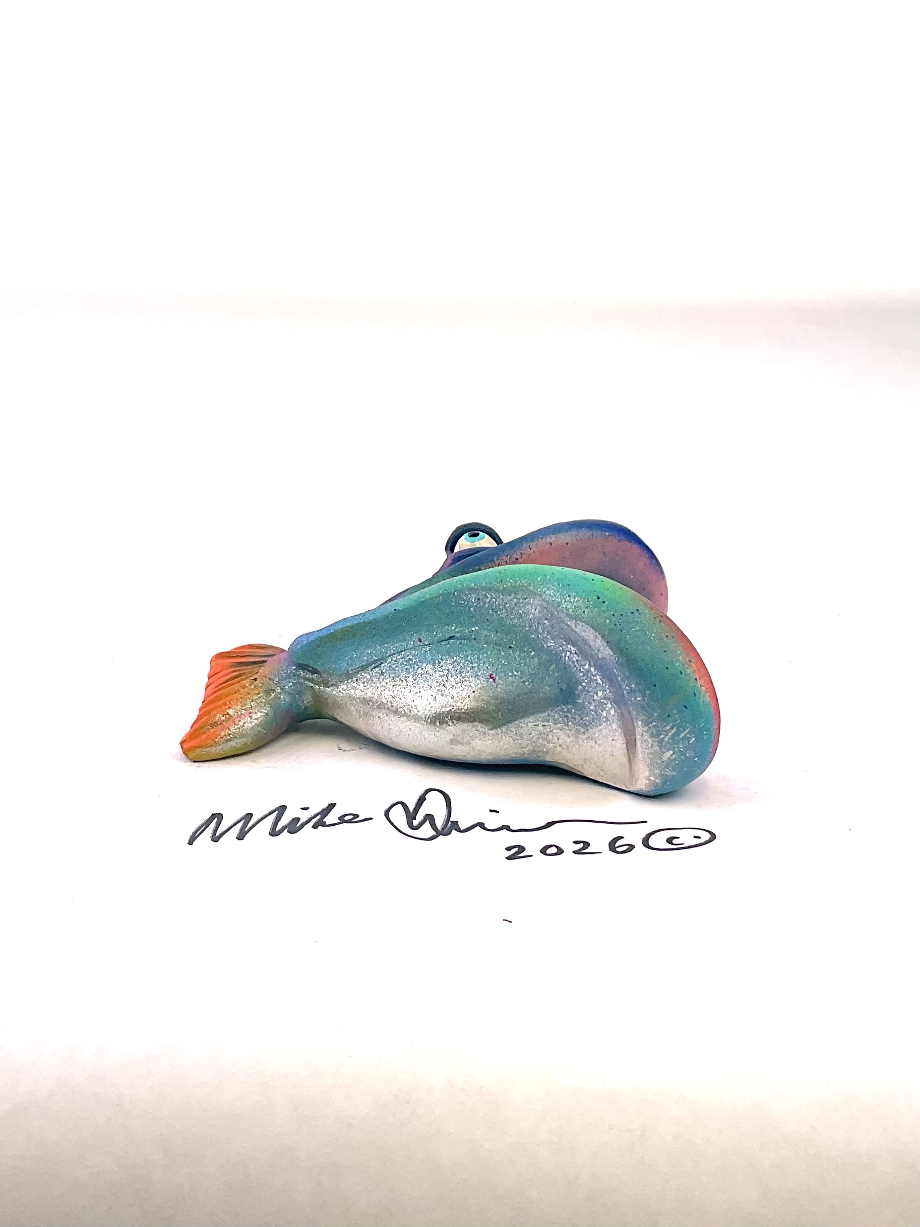 This piece is designed and created by artist Mike Quinn, it’s part of his Fish with Attitude collection. Its one of a kind nature means it will have unique markings, design, spots, teeth, fur, claws, or whatever is applicable to the creature posted.
