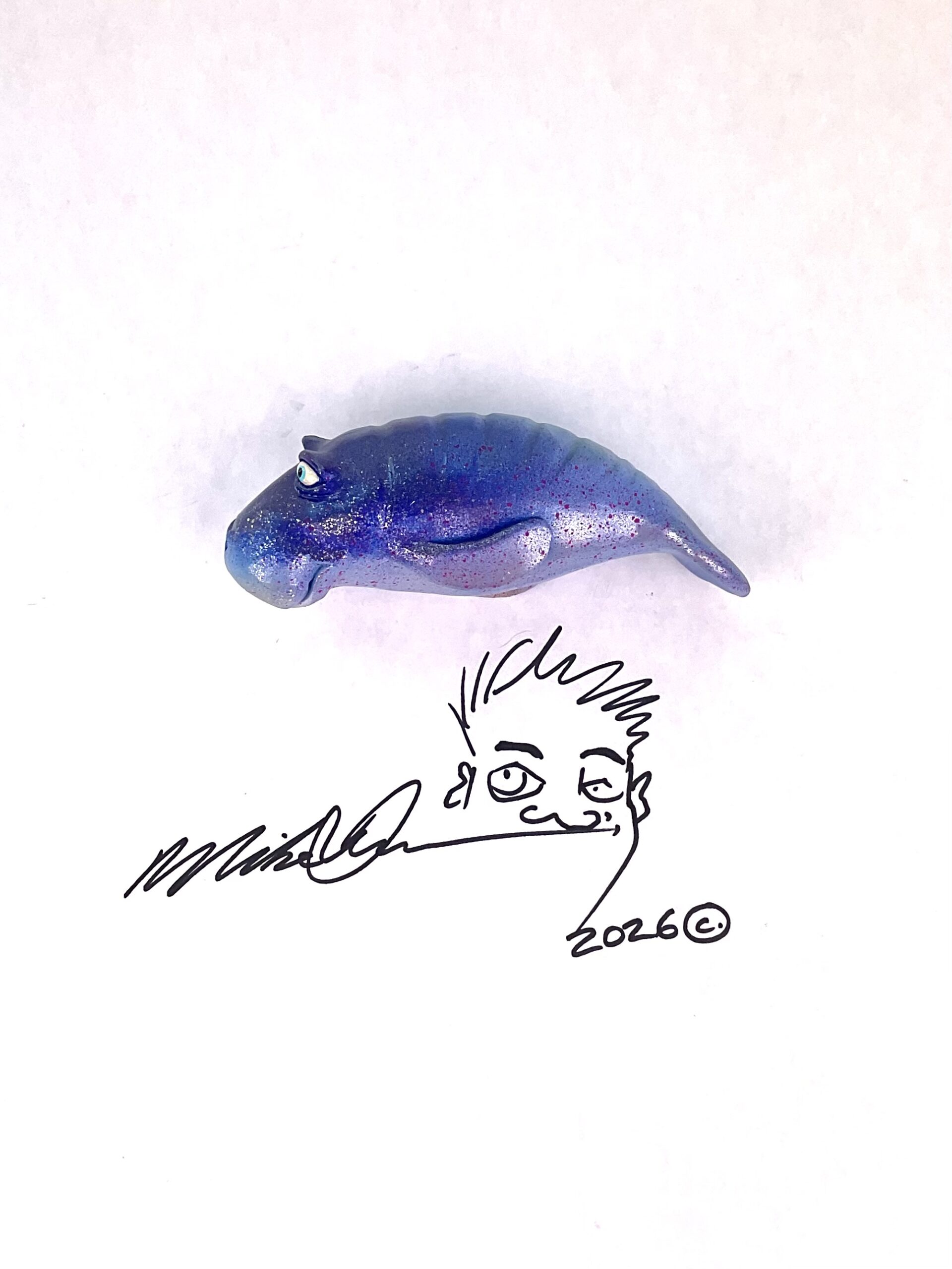 This piece is designed and created by artist Mike Quinn, it’s part of his Fish with Attitude collection. It’s one of a kind nature means it will have unique markings, design, spots, teeth, fur, claws or whatever is applicable to the creature posted.