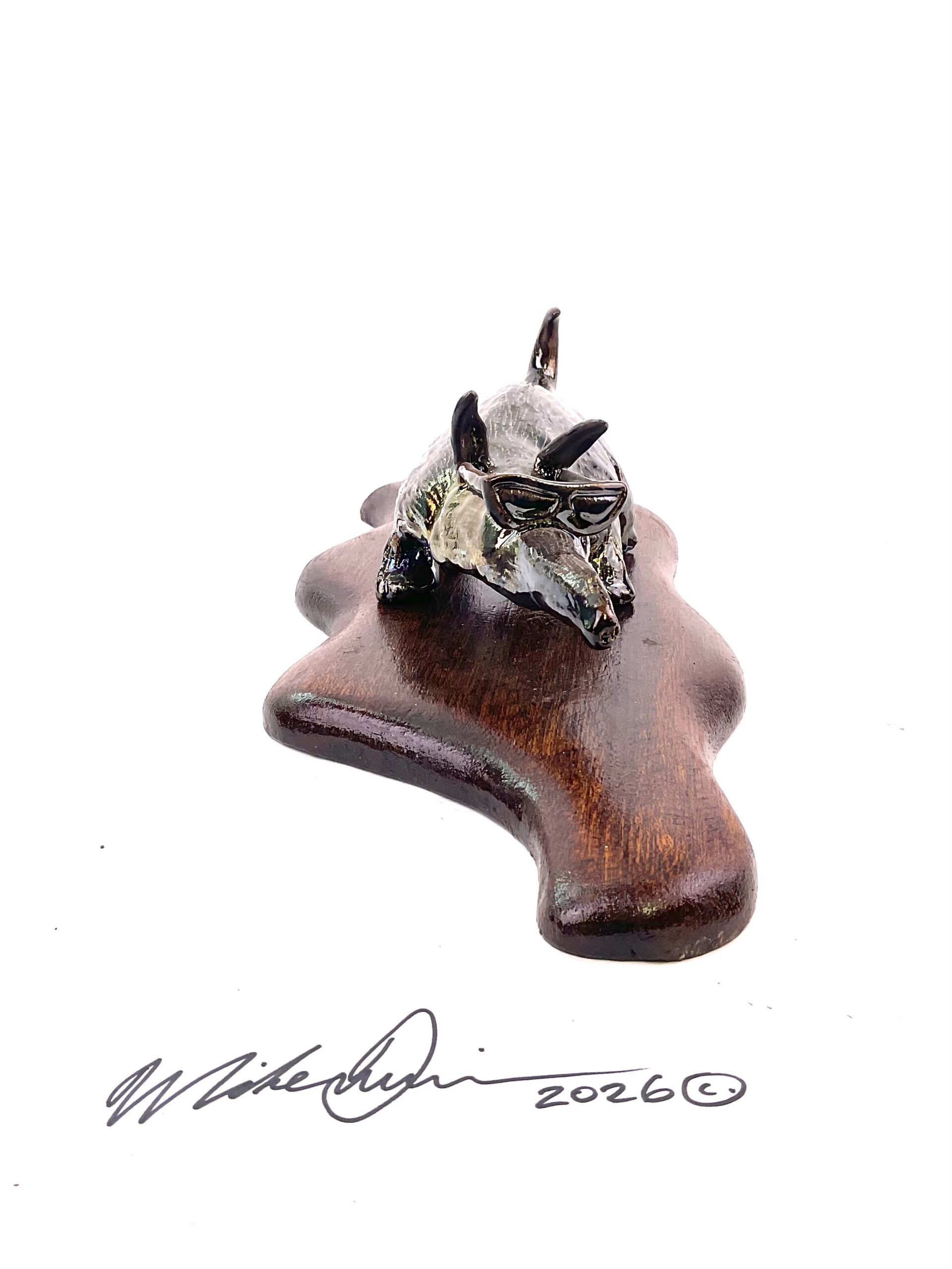 This piece is designed and created by artist Mike Quinn, it’s part of his Fish with Attitude collection. It’s one of a kind nature means it will have unique markings, design, spots, teeth, fur, claws or whatever is applicable to the creature posted.