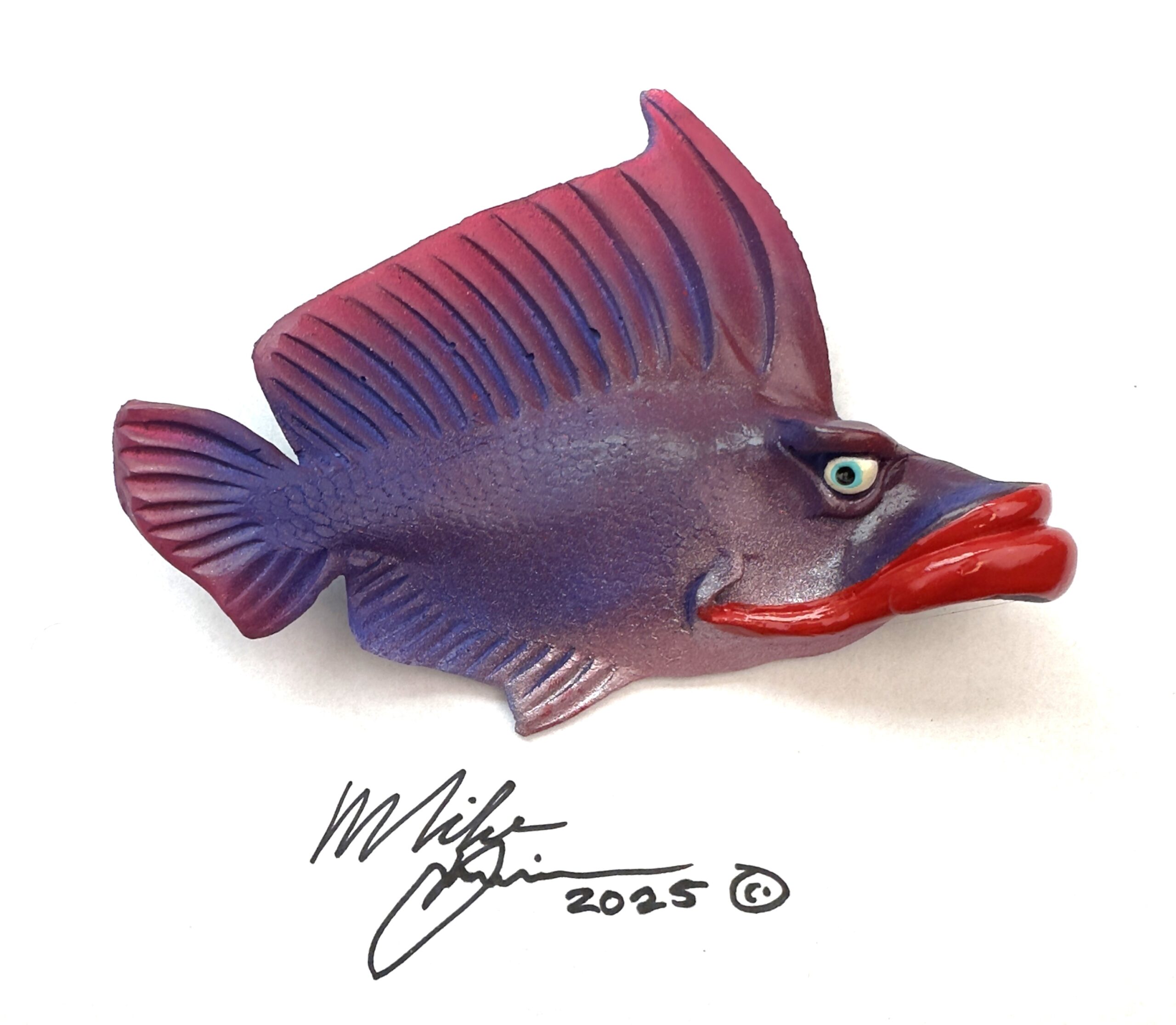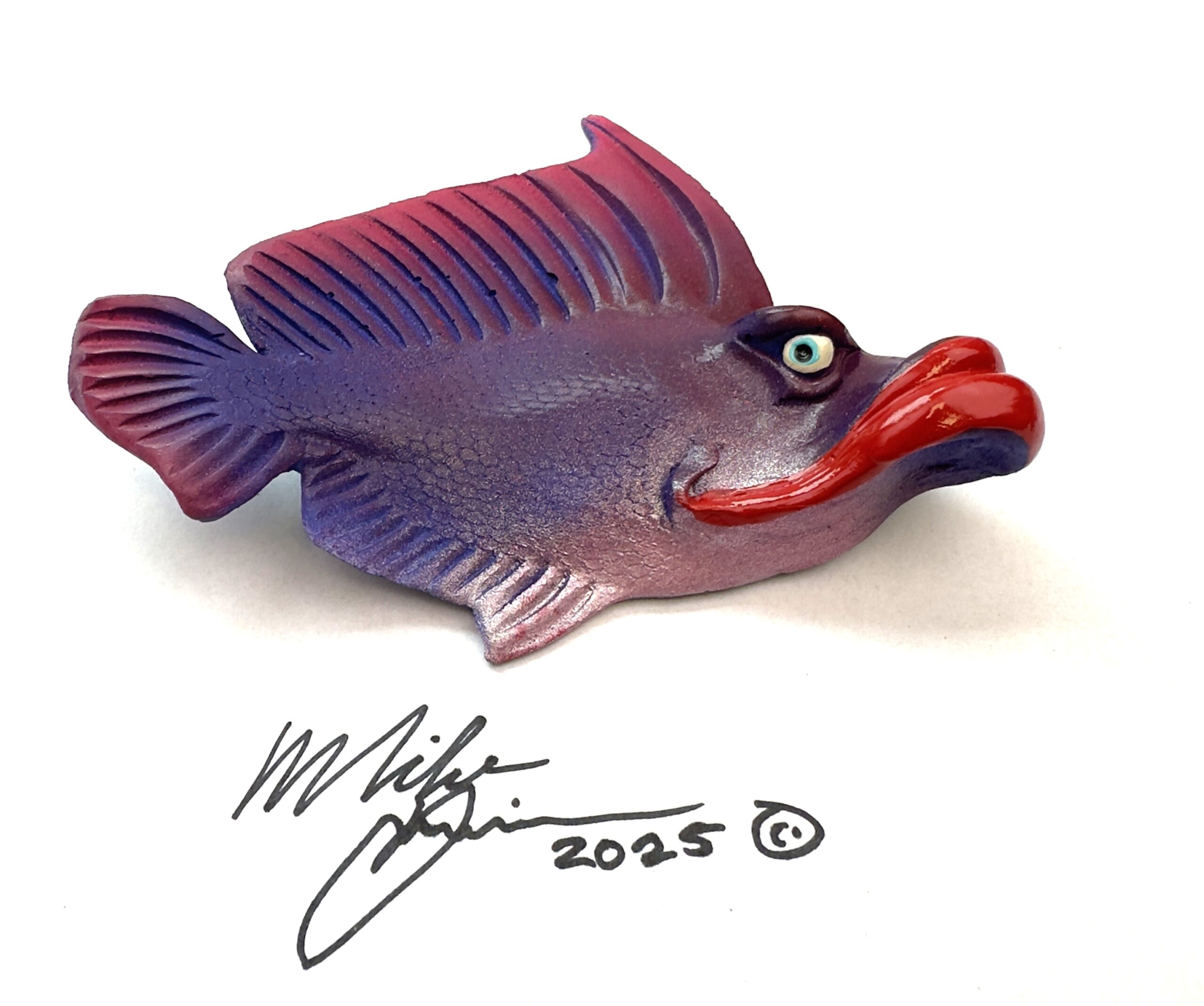 This piece is designed and created by artist Mike Quinn, it’s part of his Fish with Attitude collection. It’s one of a kind nature means it will have unique markings, design, spots, teeth, fur, claws or whatever is applicable to the creature posted.