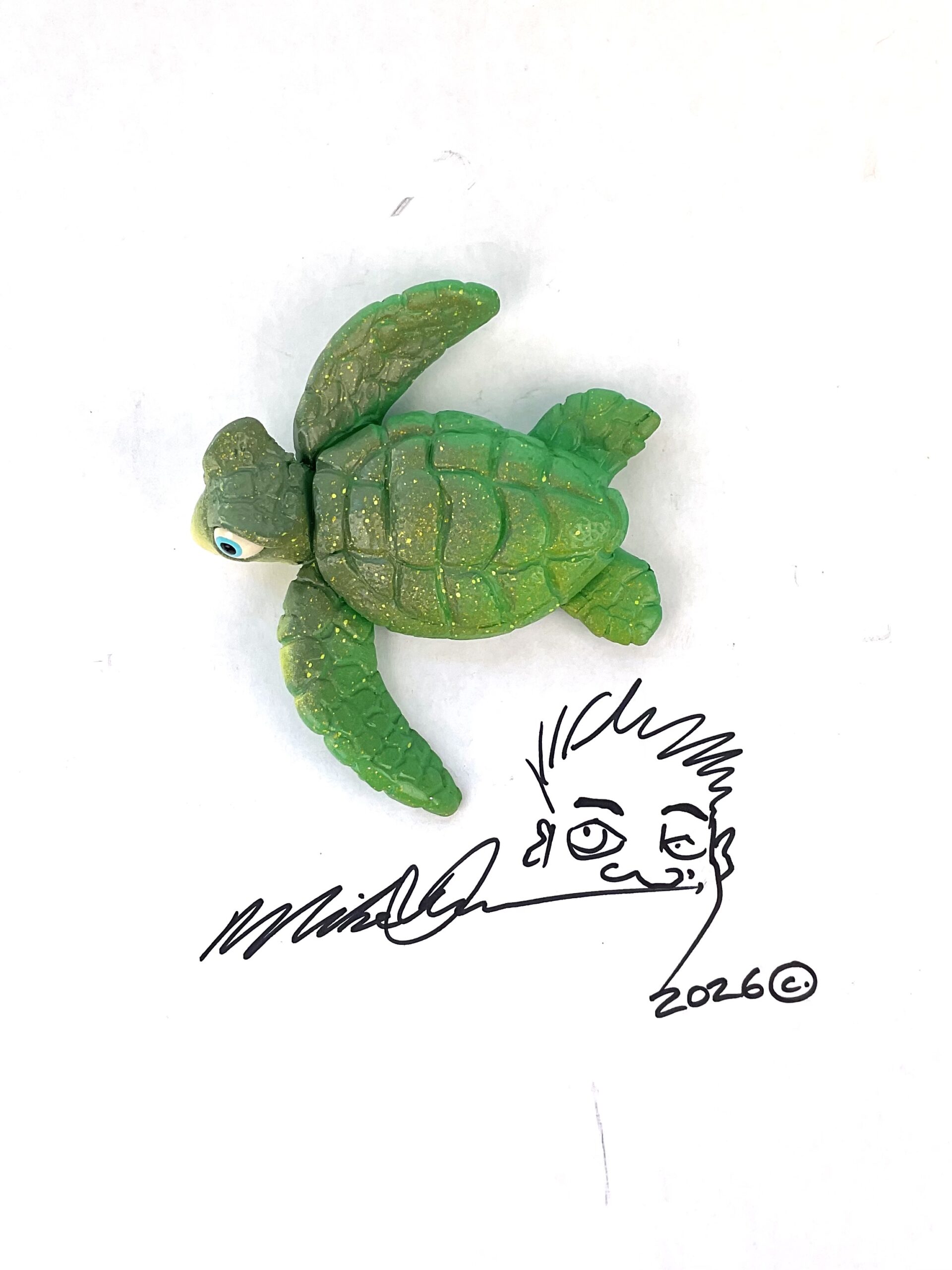 Little Ricky is quite famous for surfing the undertows near the big reef! The detailed fins, shell, and face of this guy make him a “Must Have” for collectors. He measures 5″ x 6″ and hangs on the wall with a built-in hook. He’s sporting a hand-painted custom finish that is designed for indoor use or outside in a protected/covered area.