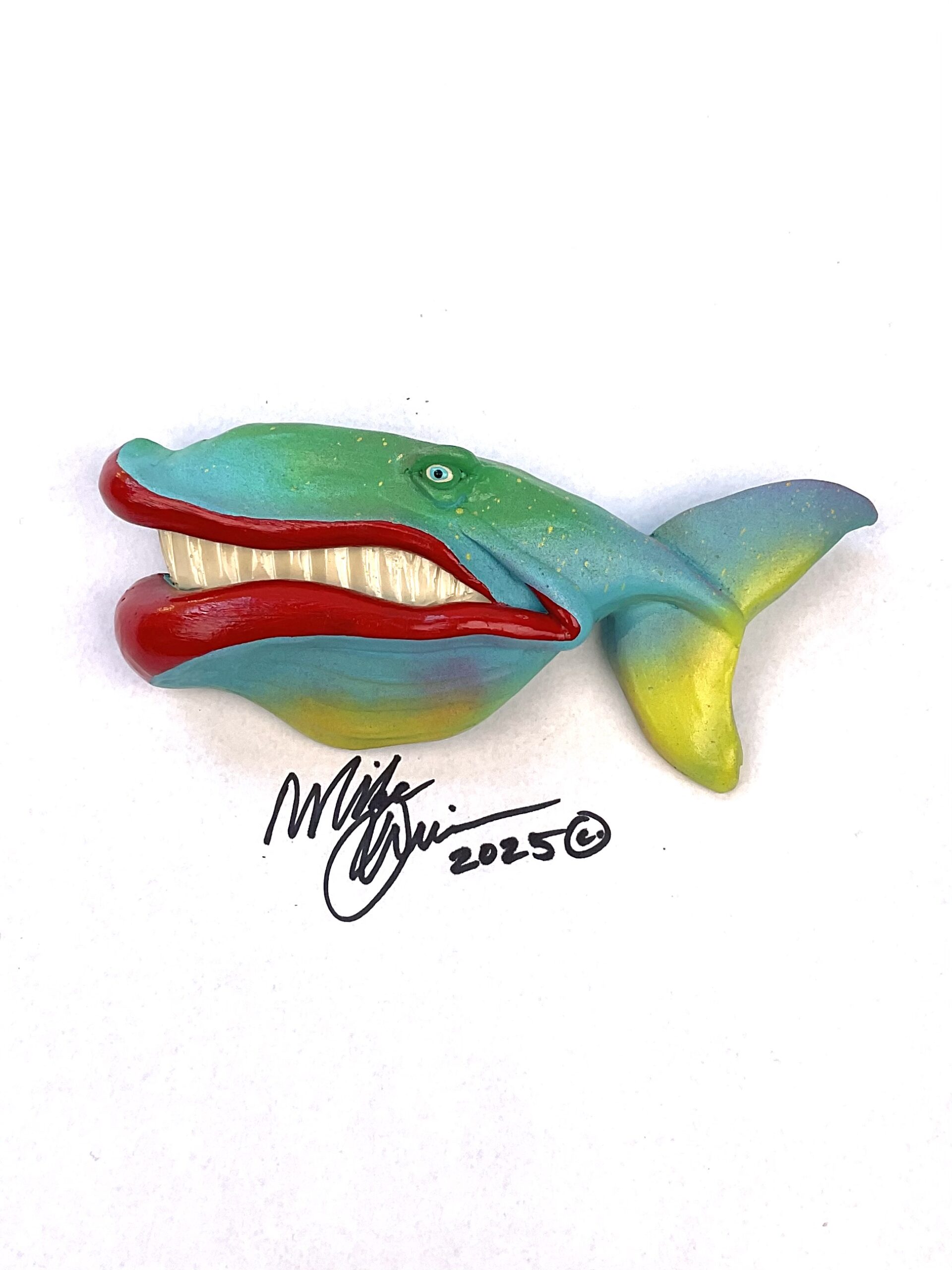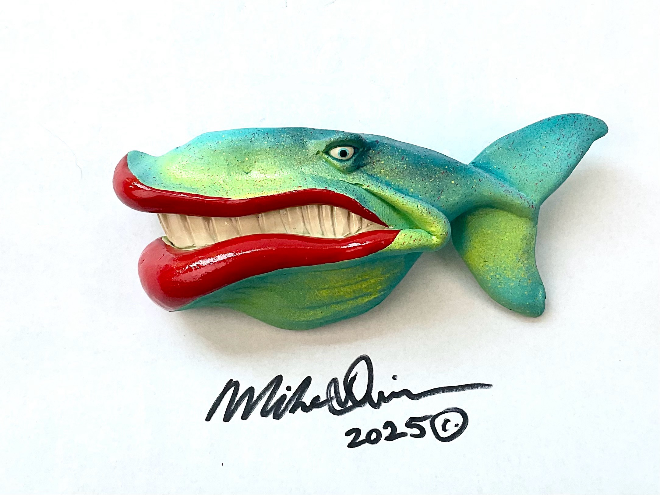 This piece is designed and created by artist Mike Quinn, it’s part of his Fish with Attitude collection. It’s one of a kind nature means it will have unique markings, design, spots, teeth, fur, claws or whatever is applicable to the creature posted.