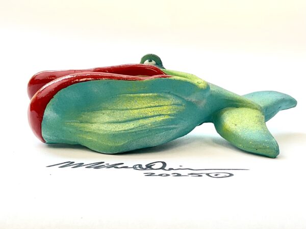 Maui Mike the whale is smaller than the rest of the crew but is the life of the party with a winning smile and laidback attitude. He measures 6.5” x 3” and hangs on the wall with a built in eyelet. This fun guy is sporting a hand painted custom finish that is designed for indoor use or outside in a protected/covered area.
