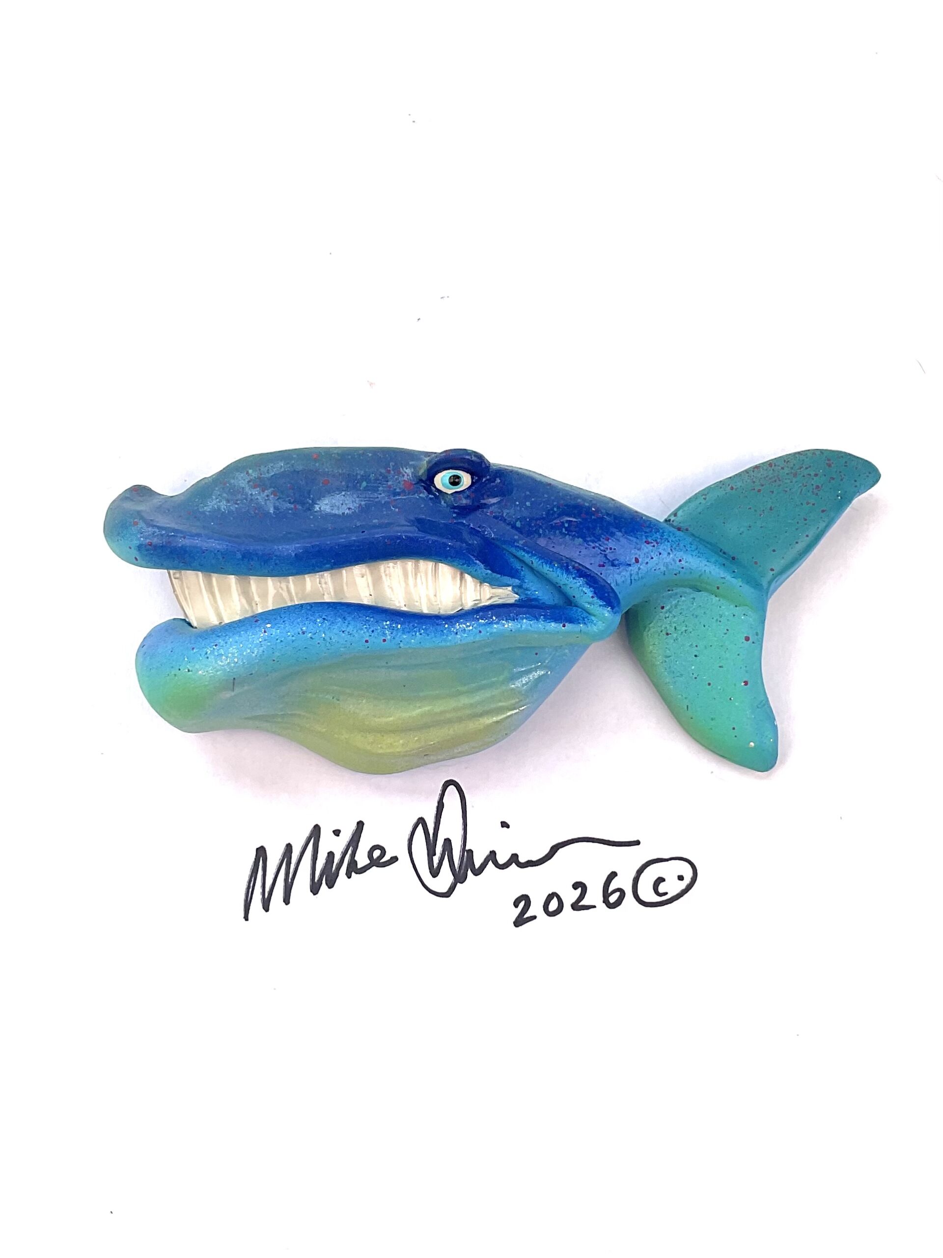 This piece is designed and created by artist Mike Quinn, it’s part of his Fish with Attitude collection. It’s one of a kind nature means it will have unique markings, design, spots, teeth, fur, claws or whatever is applicable to the creature posted.
