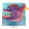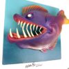 You are looking at a handmade one-off Toothfish with a painted finish and a wild personality. He measures 12″ x 10″ x 4″ and hangs on a 12″ x 12″ x 1.2″ wooden painted frame. He’s sporting a custom finish that is designed for indoor use or outside in a protected/covered area.