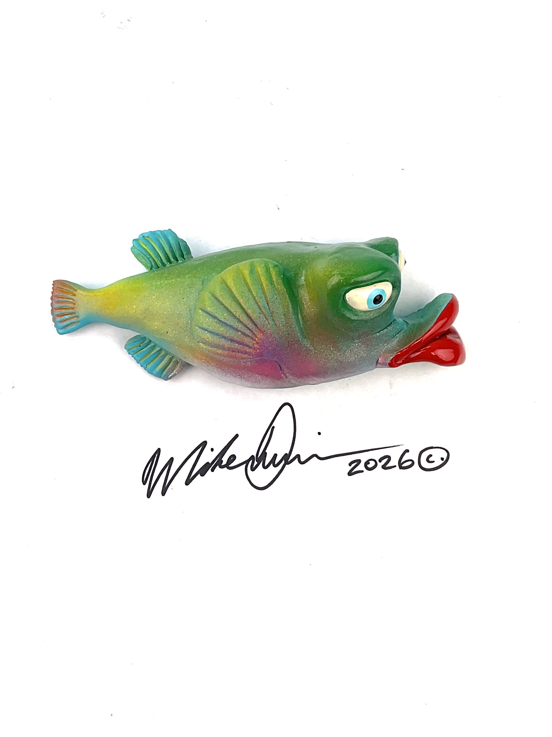 This piece is designed and created by artist Mike Quinn, it’s part of his Fish with Attitude collection. It’s one of a kind nature means it will have unique markings, design, spots, teeth, fur, claws or whatever is applicable to the creature posted.