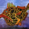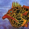 This print titled Mrs. Snorbock and features a blue oceanic backdrop with a full frame wildly designed fish. She almost looks concerned…but in this fish eat fish world who wouldn’t be?