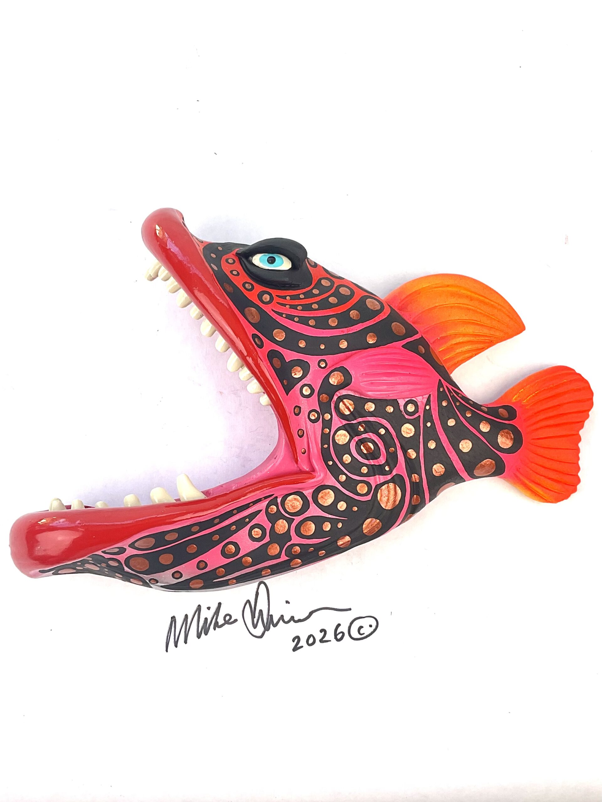 This piece is designed and created by artist Mike Quinn, it’s part of his Fish with Attitude collection. It’s one of a kind nature means it will have unique markings, design, spots, teeth, fur, claws or whatever is applicable to the creature posted.