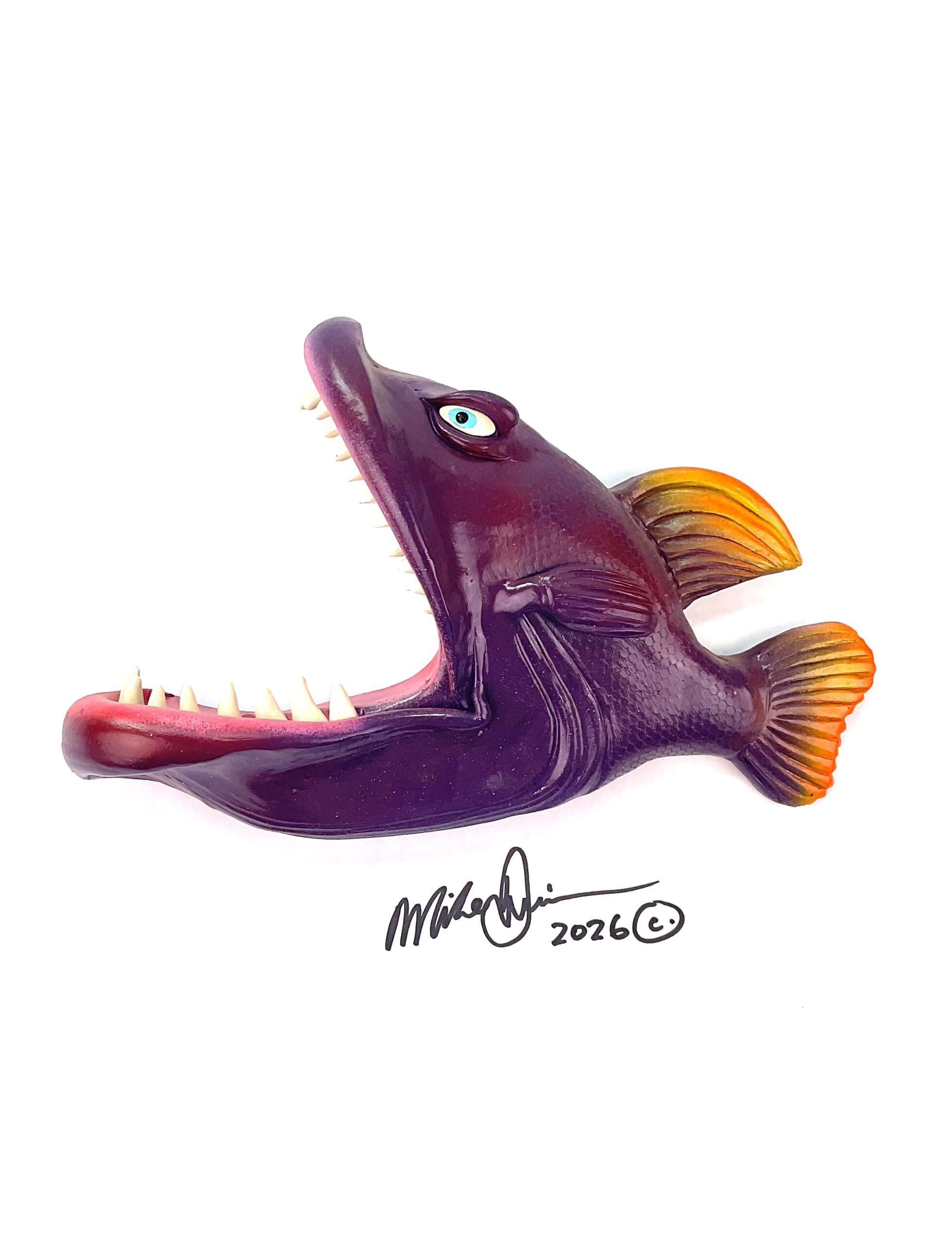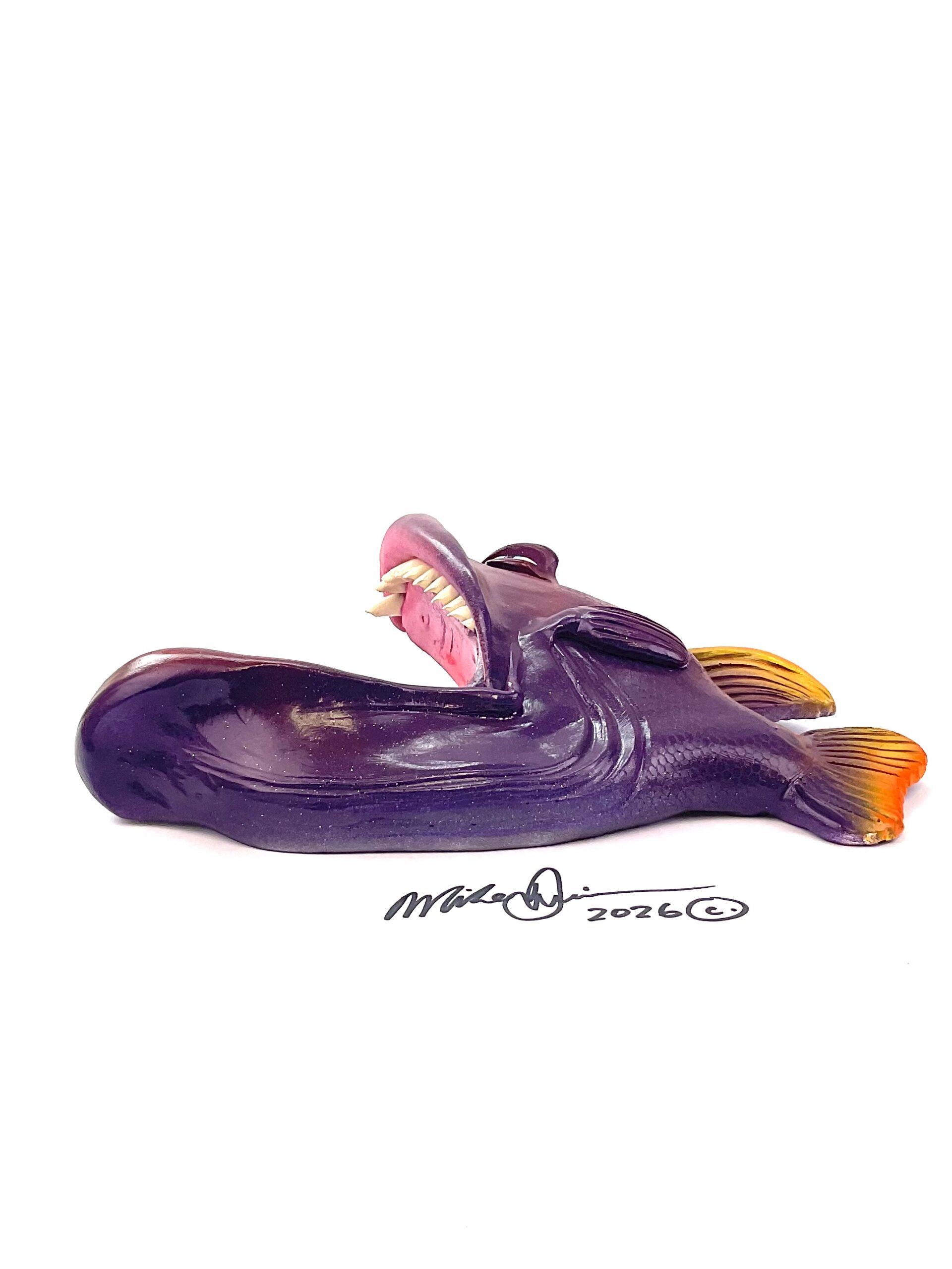 This piece is designed and created by artist Mike Quinn, it’s part of his Fish with Attitude collection. It’s one of a kind nature means it will have unique markings, design, spots, teeth, fur, claws or whatever is applicable to the creature posted.