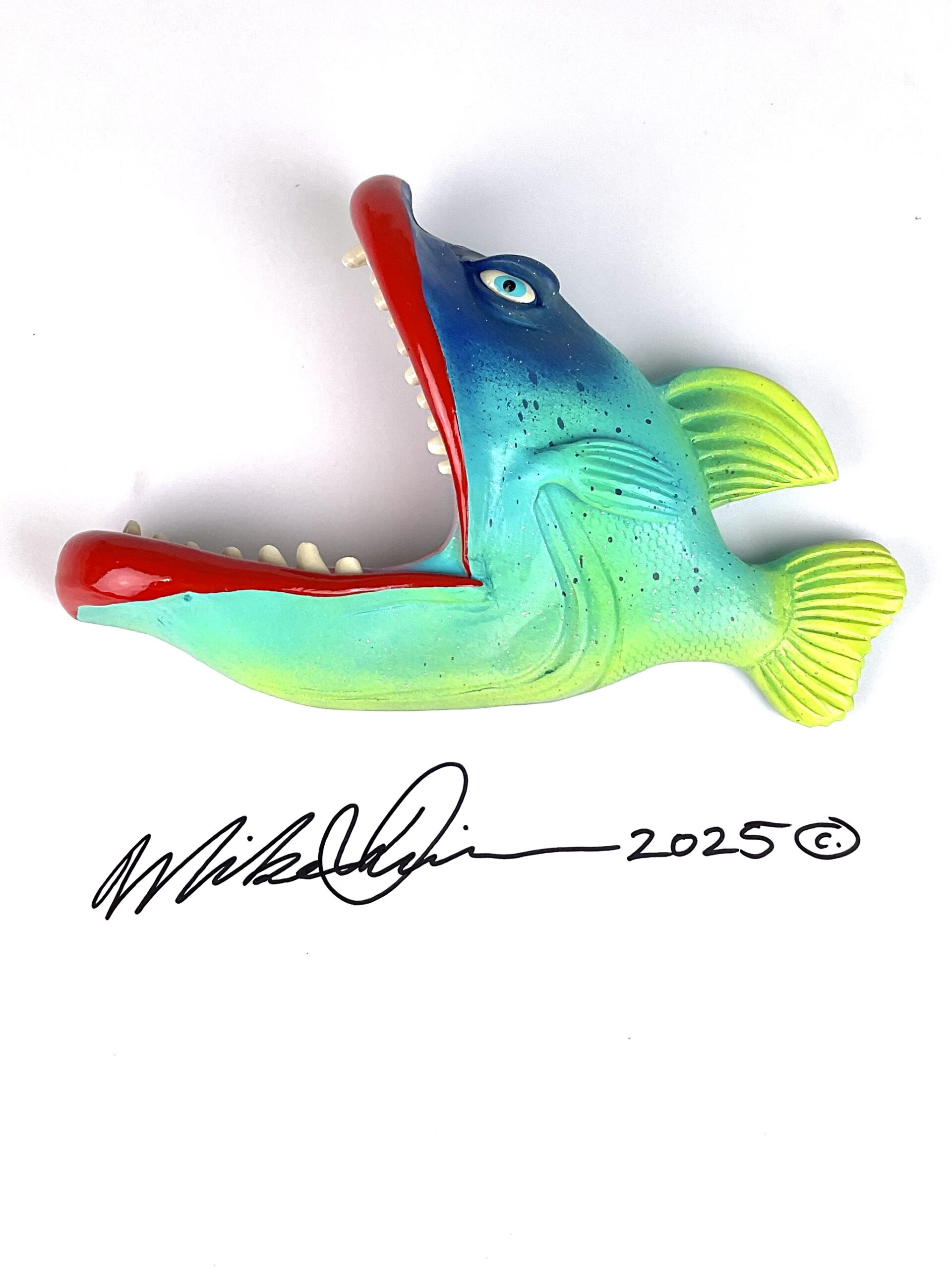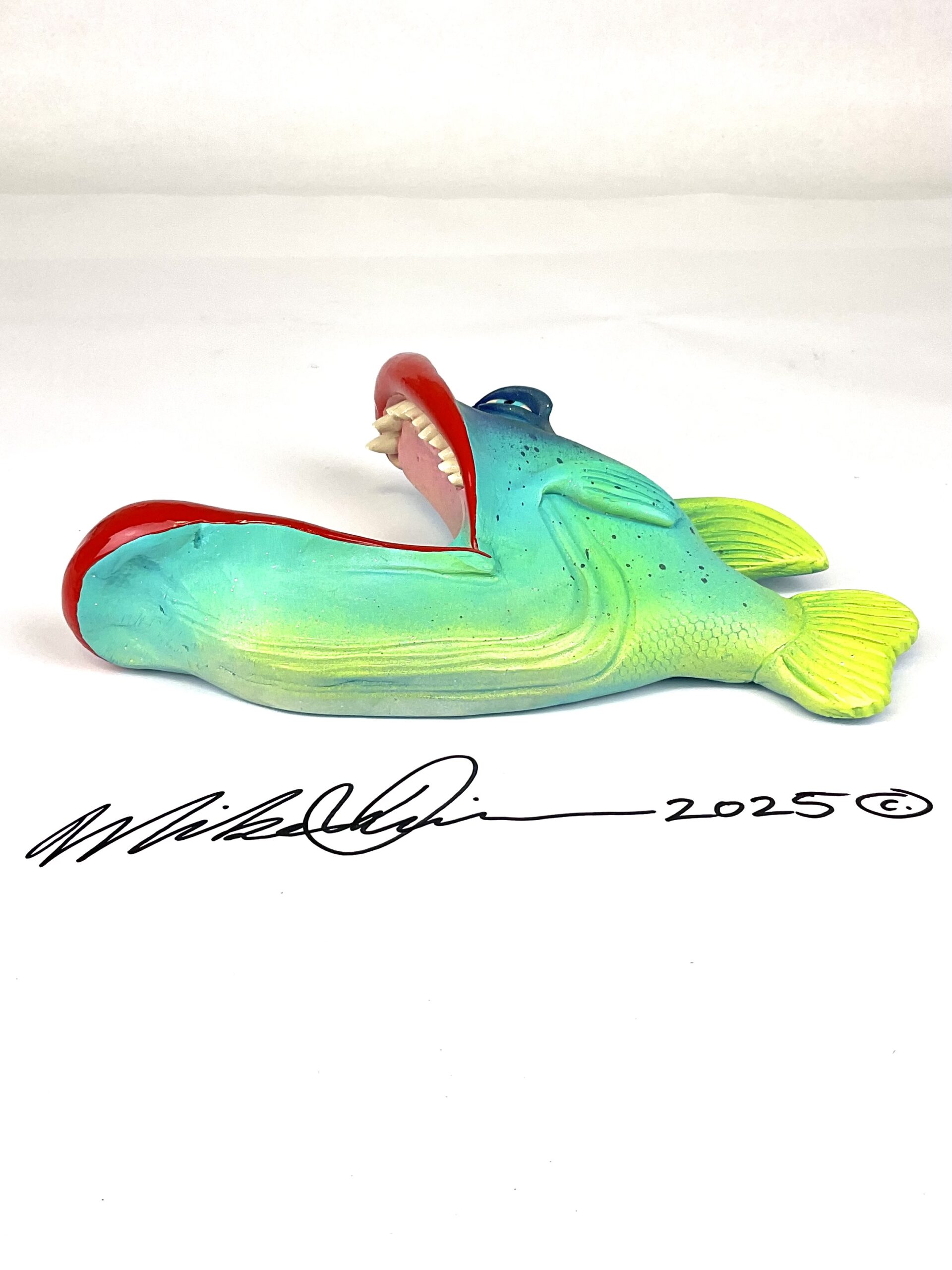 This piece is designed and created by artist Mike Quinn, it’s part of his Fish with Attitude collection. It’s one of a kind nature means it will have unique markings, design, spots, teeth, fur, claws or whatever is applicable to the creature posted.