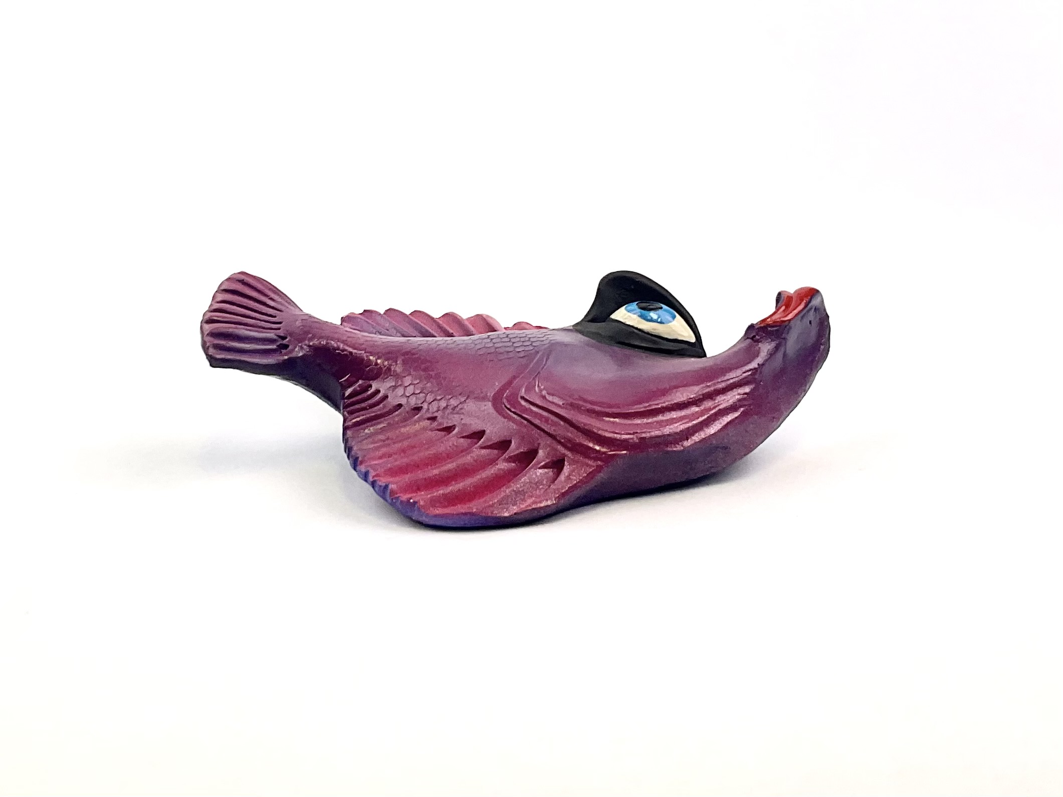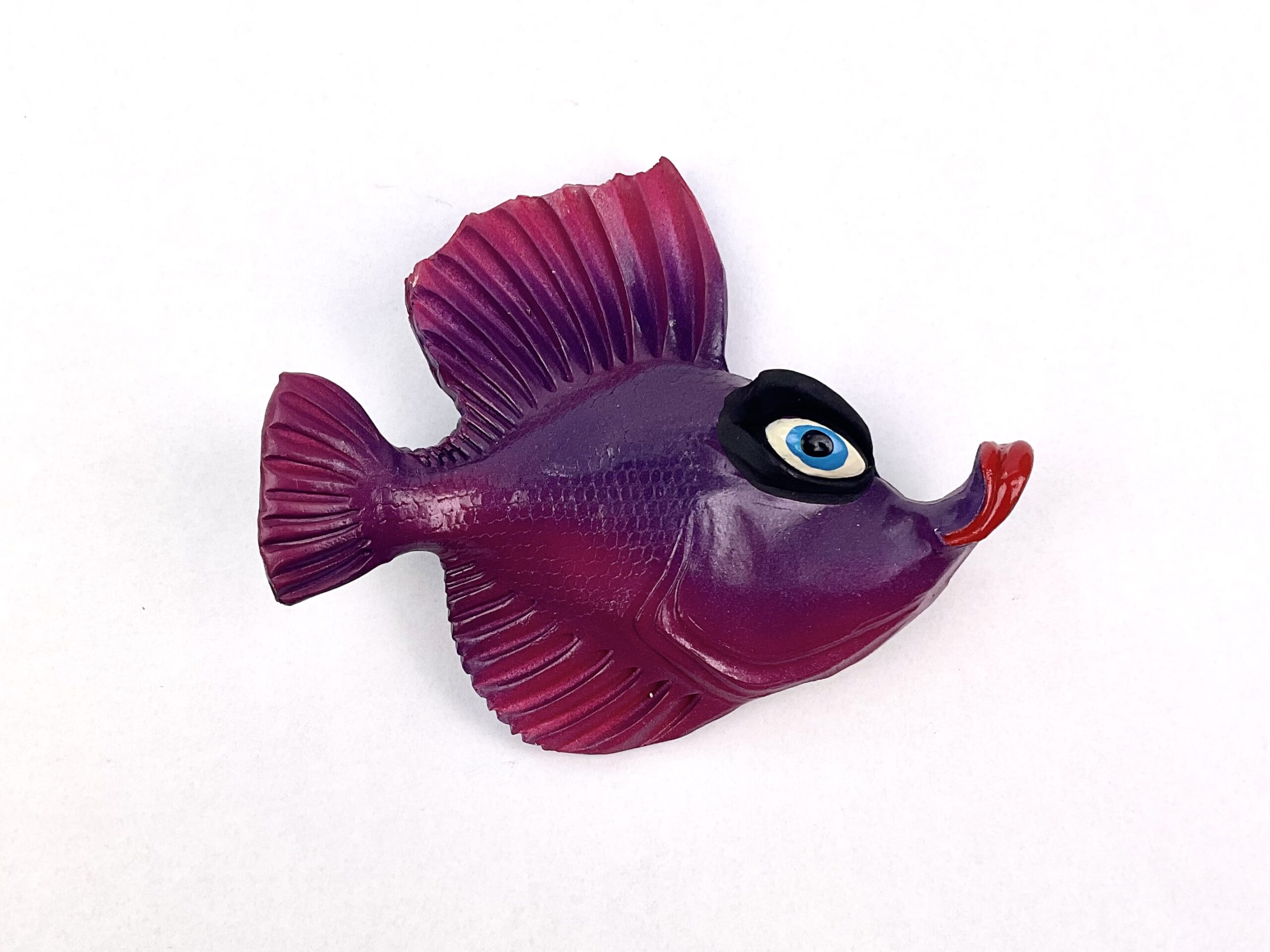 This piece is designed and created by artist Mike Quinn, it’s part of his Fish with Attitude collection. It’s one of a kind nature means it will have unique markings, design, spots, teeth, fur, claws or whatever is applicable to the creature posted.