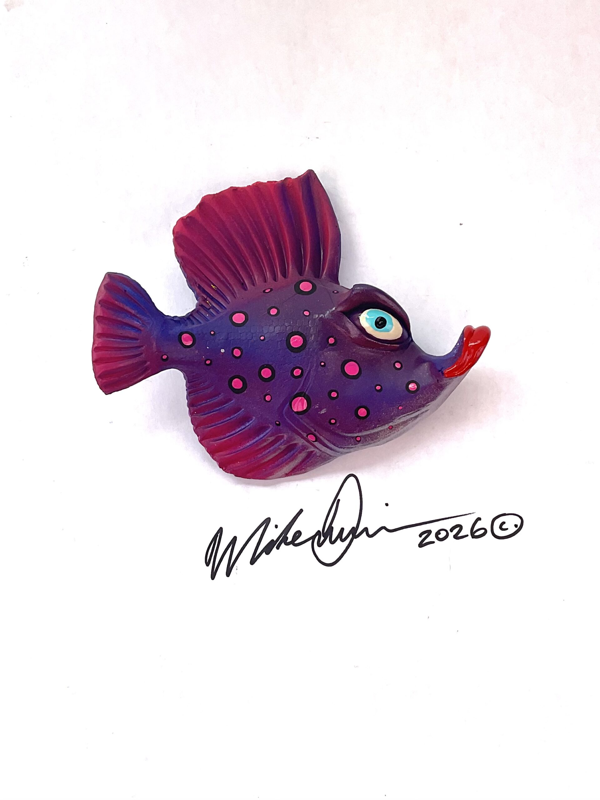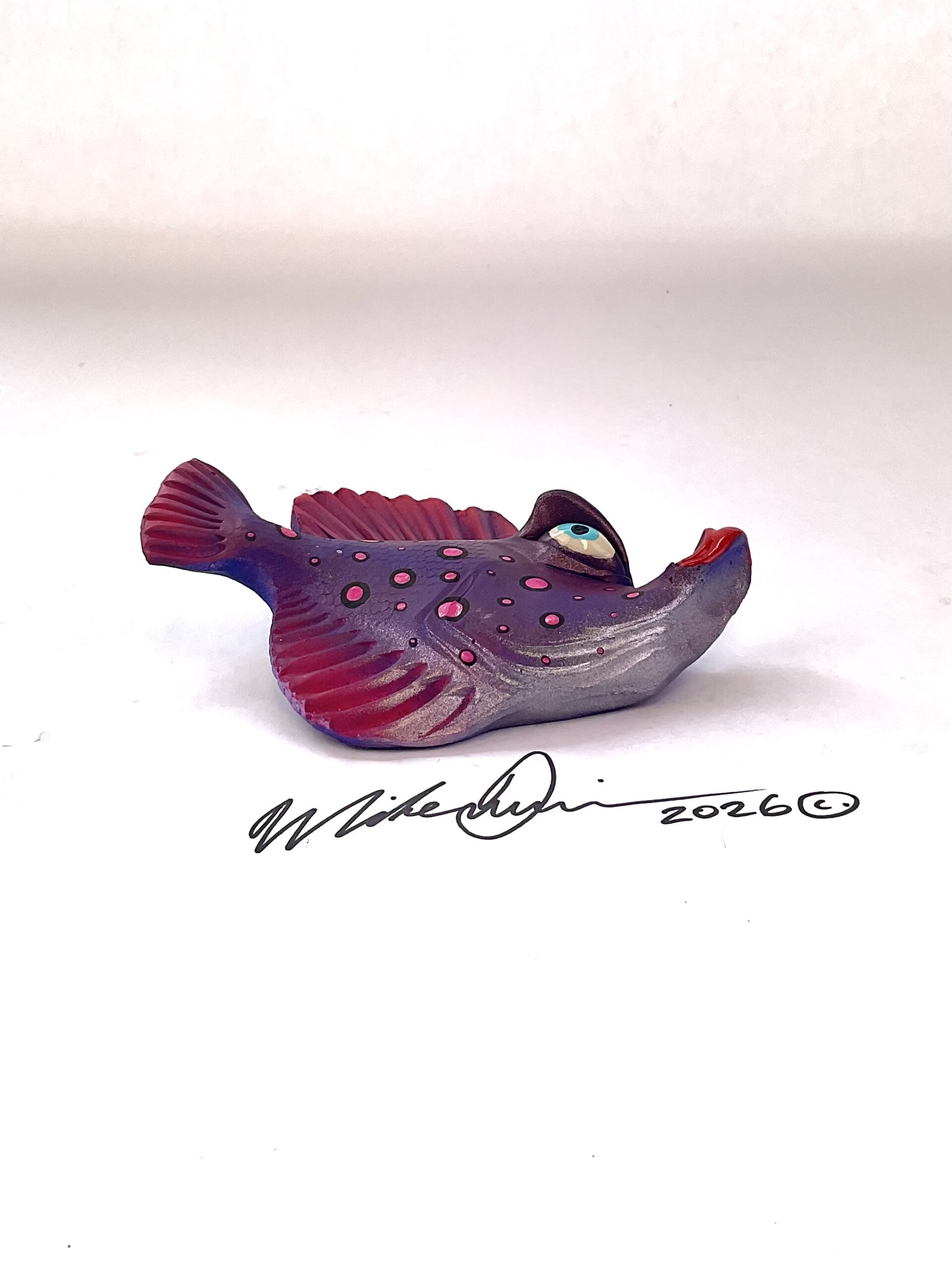 This piece is designed and created by artist Mike Quinn, it’s part of his Fish with Attitude collection. It’s one of a kind nature means it will have unique markings, design, spots, teeth, fur, claws or whatever is applicable to the creature posted.