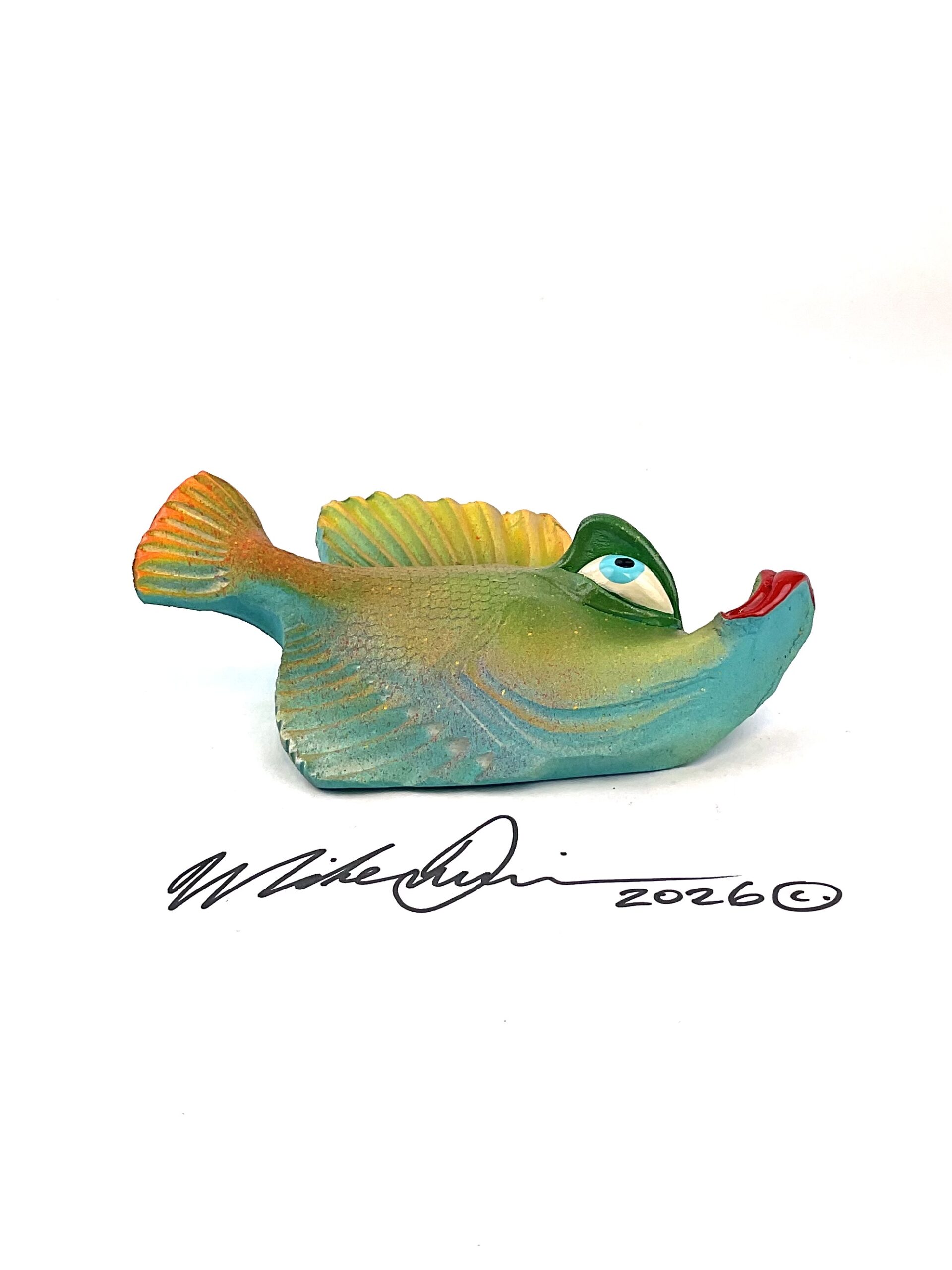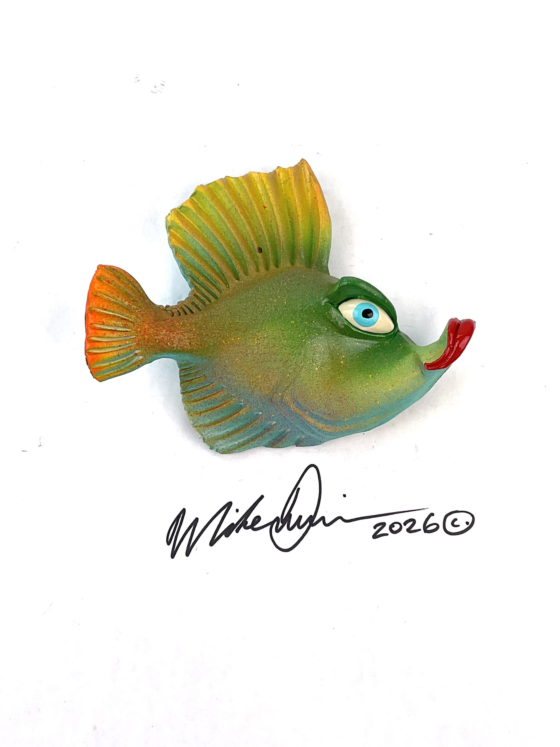 This piece is designed and created by artist Mike Quinn, it’s part of his Fish with Attitude collection. It’s one of a kind nature means it will have unique markings, design, spots, teeth, fur, claws or whatever is applicable to the creature posted.
